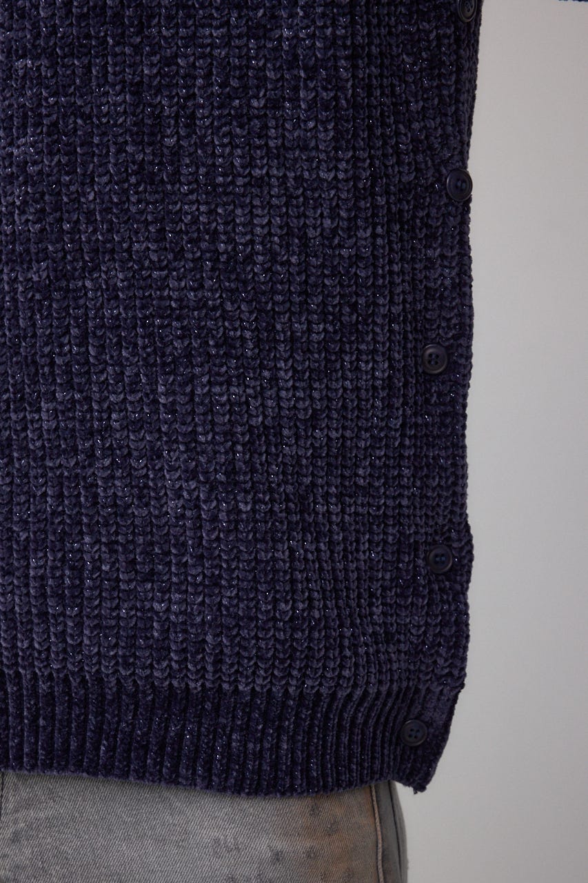ベロア調モール糸にラメを引き揃えた光沢あるニットです。