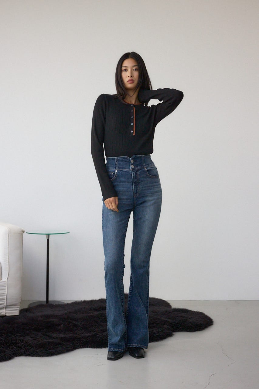 AZUL DENIM H/Wバックリボンフレアデニム