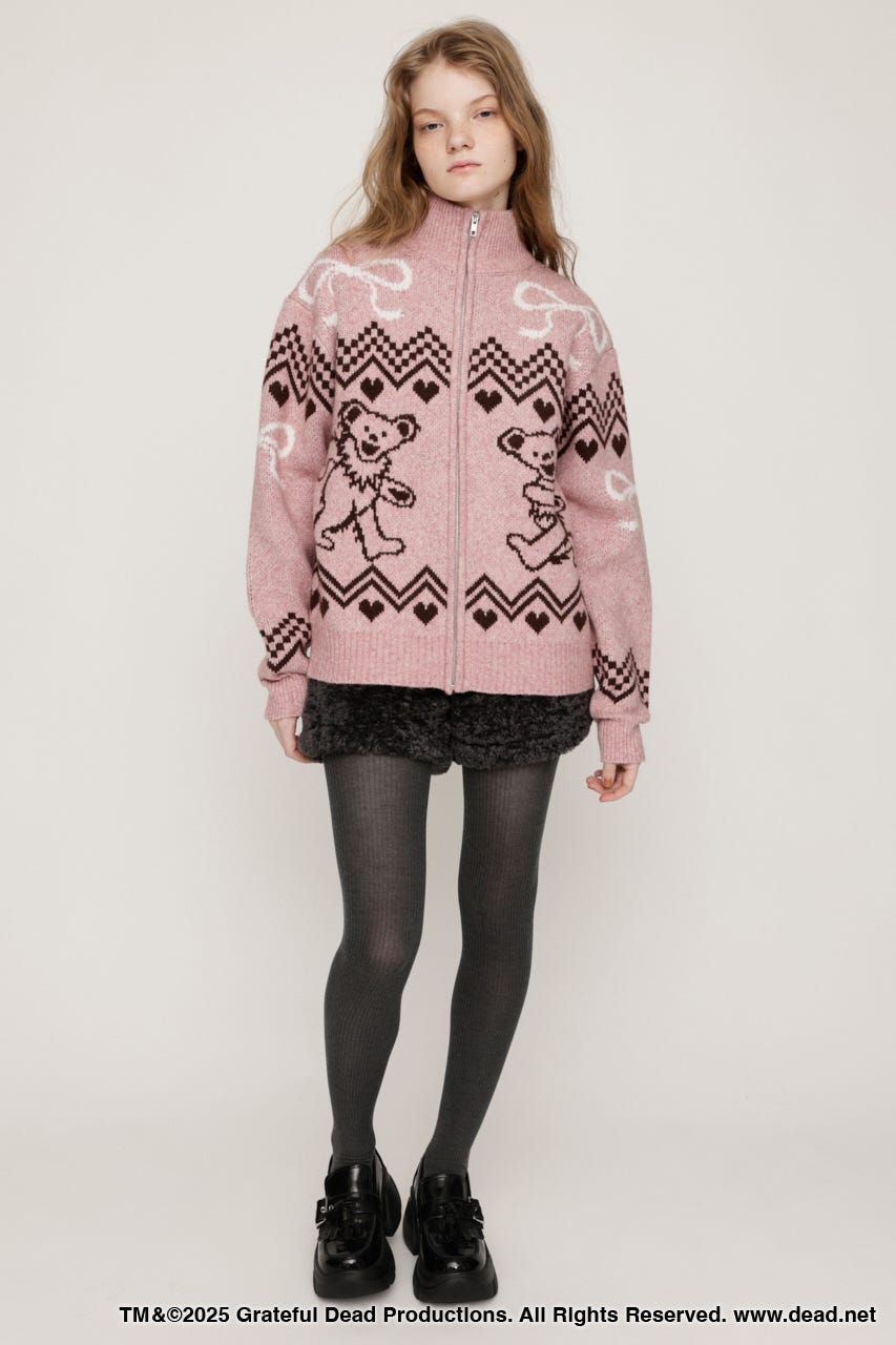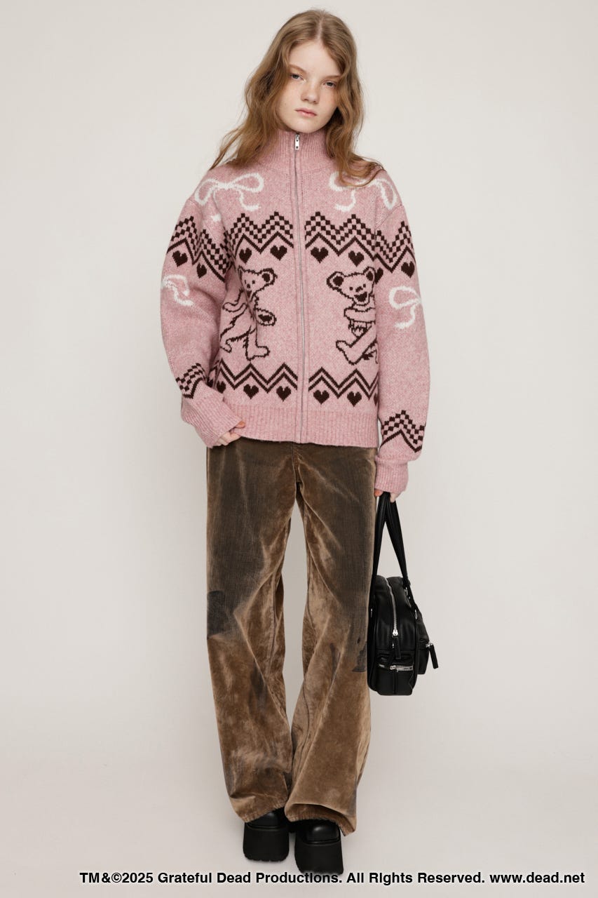 バンドを象徴するキャラクター「ダンシング・ベア(DANCING BEARS)」を使用し、今季のSLYのムードに合うよう、ハートやリボンモチーフを取り入れガーリーなデザインへと落とし込んだトップスです。