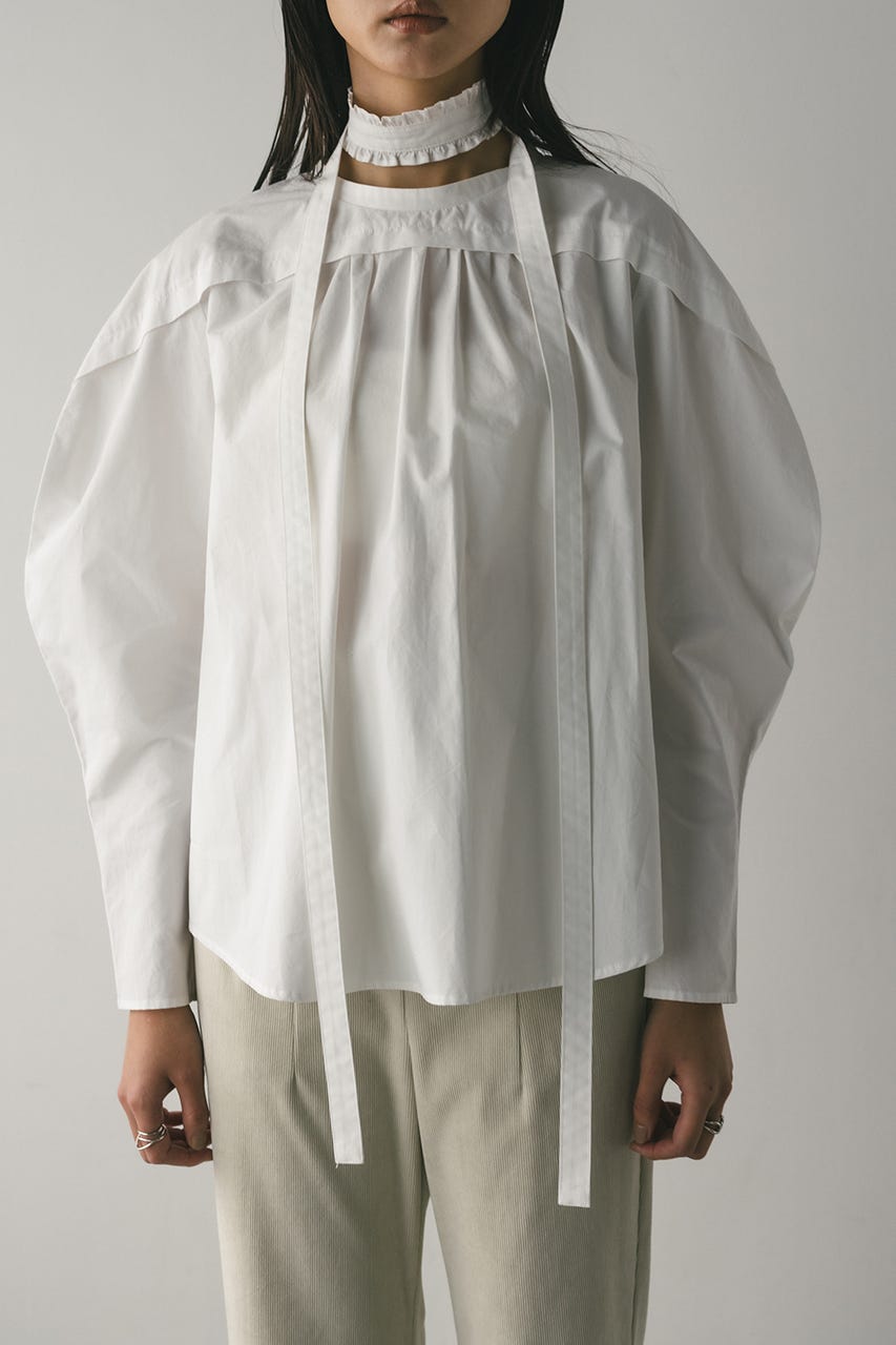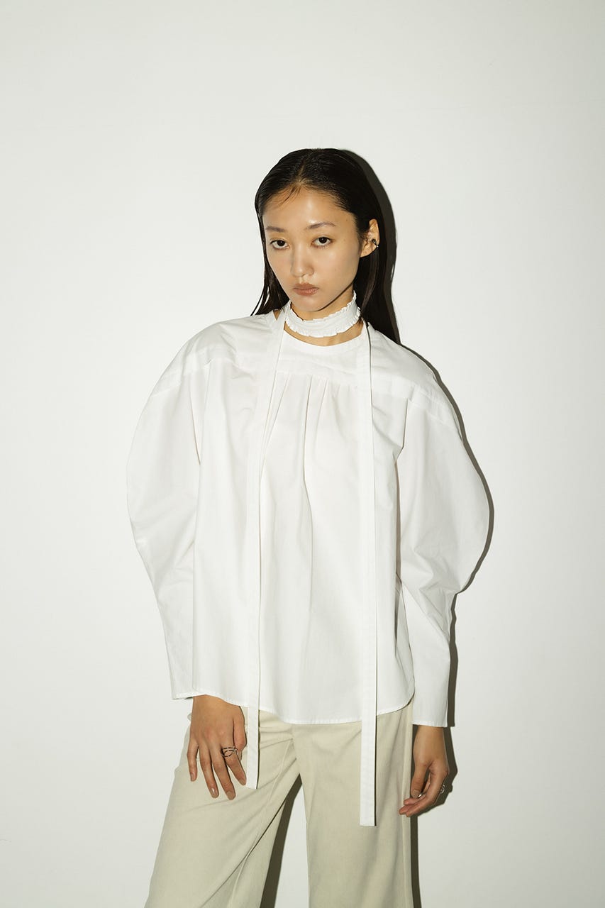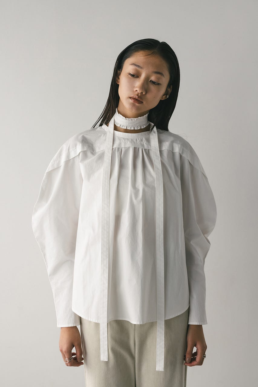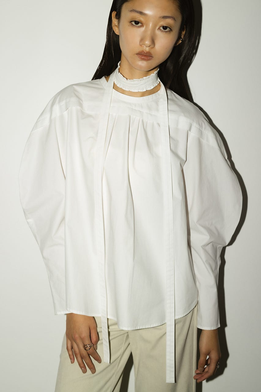 立体的なスリーブが印象的なフリルチョーカー付きブラウス。
