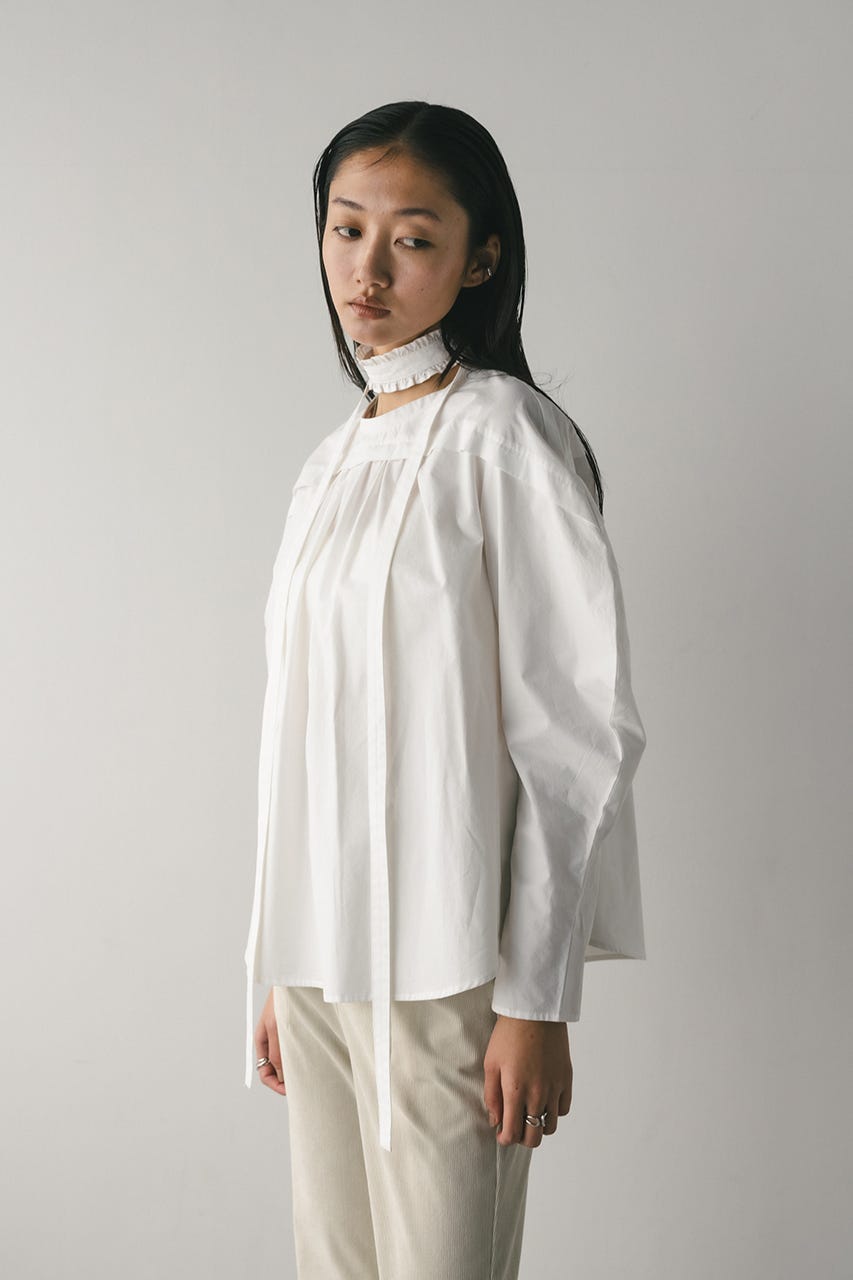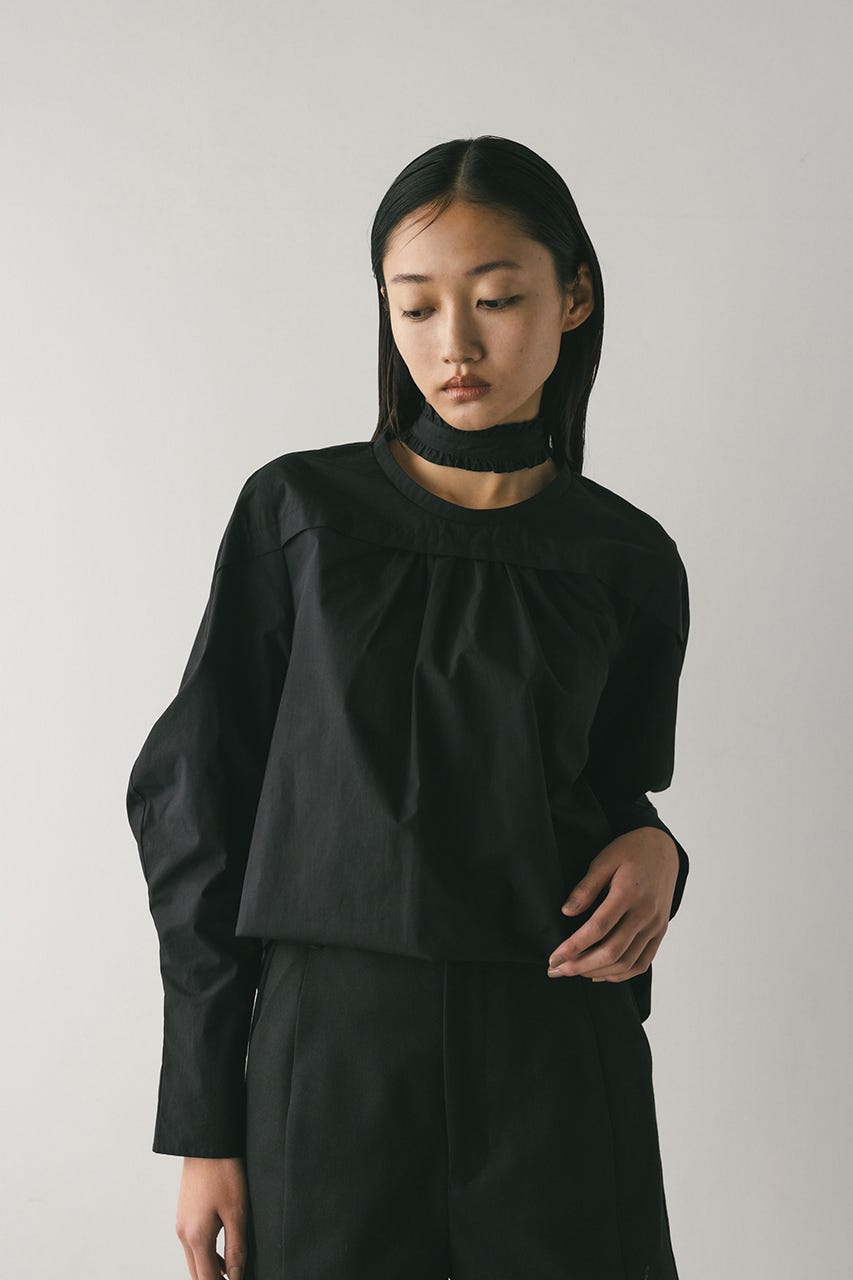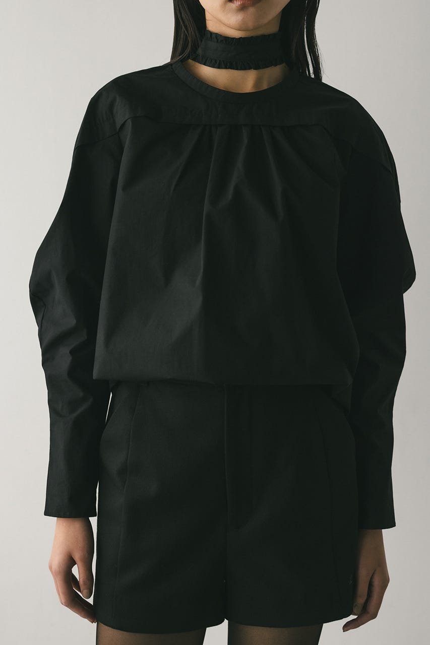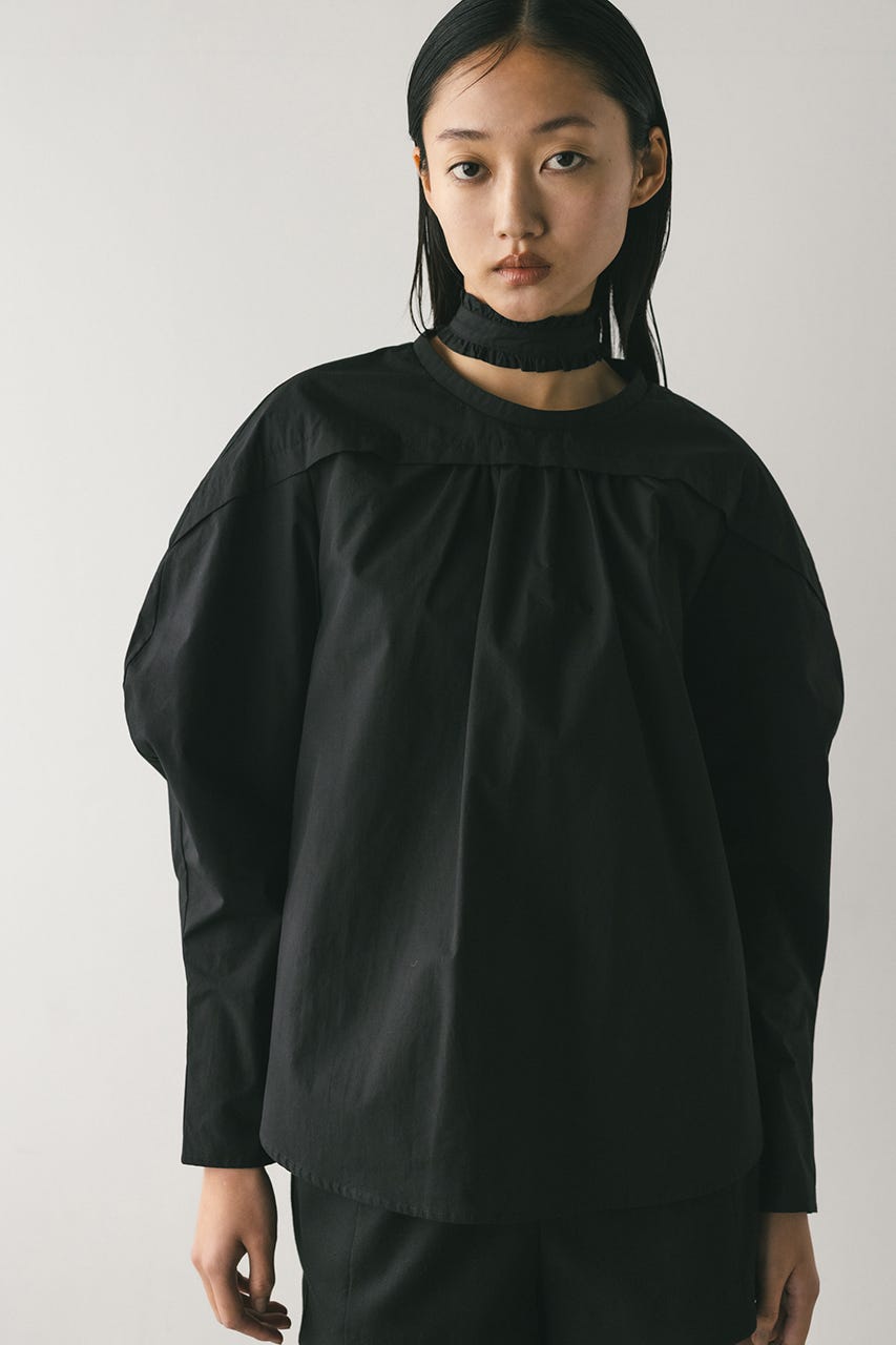 立体的なスリーブが印象的なフリルチョーカー付きブラウス。