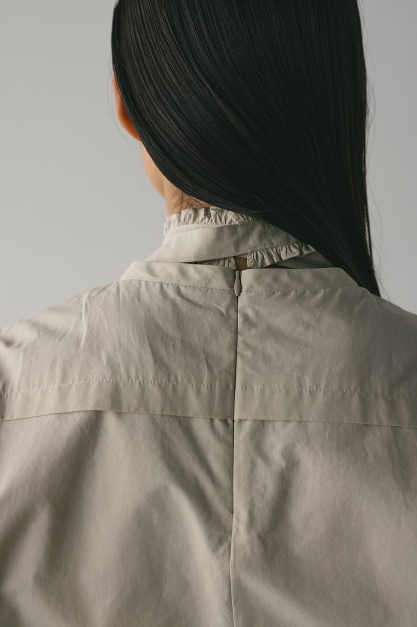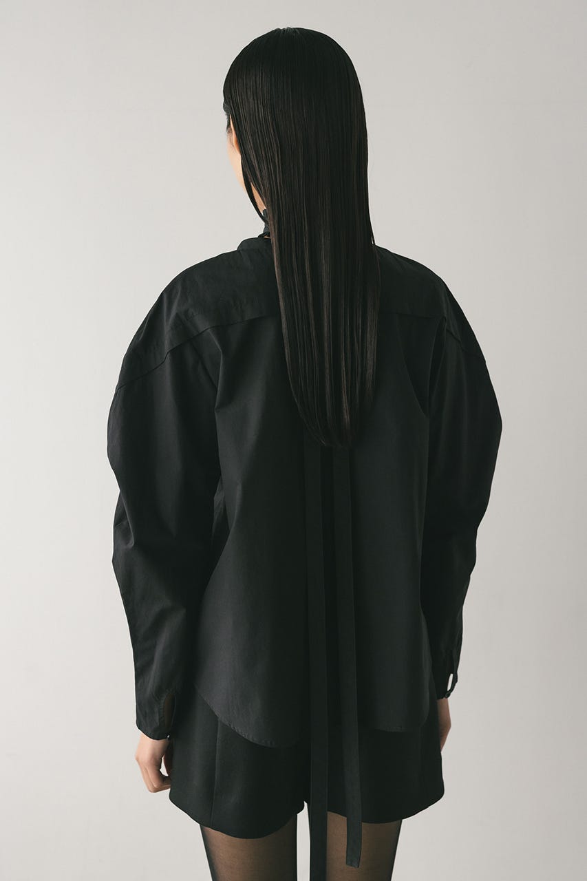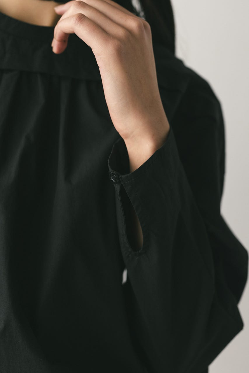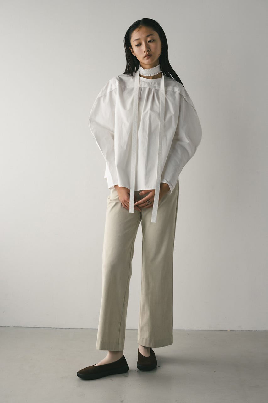 立体的なスリーブが印象的なフリルチョーカー付きブラウス。