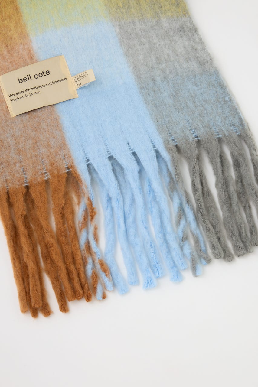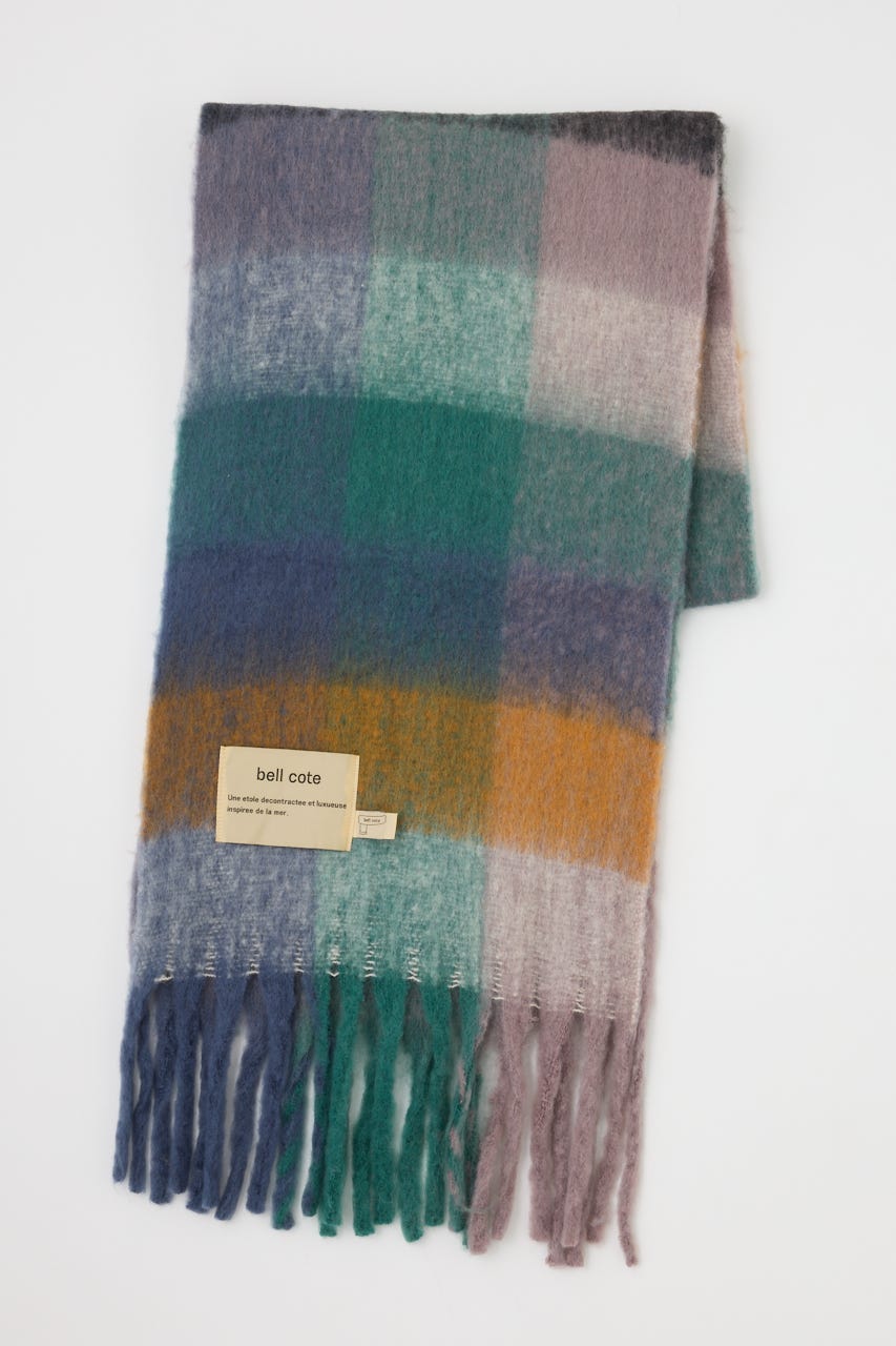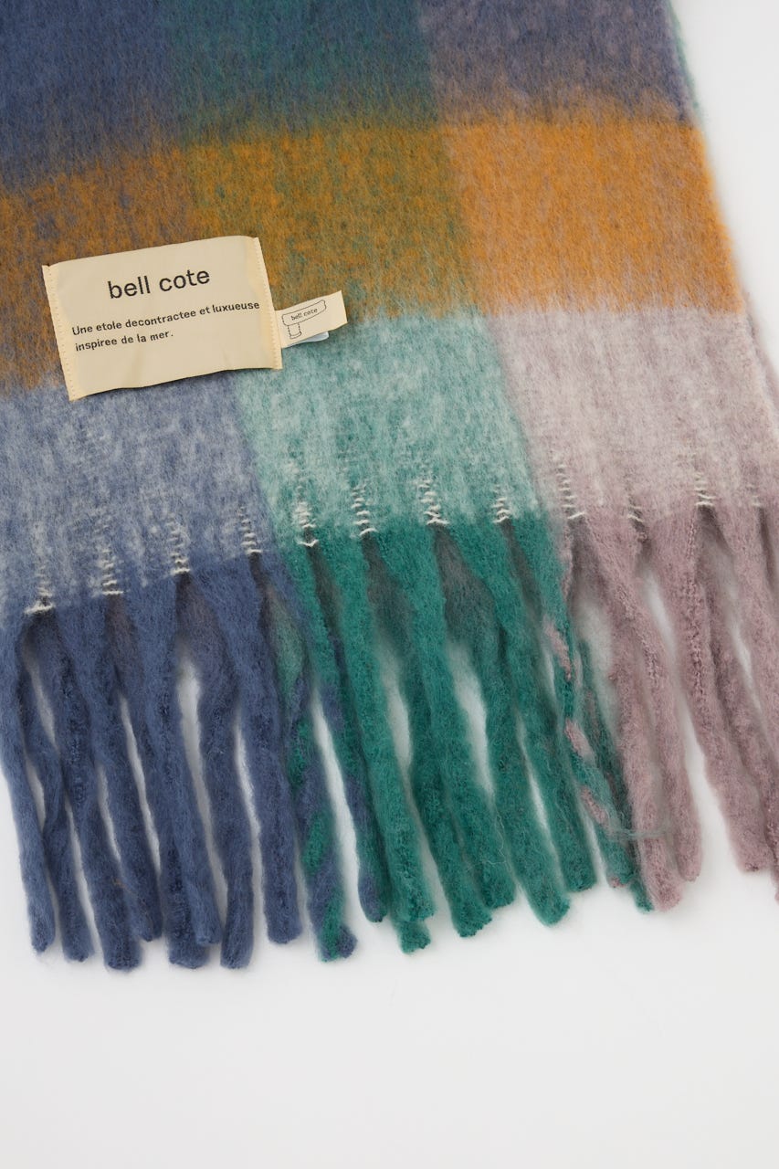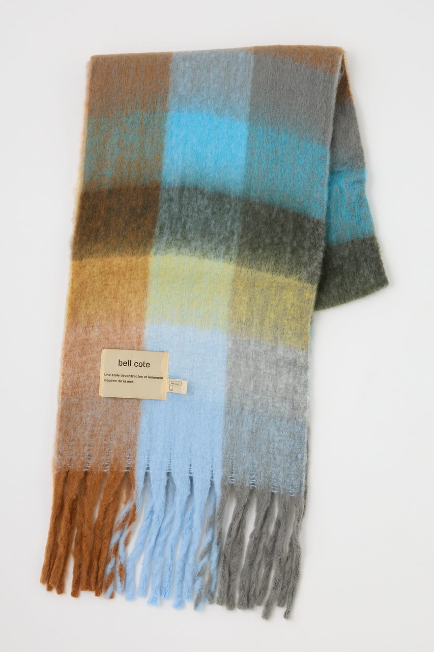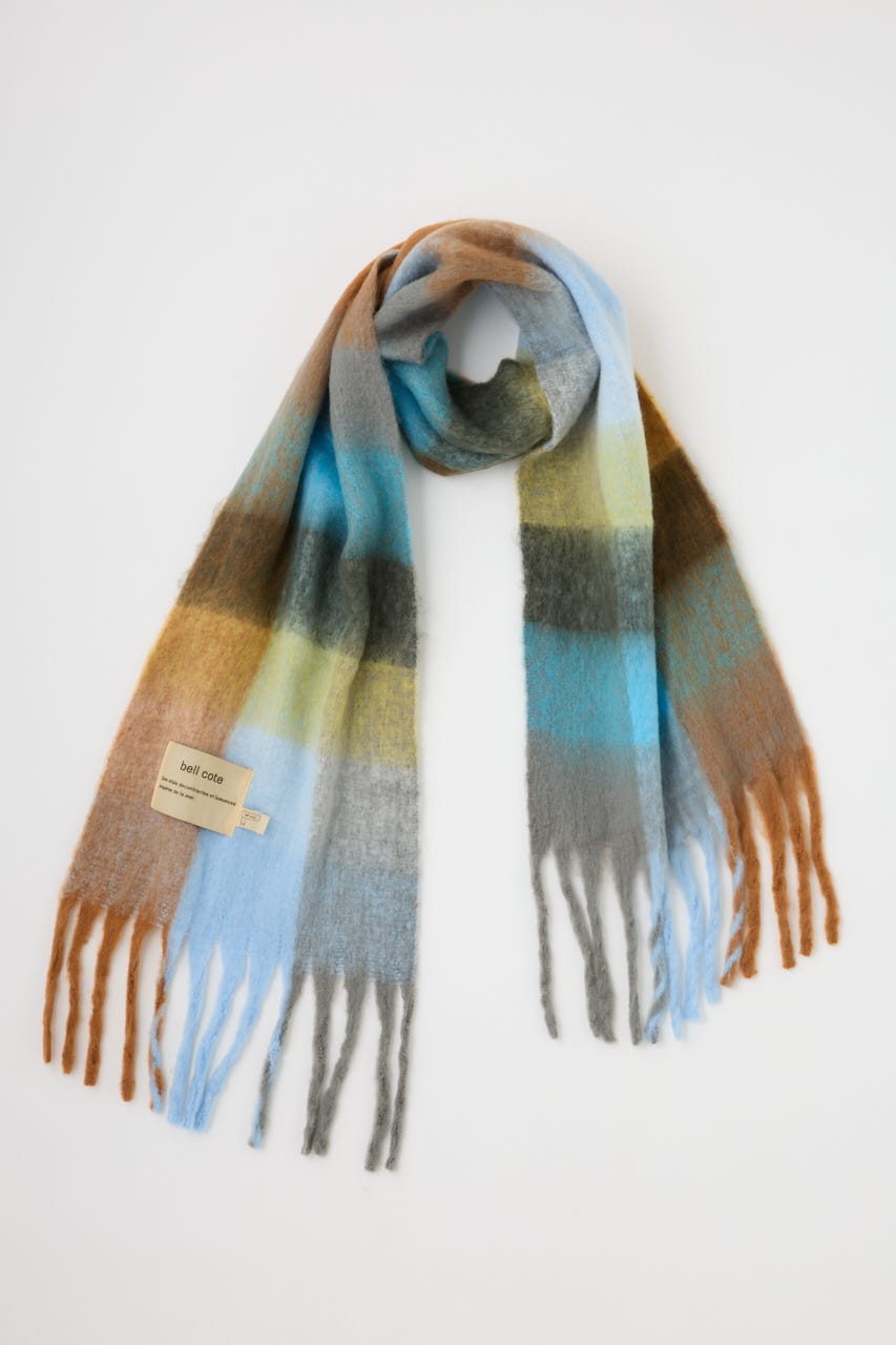 ポリエステル・アクリルの素材を使用し、ふわふわとボリューム感があり軽やかな着け心地のマフラーに仕上がりました。