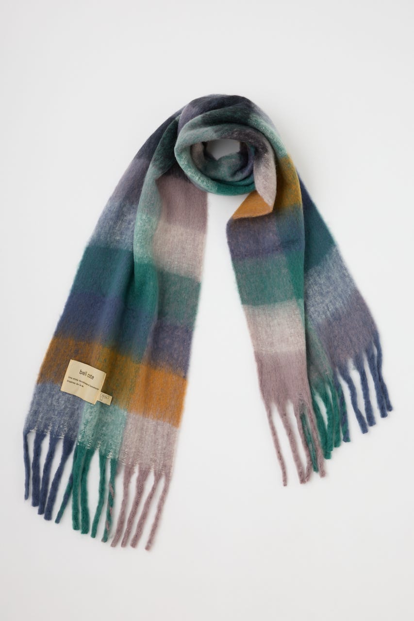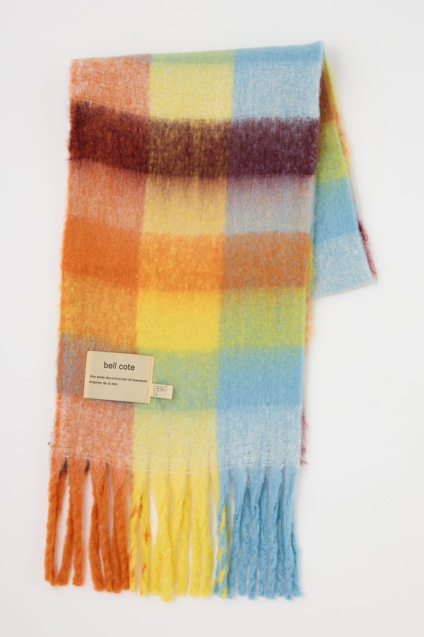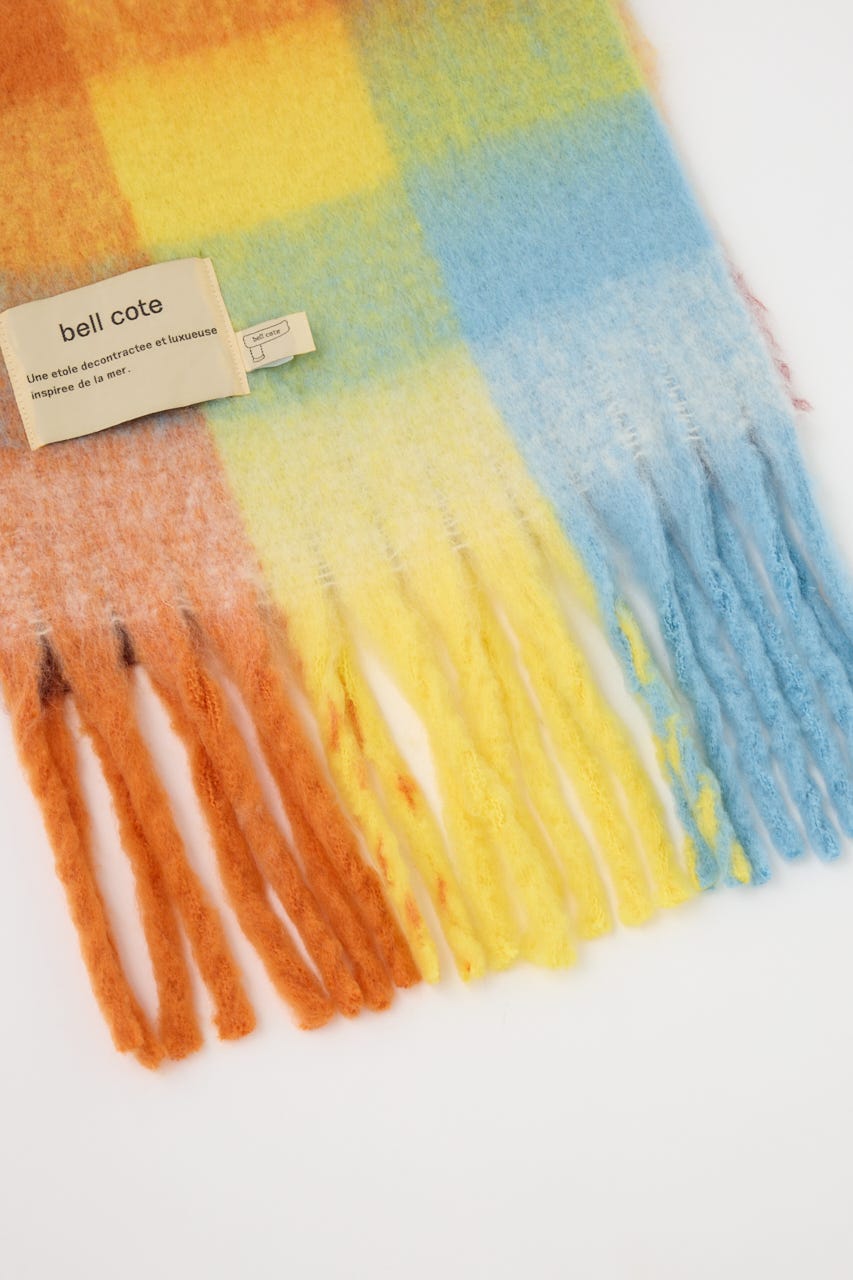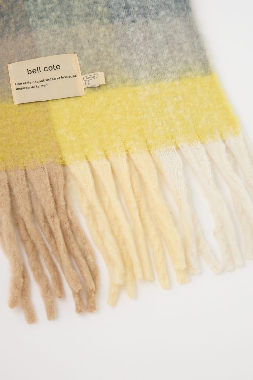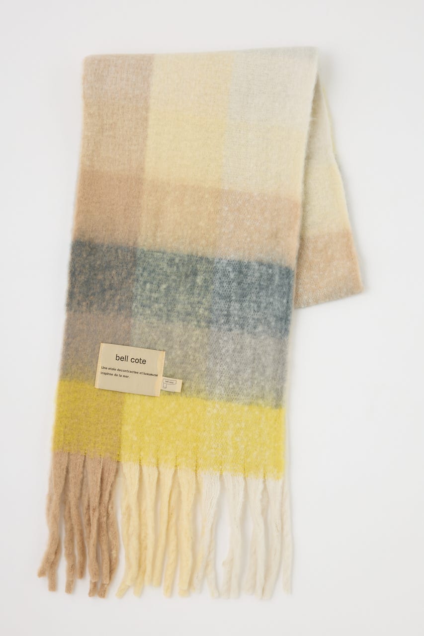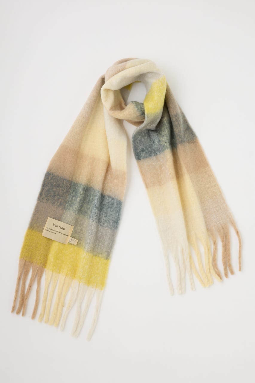 ポリエステル・アクリルの素材を使用し、ふわふわとボリューム感があり軽やかな着け心地のマフラーに仕上がりました。