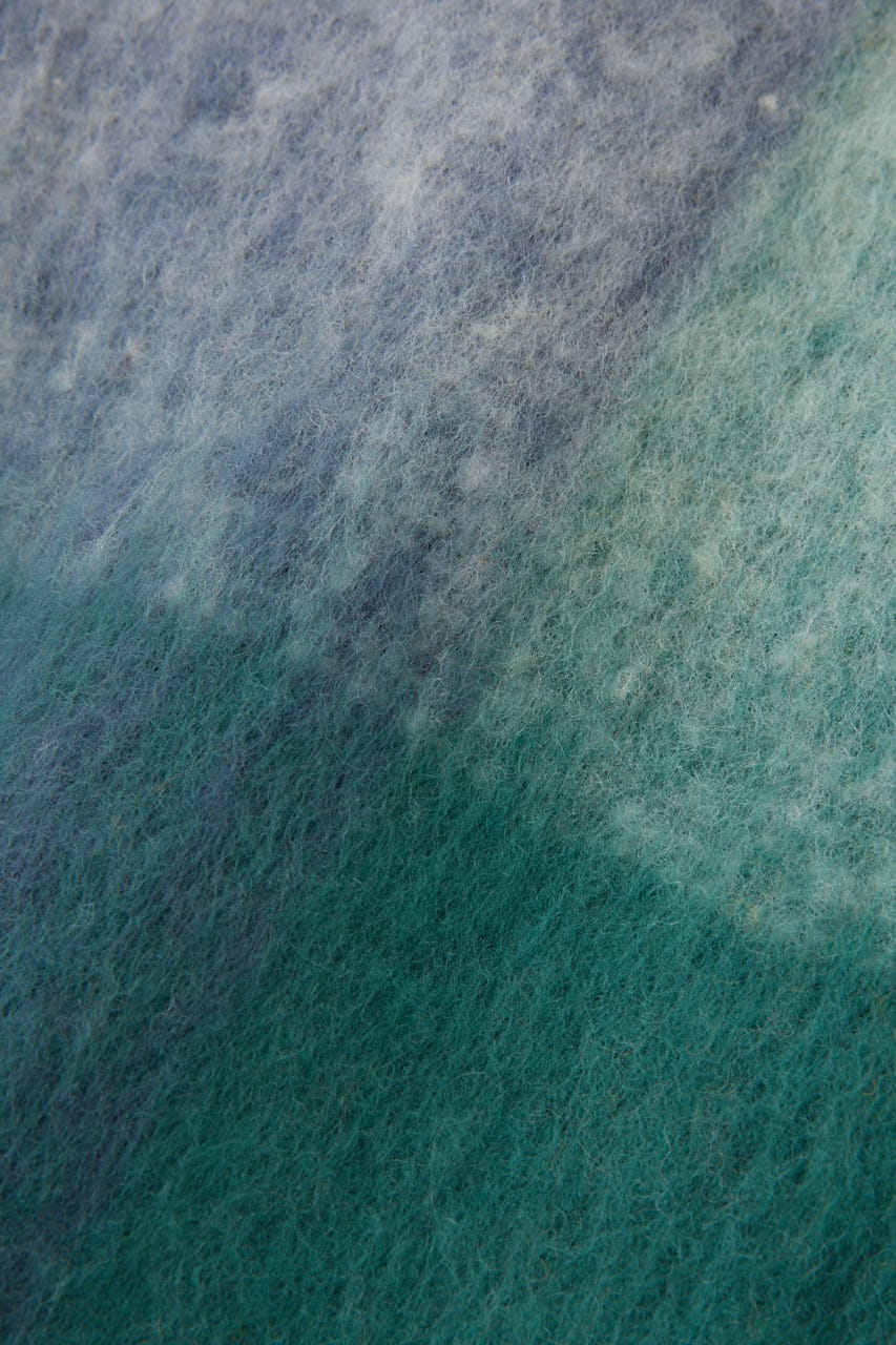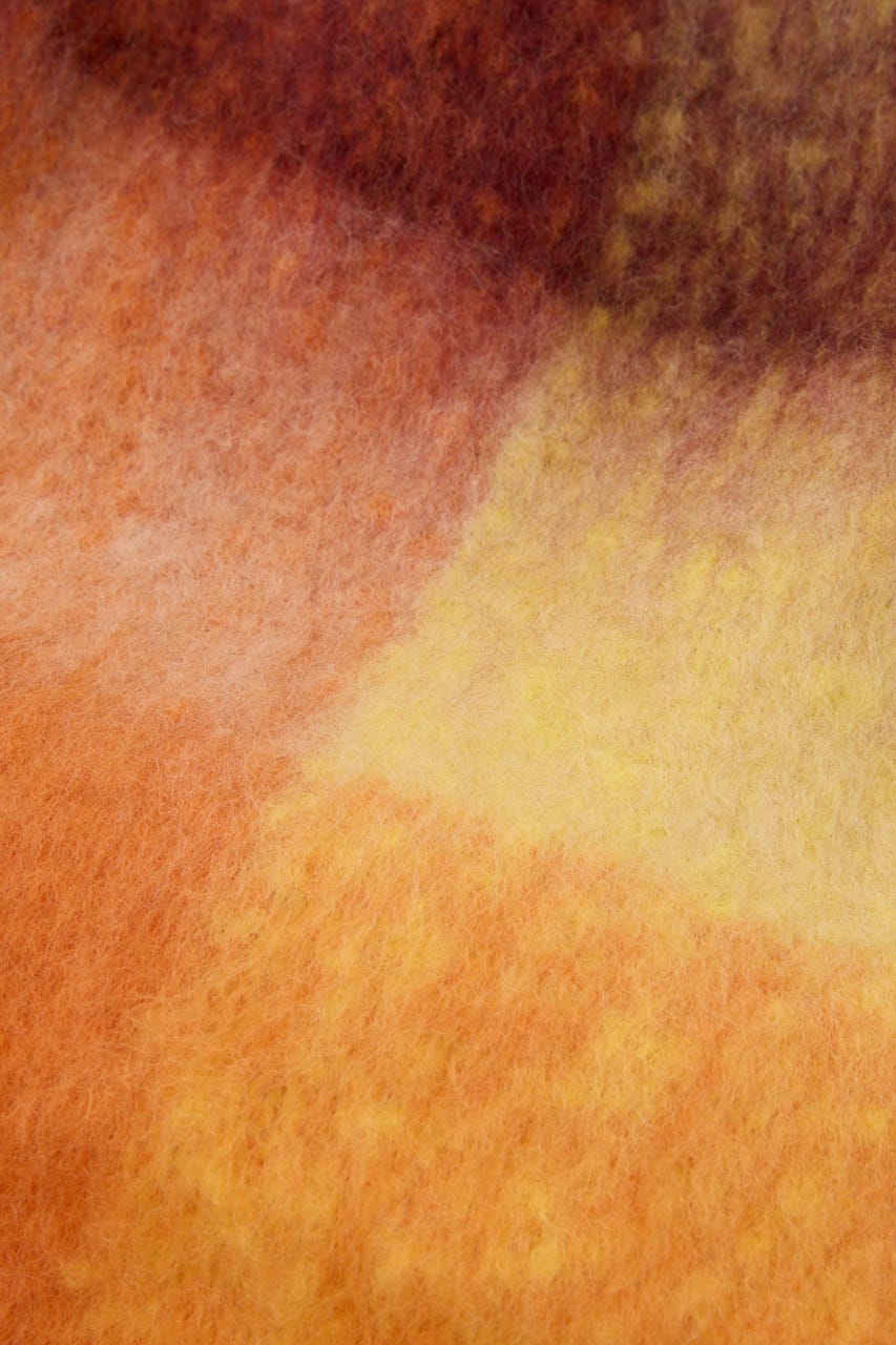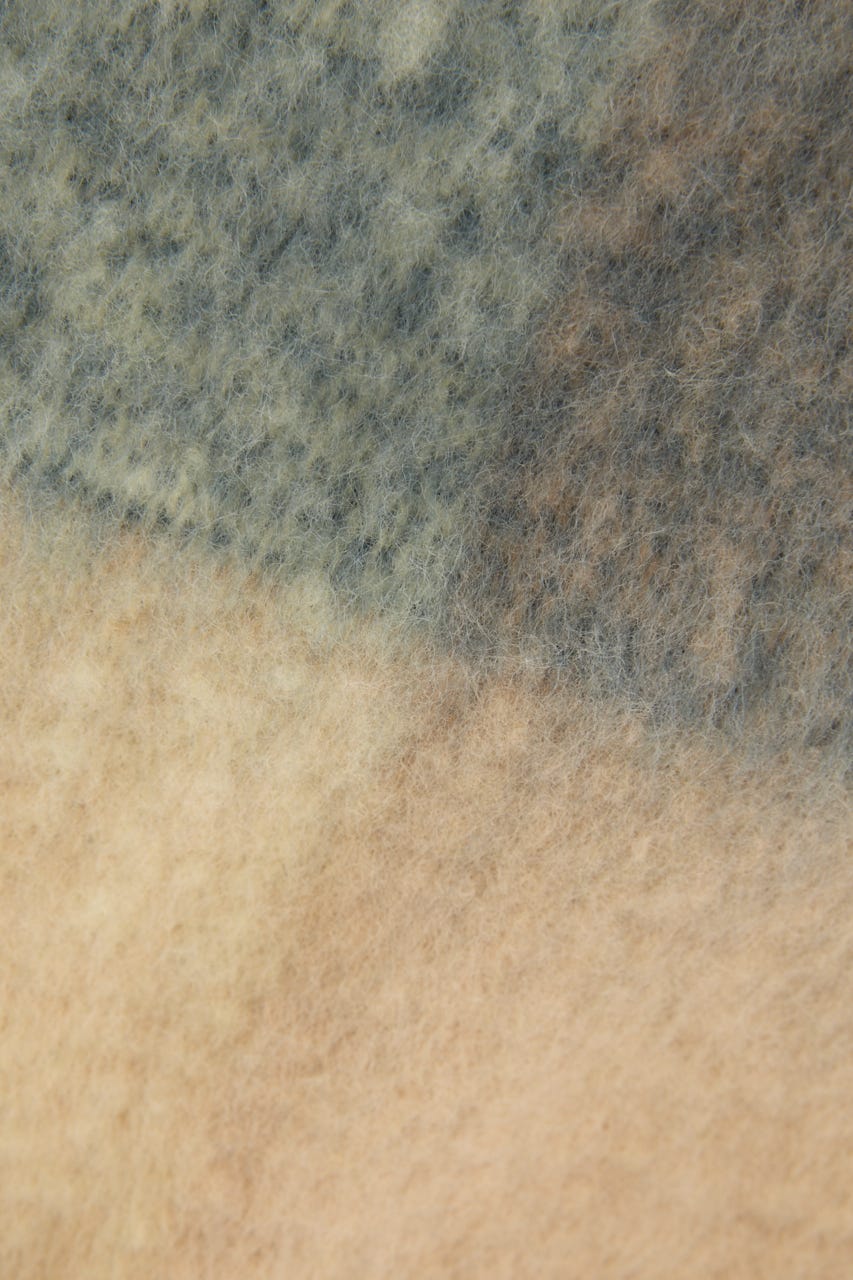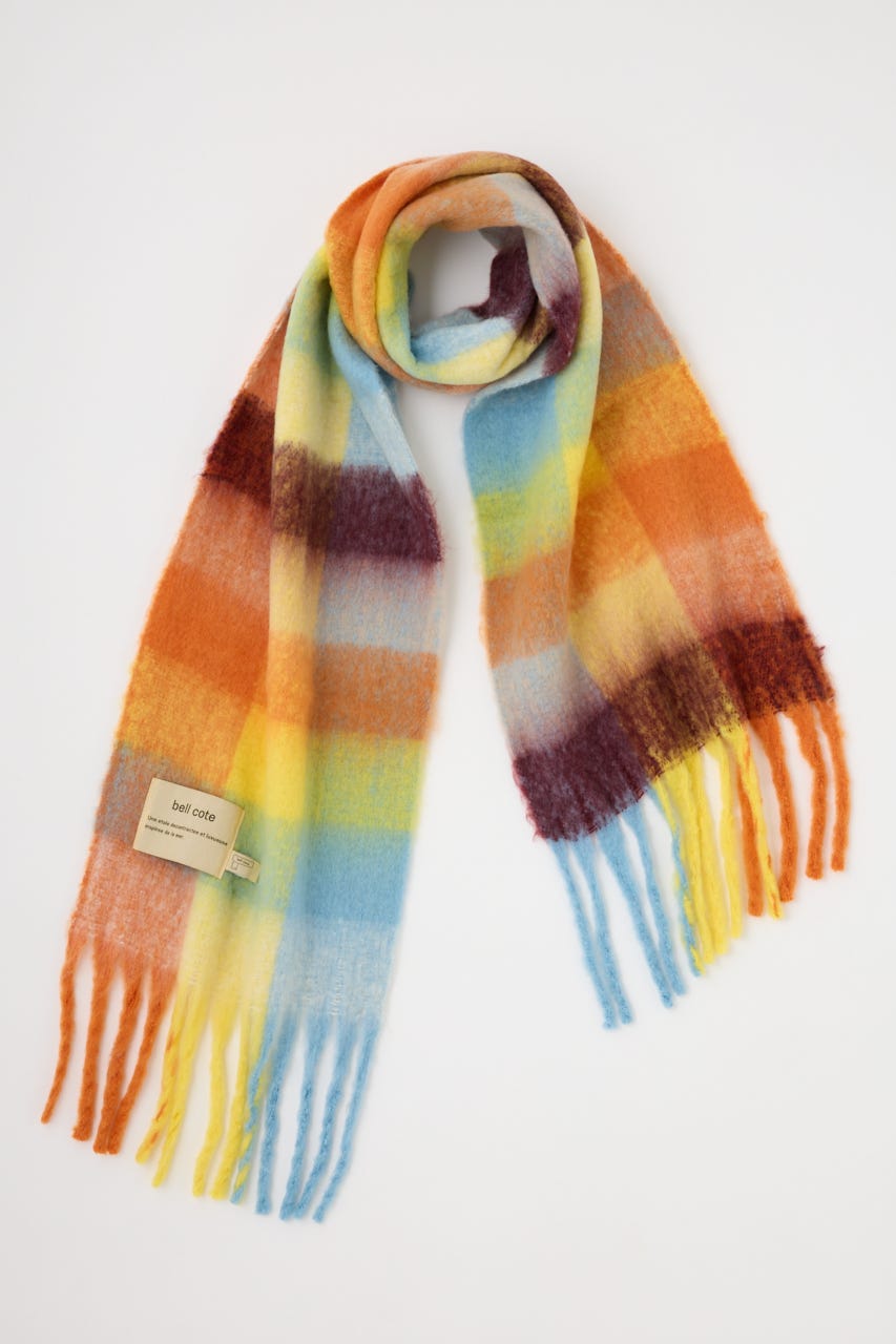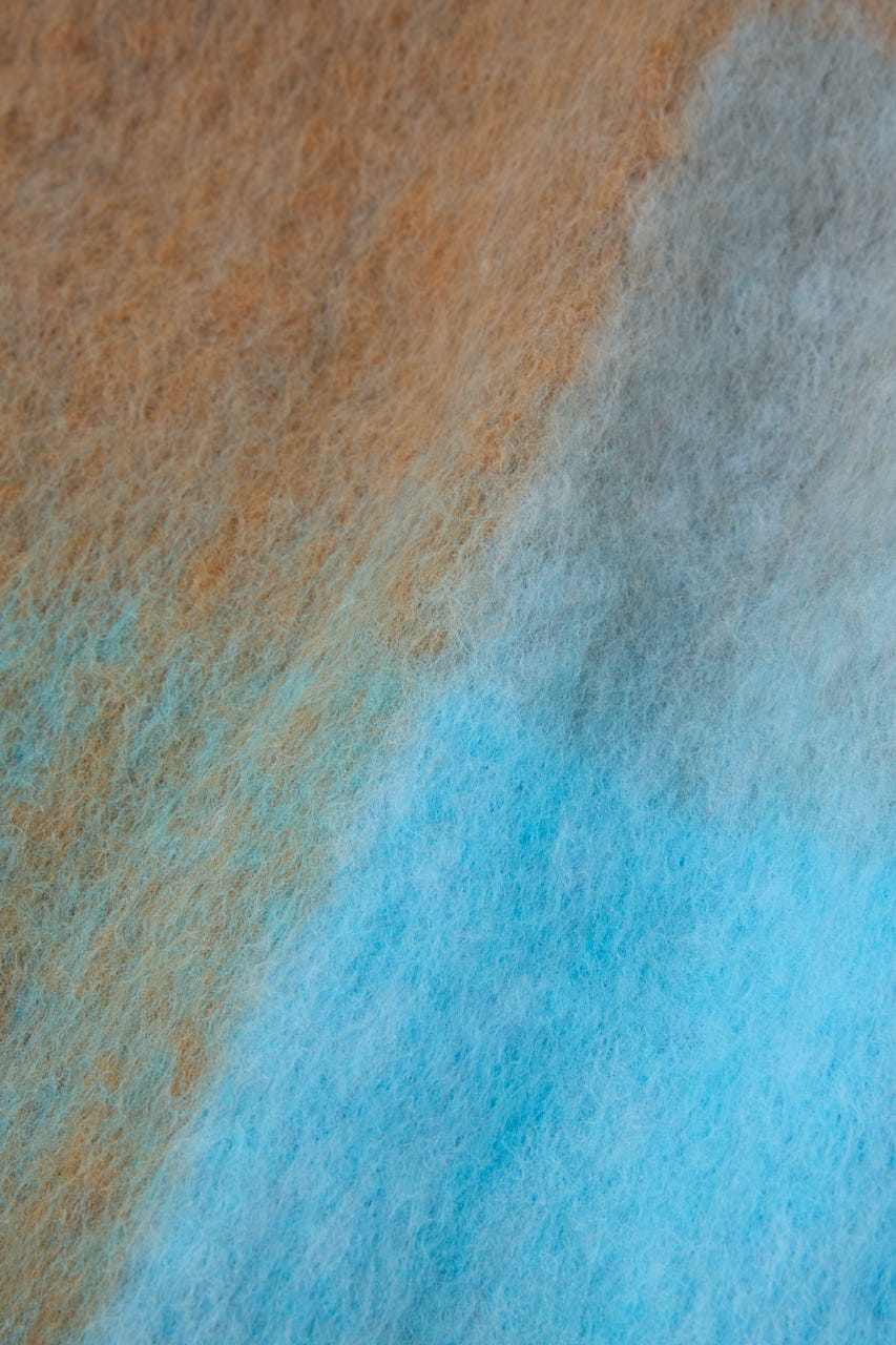 ポリエステル・アクリルの素材を使用し、ふわふわとボリューム感があり軽やかな着け心地のマフラーに仕上がりました。