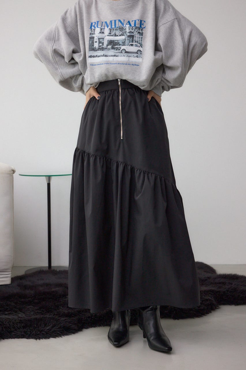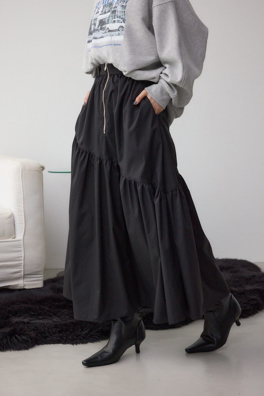 フロントジップデザインで、トップスをインした際のアクセントになります。
