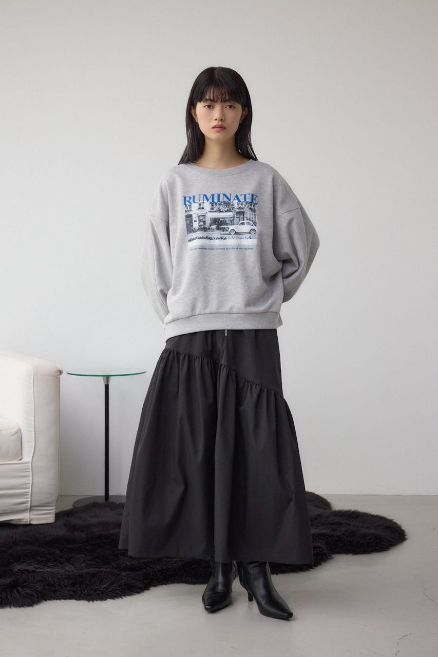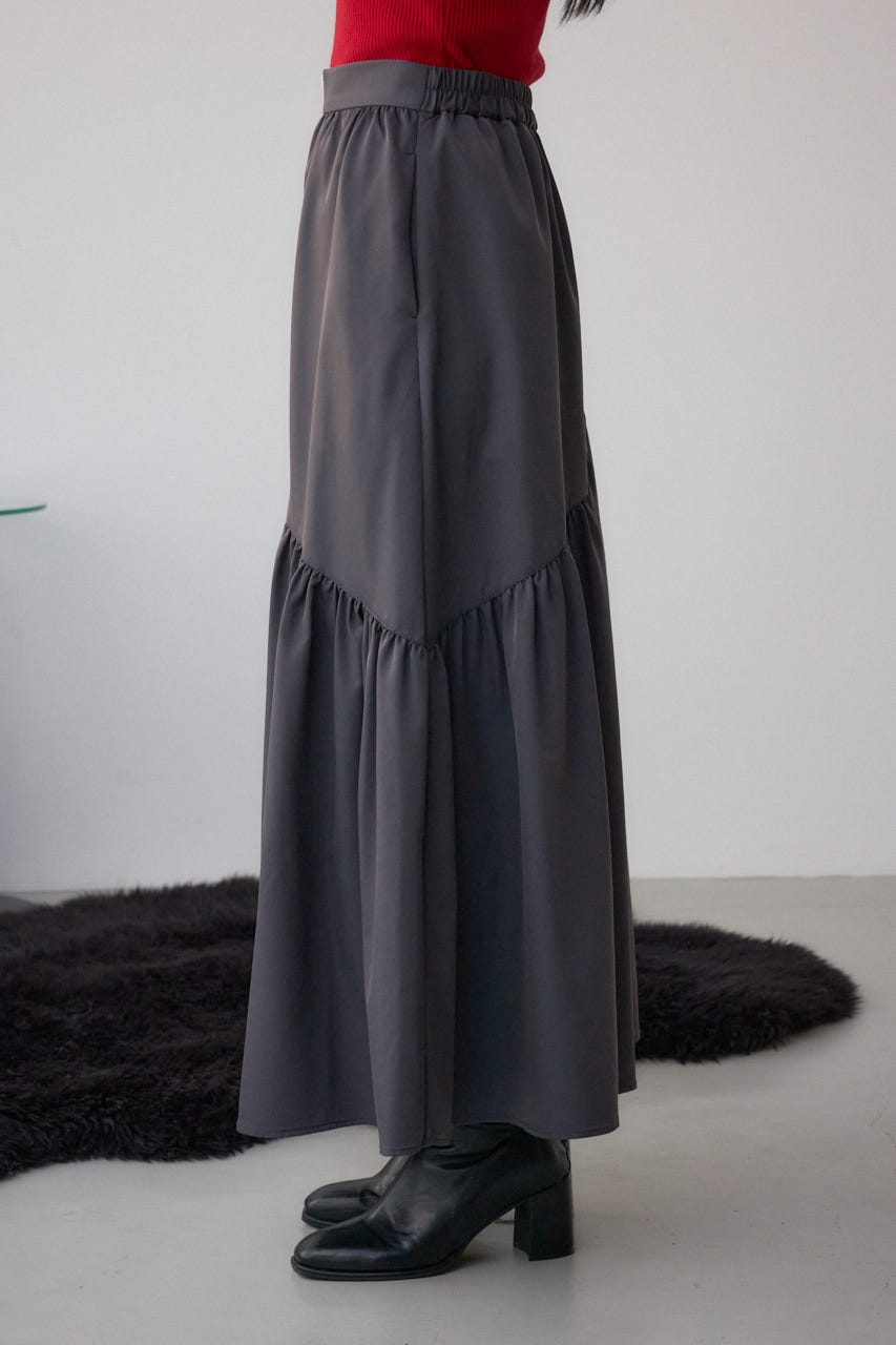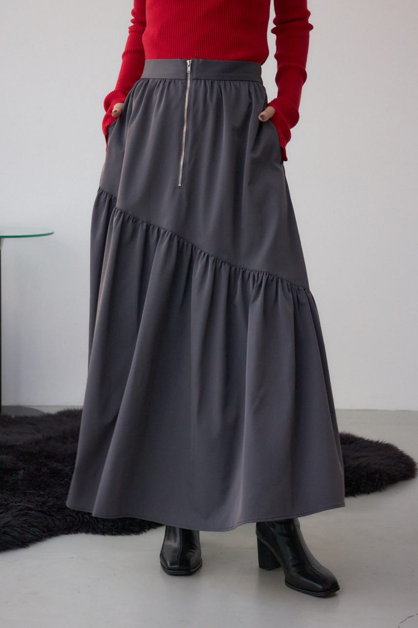 たっぷりとした分量感とアシンメトリーな切り替えがポイントです。