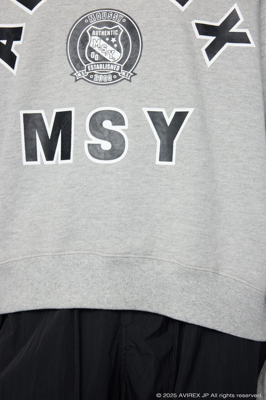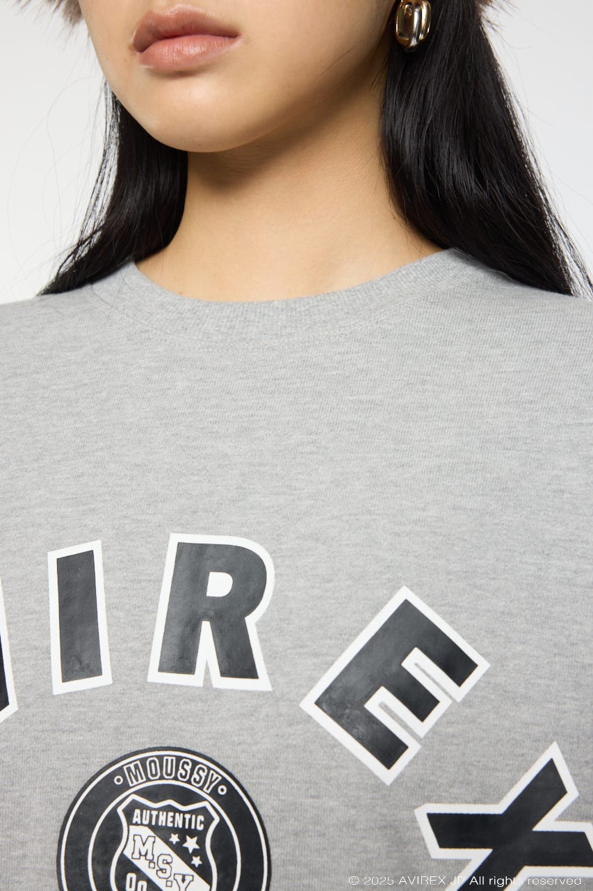 AVIREX MOUSSYのロゴが大胆なデザインで、オーバーめなサイズ感がゆったり着用できるアイテム。