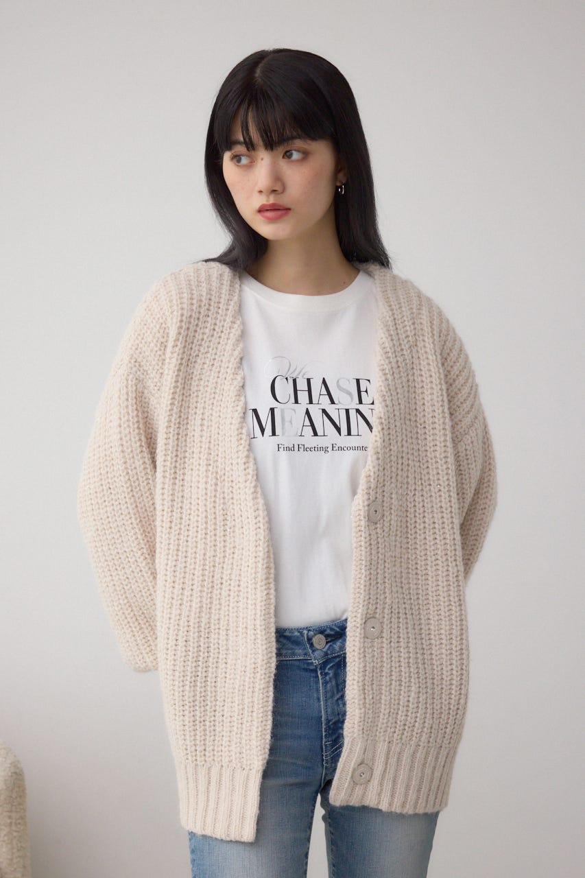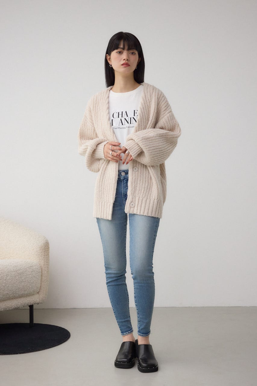さらっと羽織れるミドル丈のニットカーディガンです。