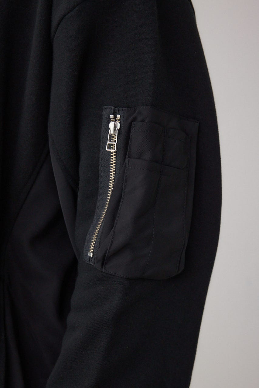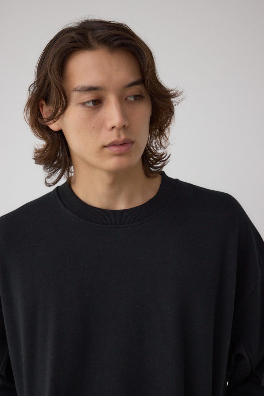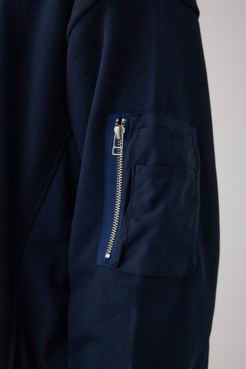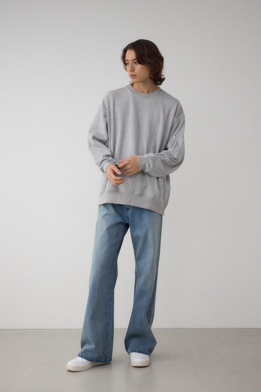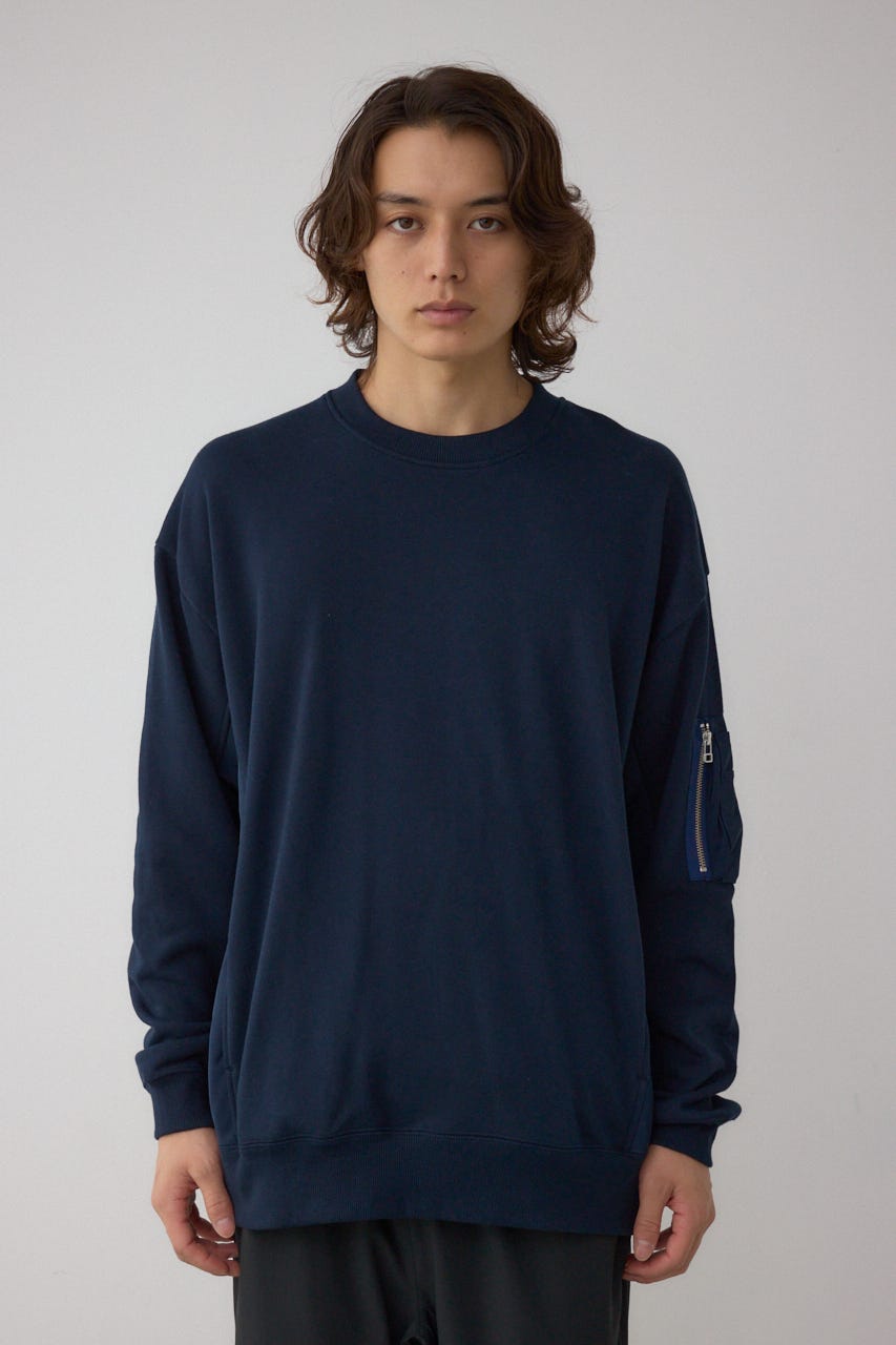 裏毛スウェットとやや光沢のある布帛をドッキングしたプルオーバー。
