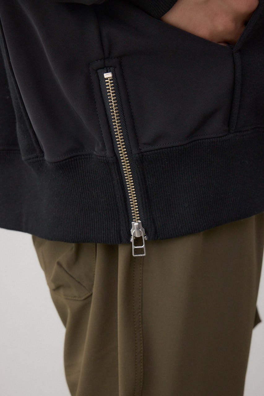 しっかりめの裏毛に、やや光沢感のある布帛をドッキングしています。