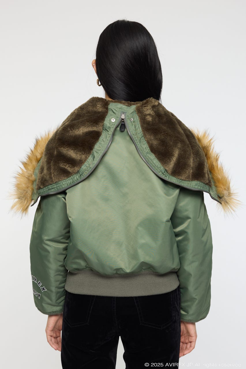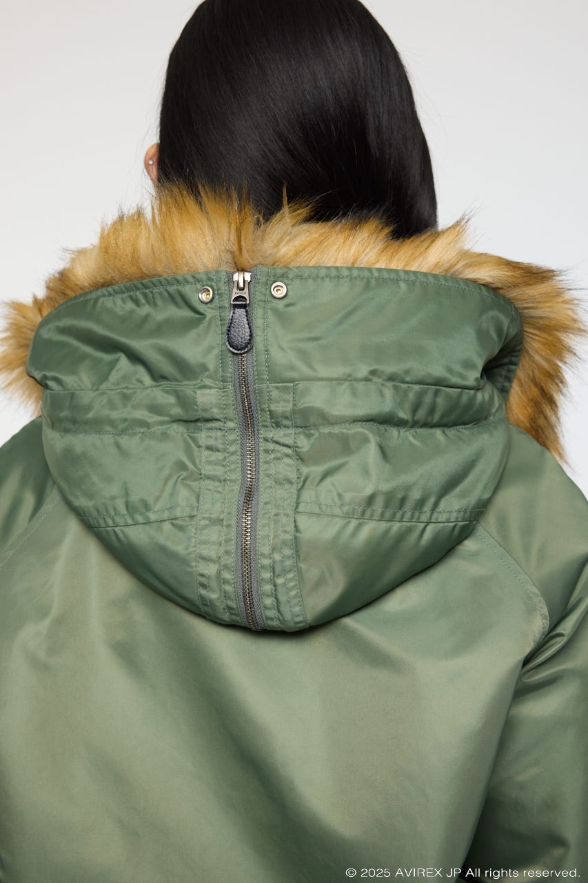 フード裏のファーを配色にすることで遊び心のある1着に仕上げました。