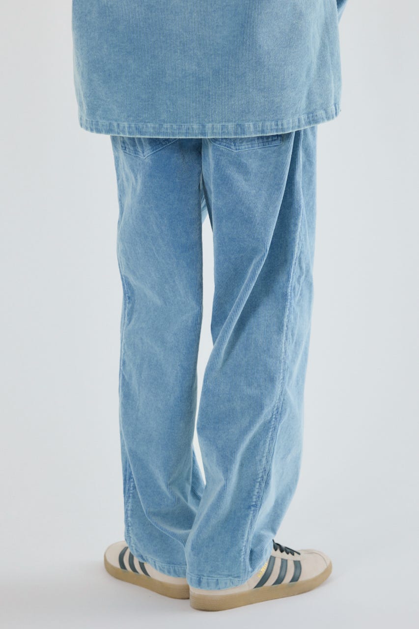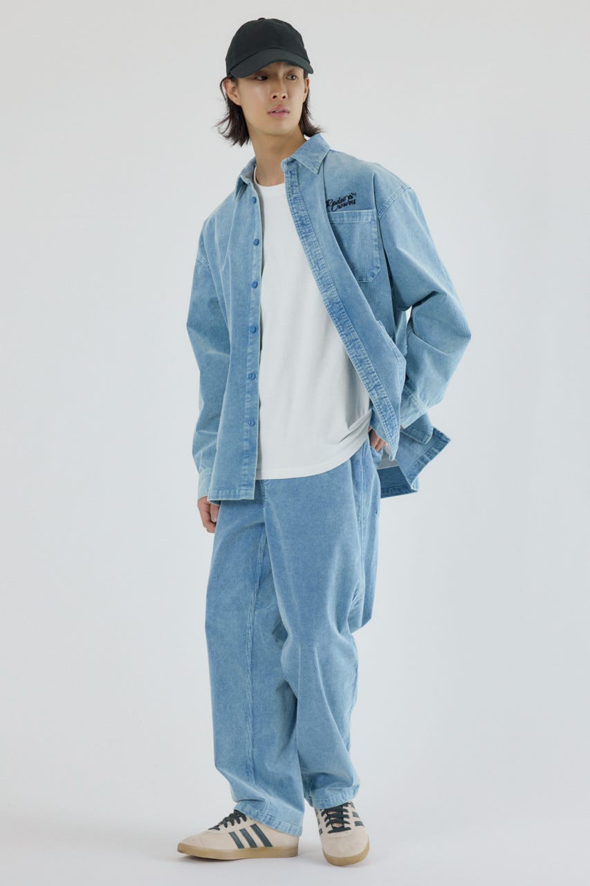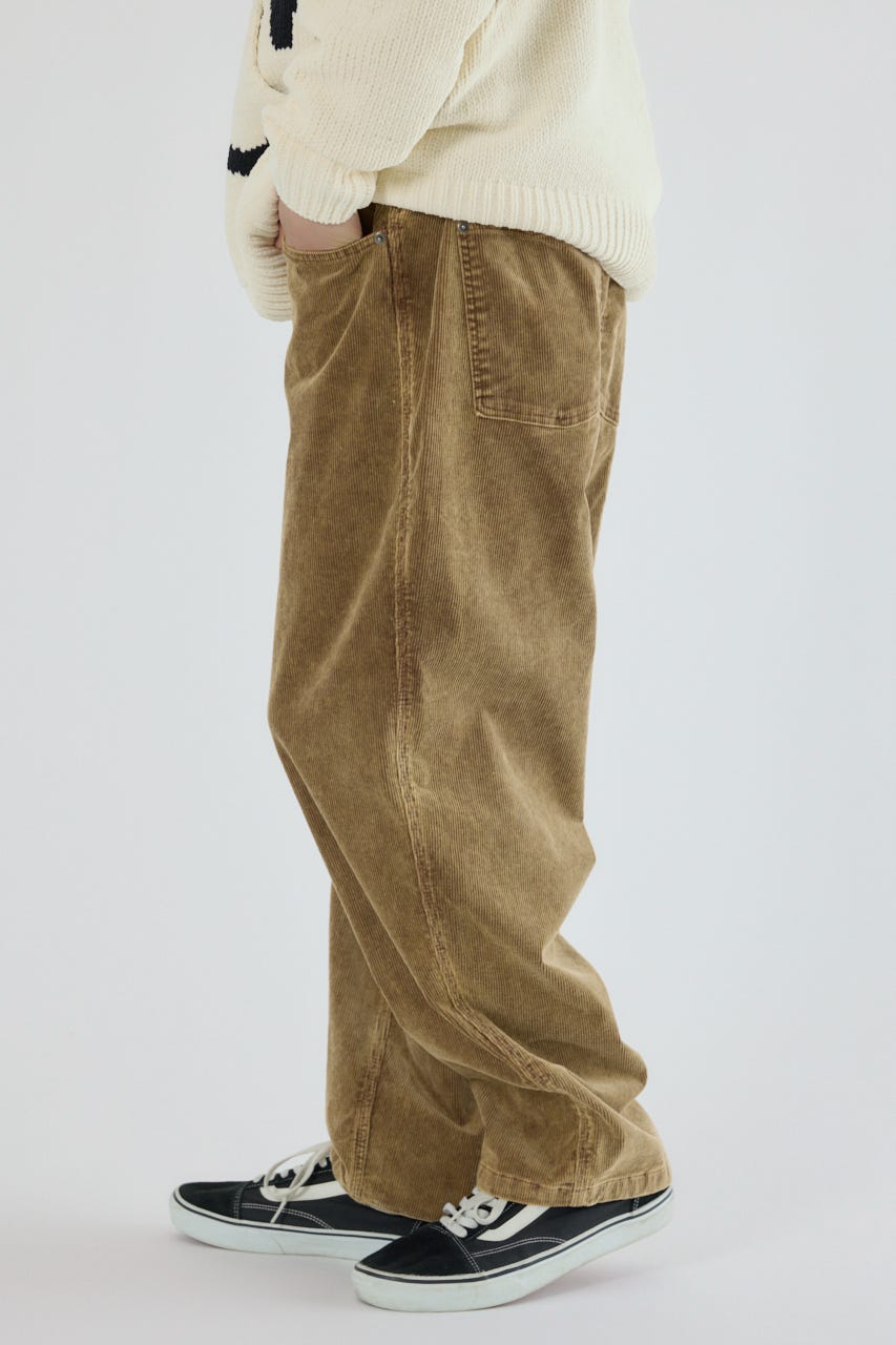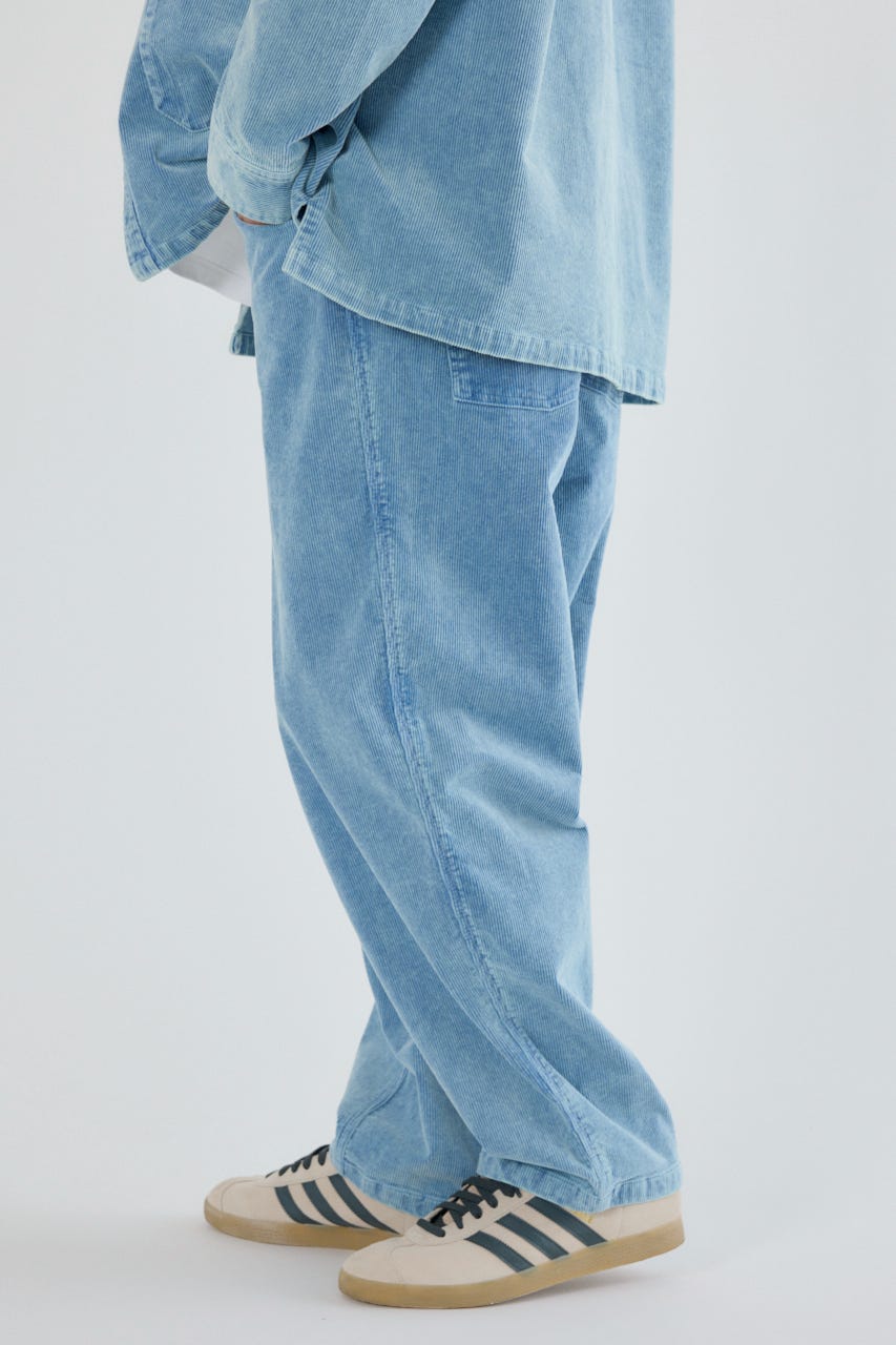 くすんだ表情を作り出すケミカル加工をコーデュロイにほどこし、ヴィンテージライクな雰囲気に仕上げたボトムになります。
