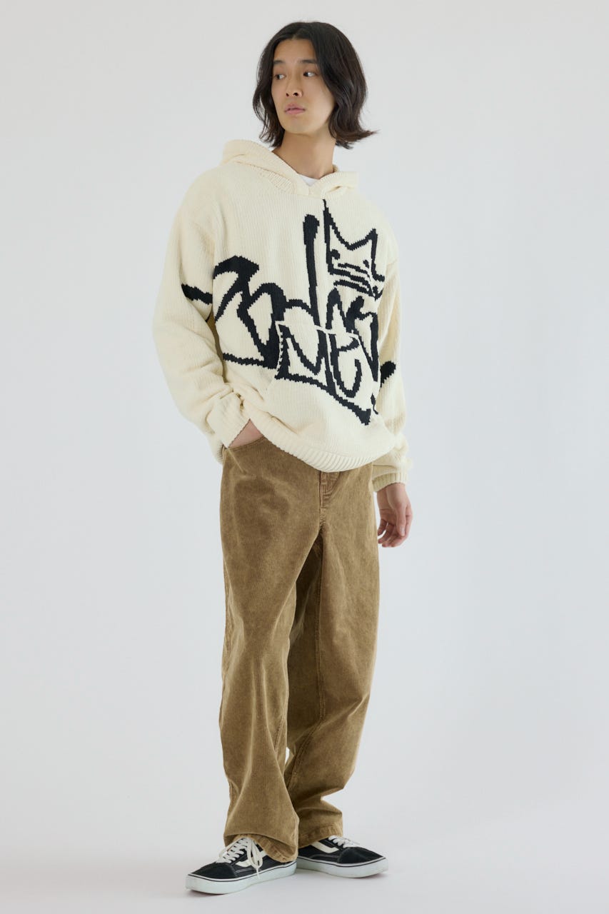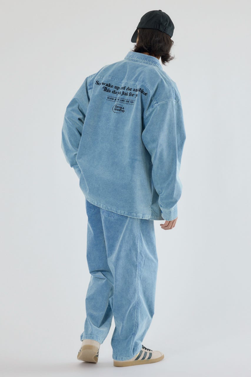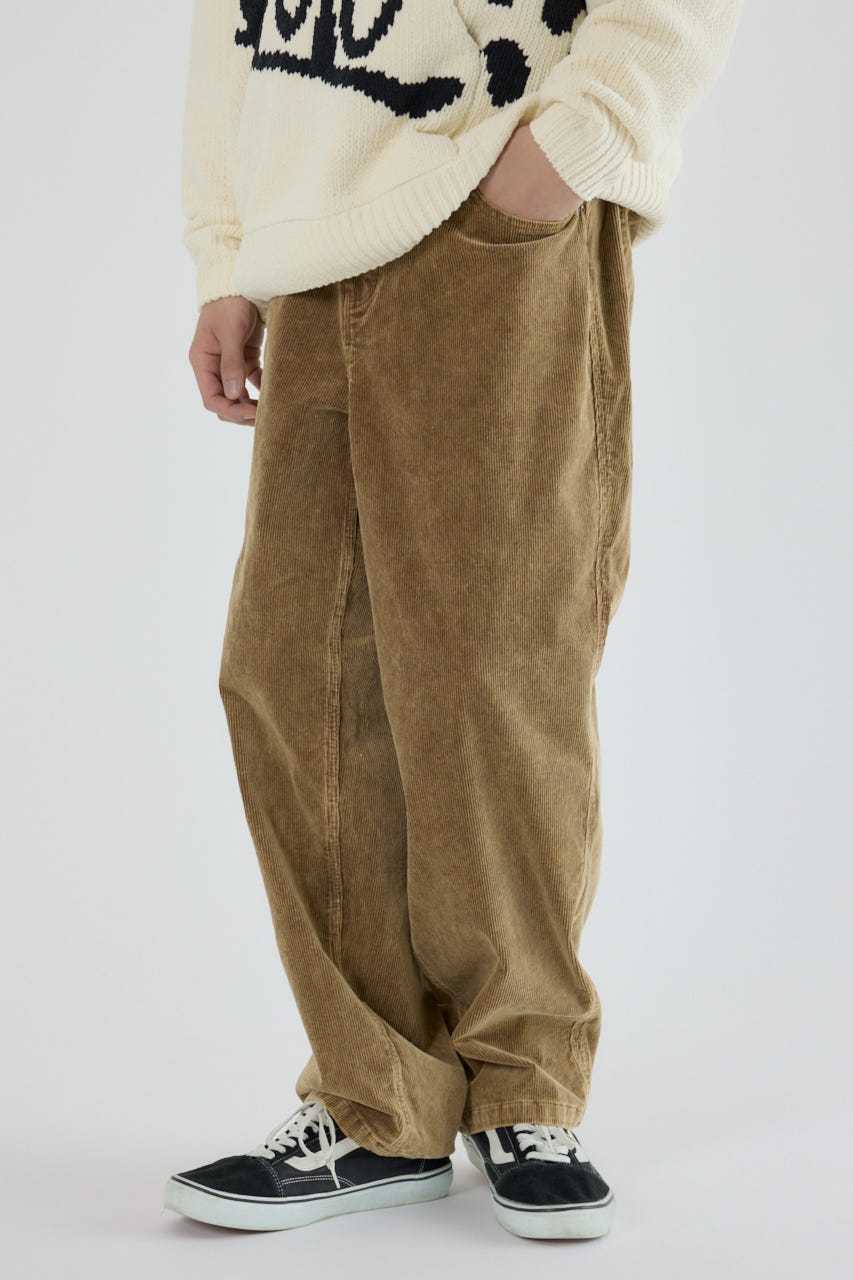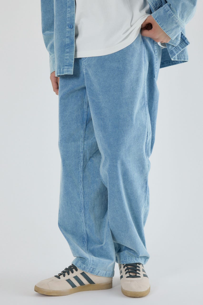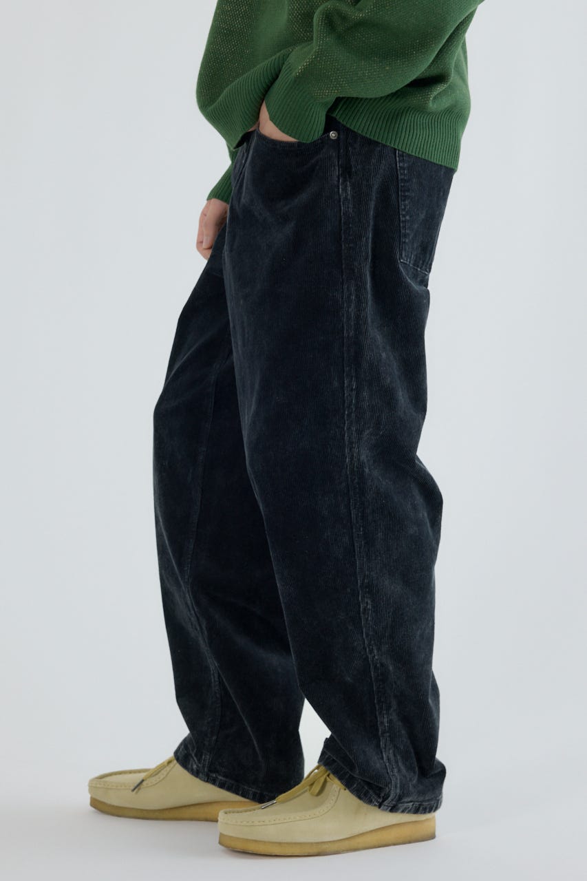 くすんだ表情を作り出すケミカル加工をコーデュロイにほどこし、ヴィンテージライクな雰囲気に仕上げたボトムになります。