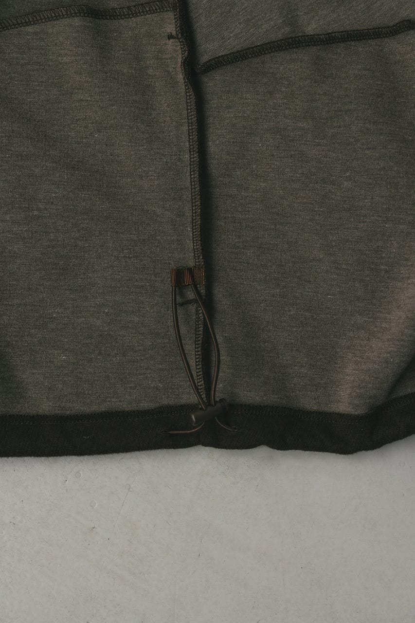 表面は表面感のある綾織組織で暖かみある起毛布帛生地、裏面はソフトな肌さわりで温もりある天竺生地を使用。