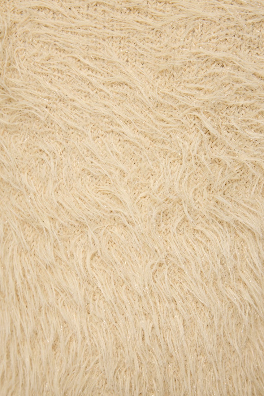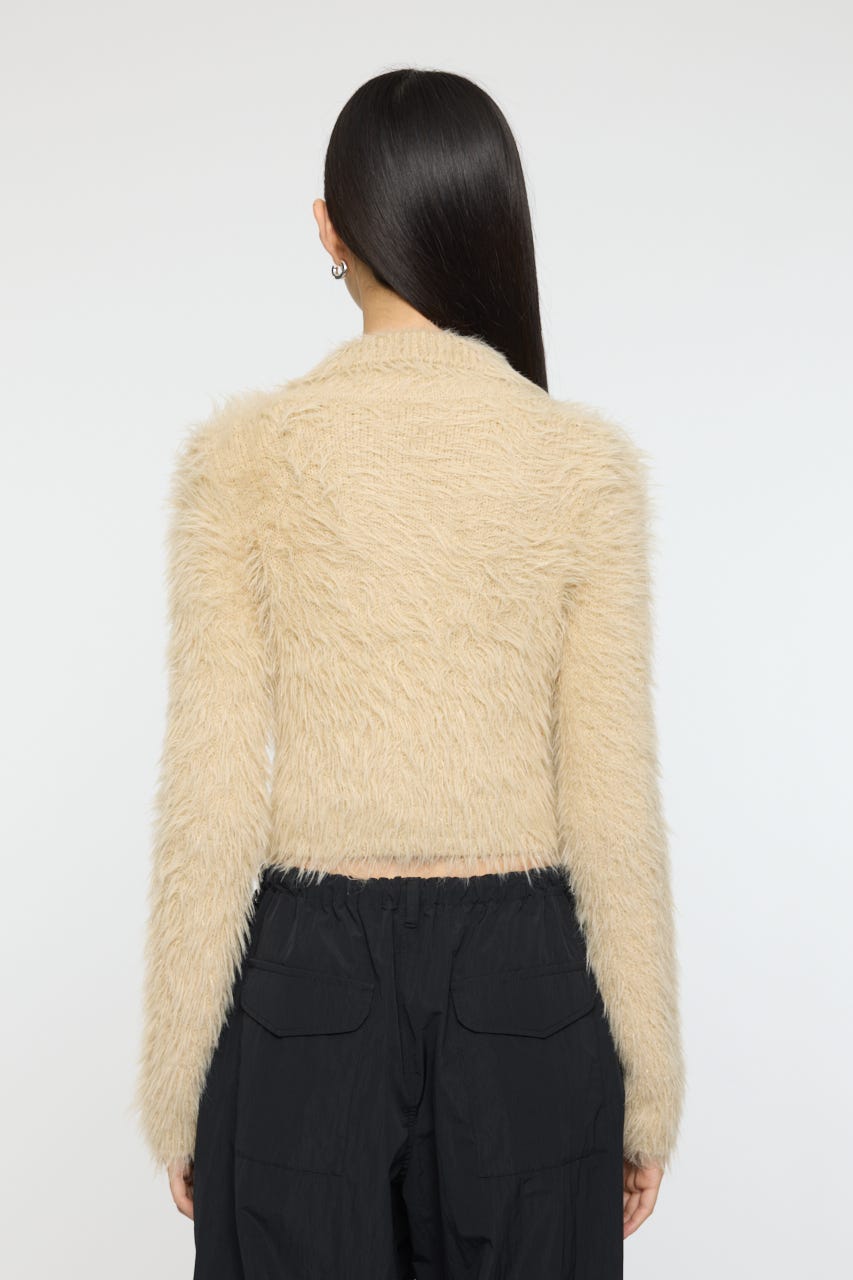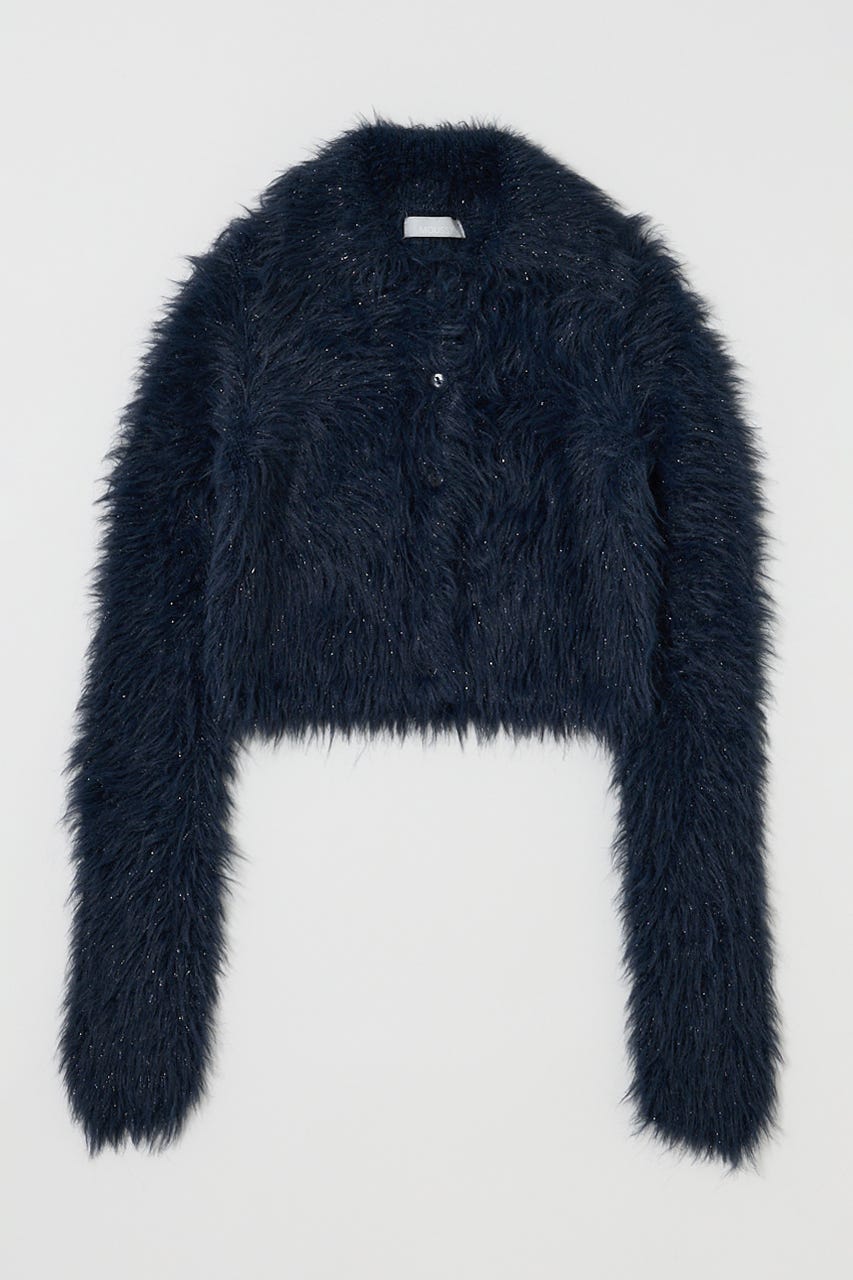 毛足のあるフェザーヤーン素材で、ラグジュアリーかつ遊び心ある印象。