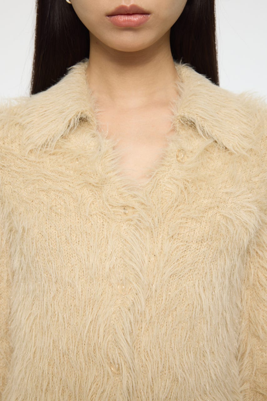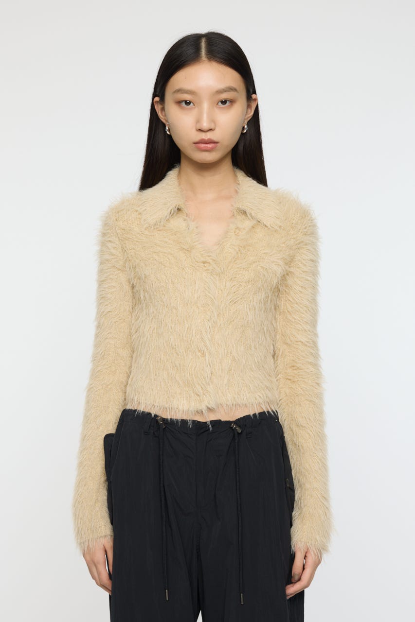 フェザーヤーンのふわふわとした質感が存在感を放つニットシャツ。