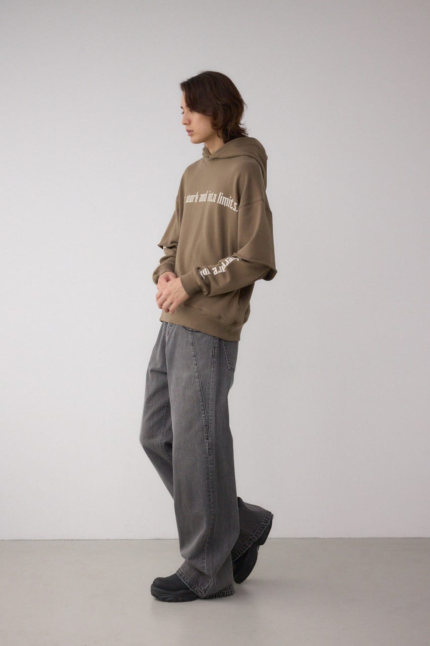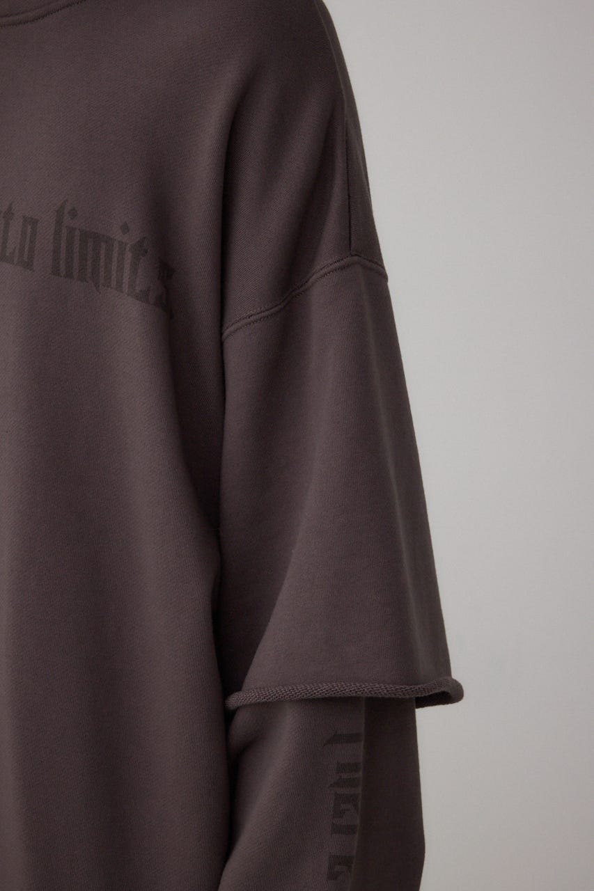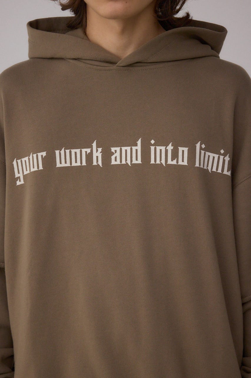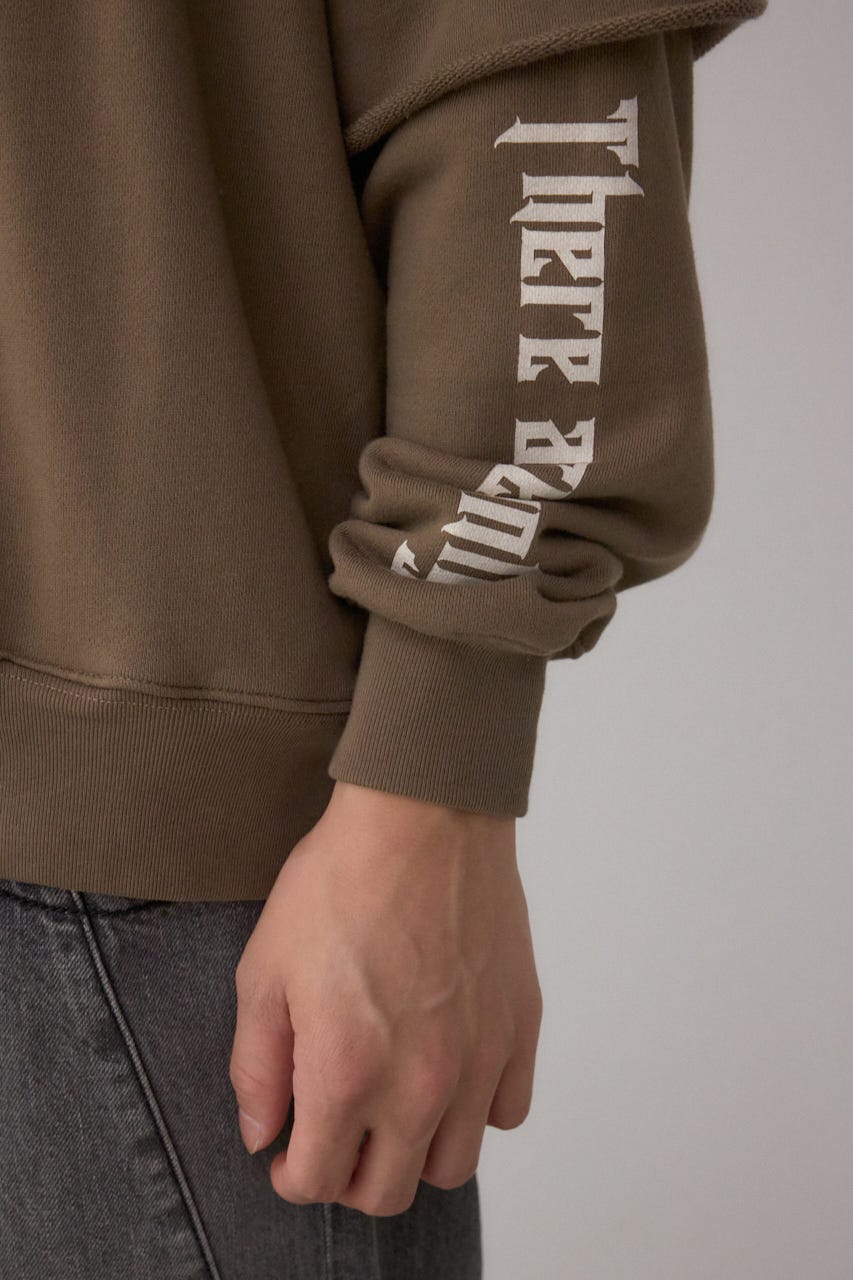 フェイクレイヤード仕様で1枚で重ね着風の表情が出せるスウェットフーディー。