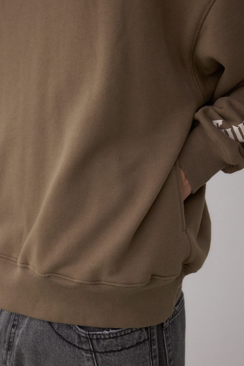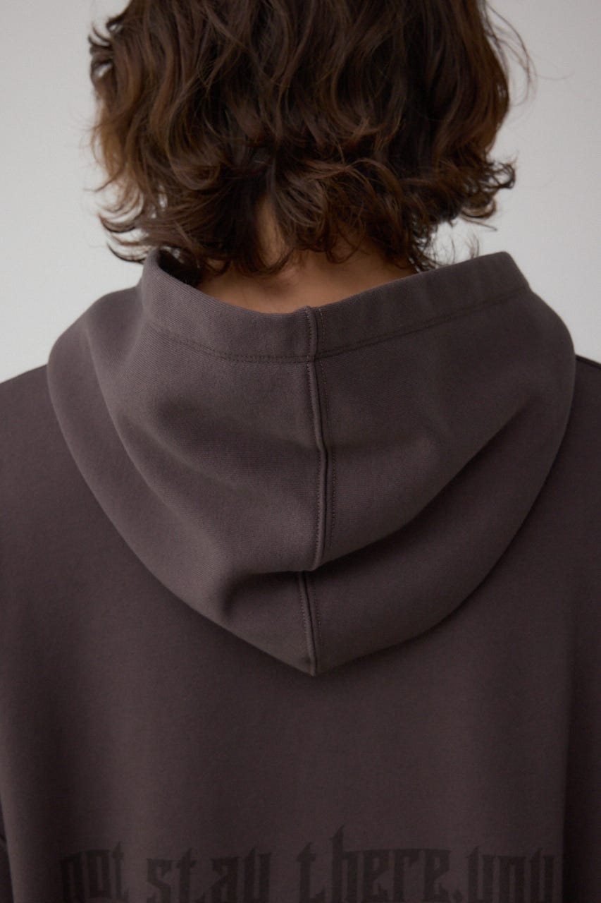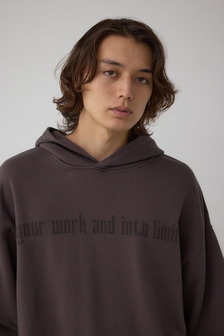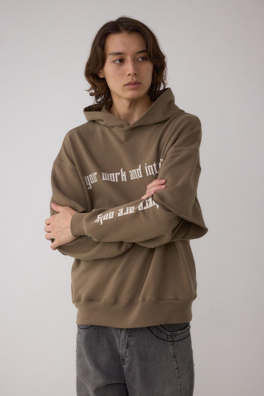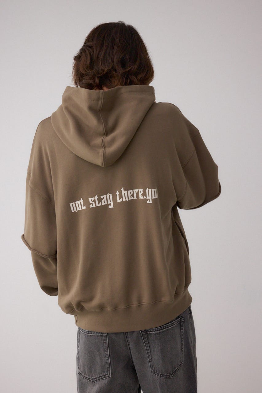 フェイクレイヤード仕様で1枚で重ね着風の表情が出せるスウェットフーディー。