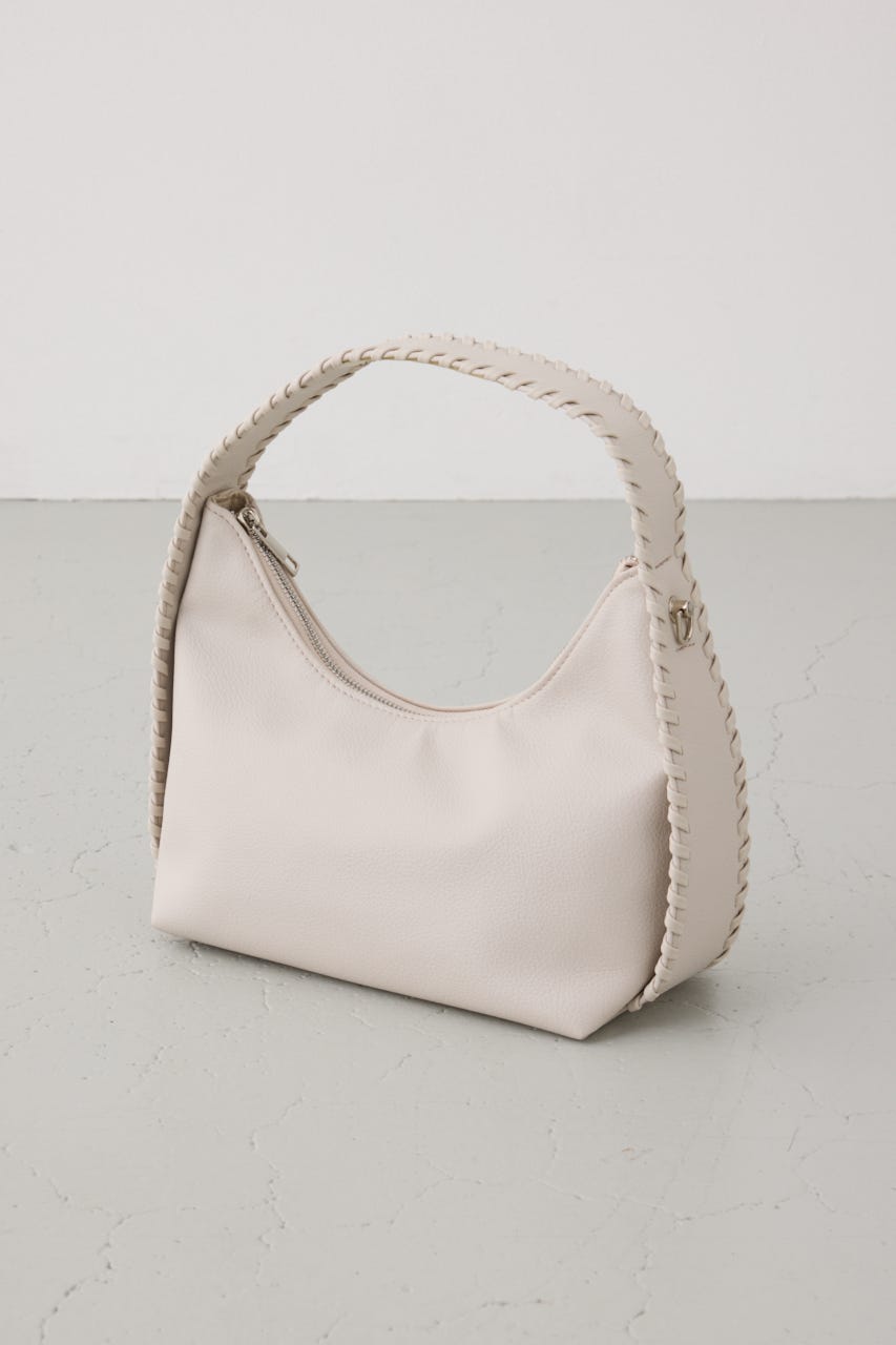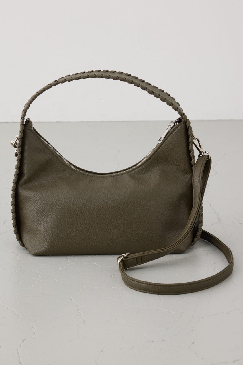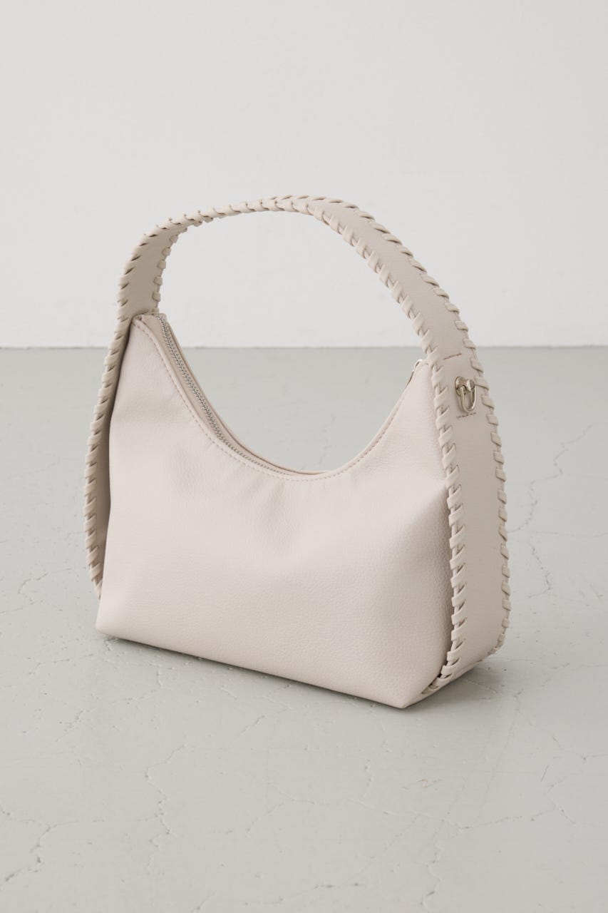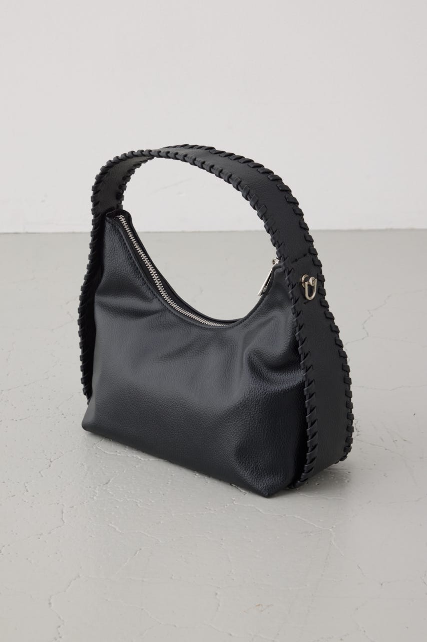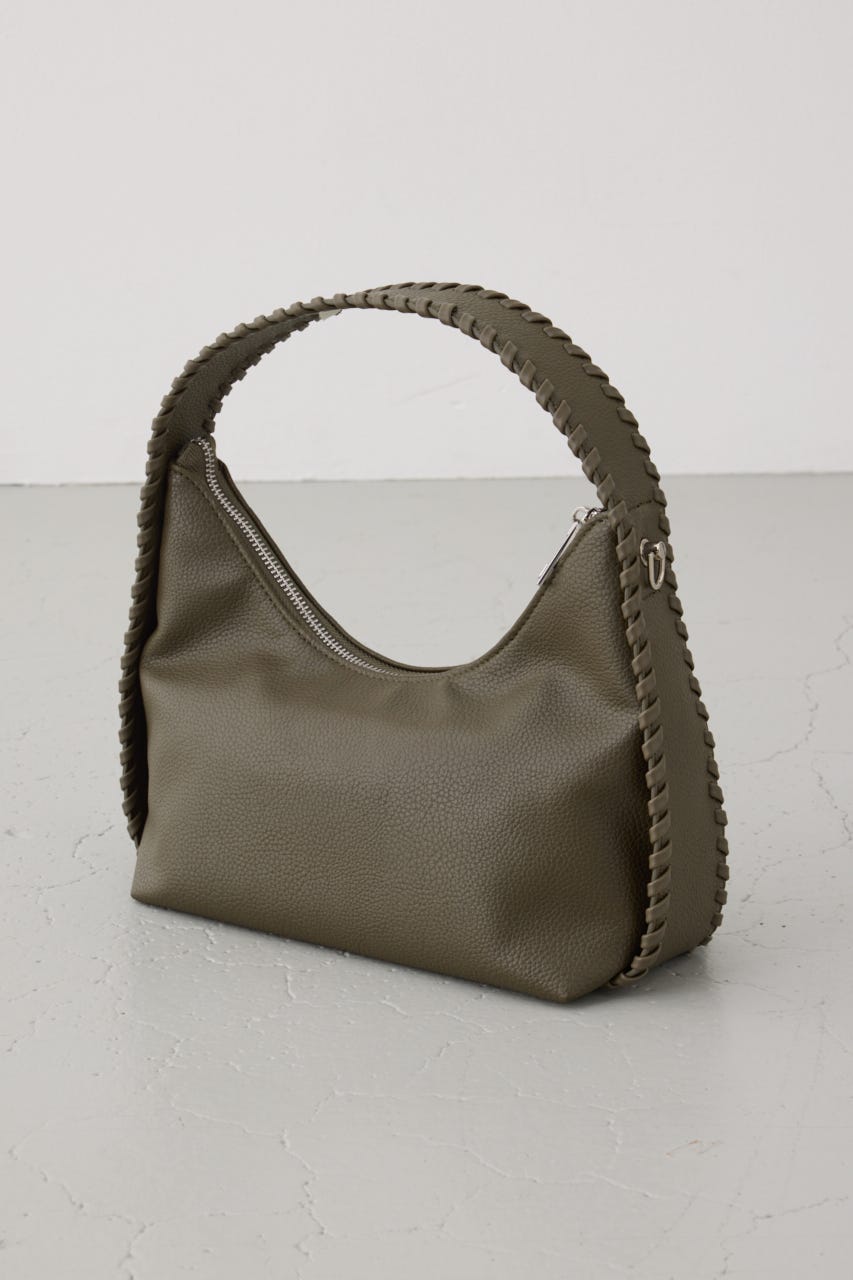 持ち手からサイドにかけた縫込みデザインがアクセントの、ハンド・ショルダーの2WAYで使えるバッグ。
