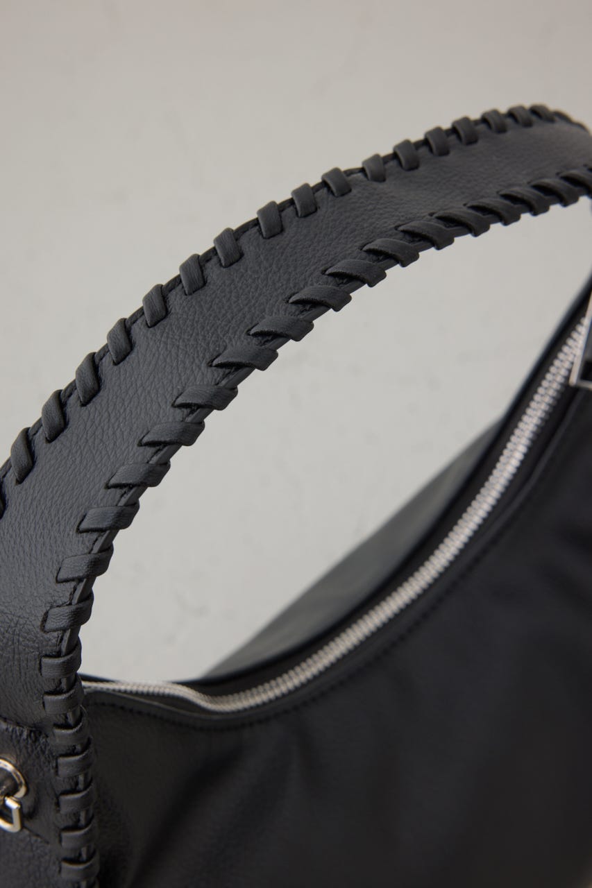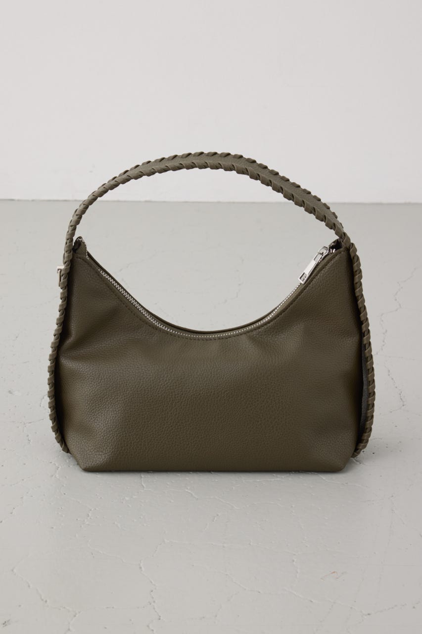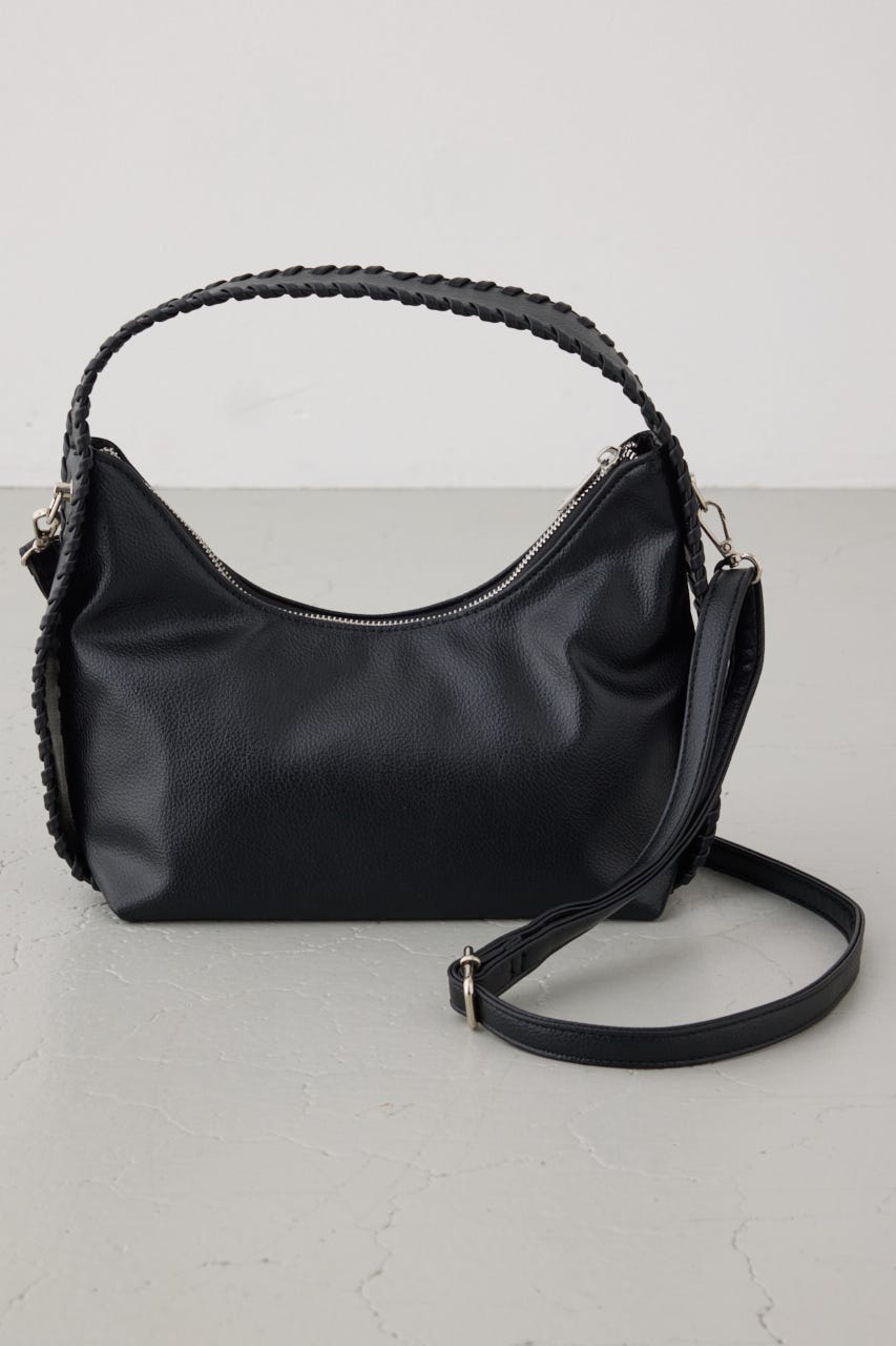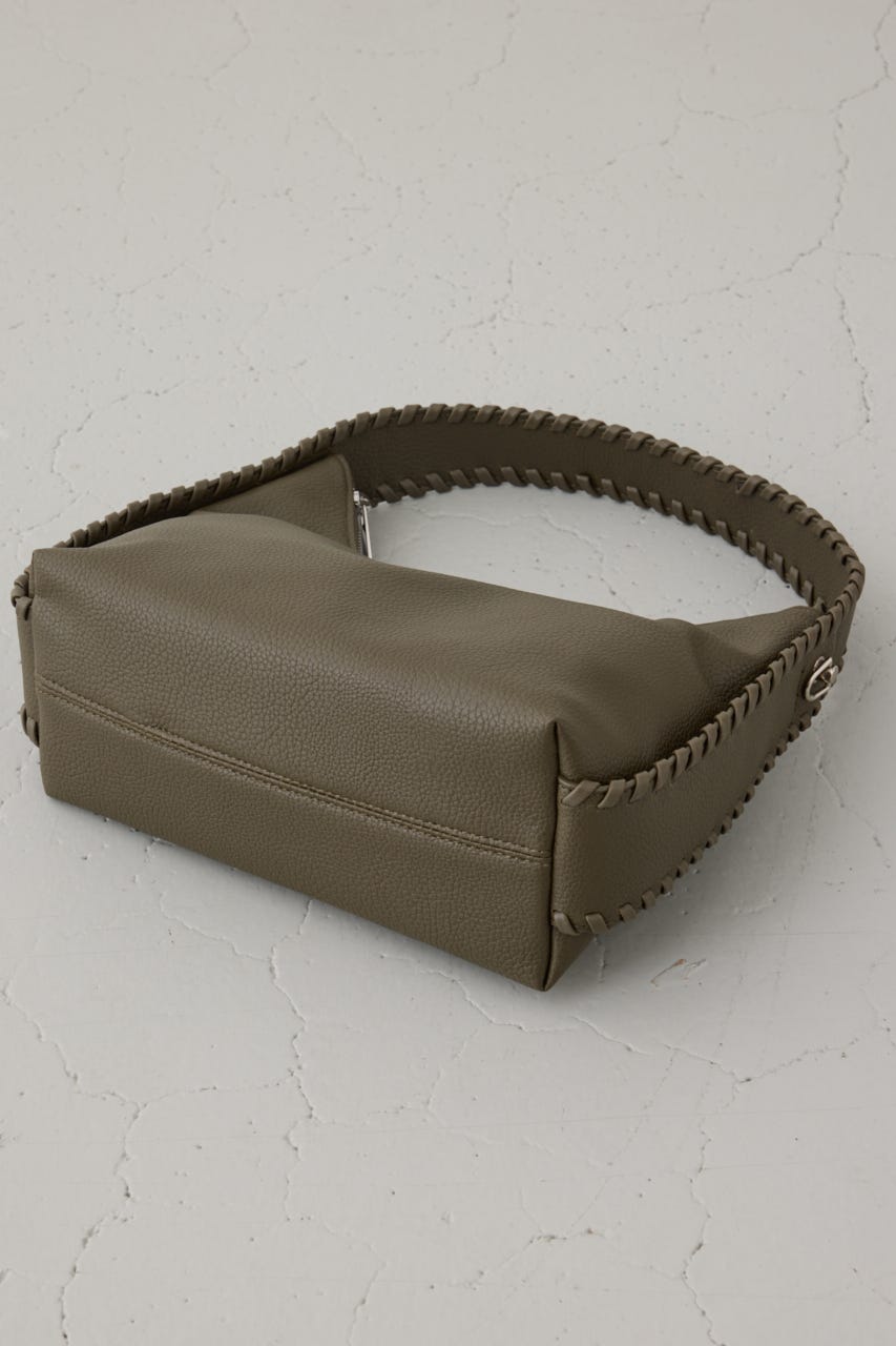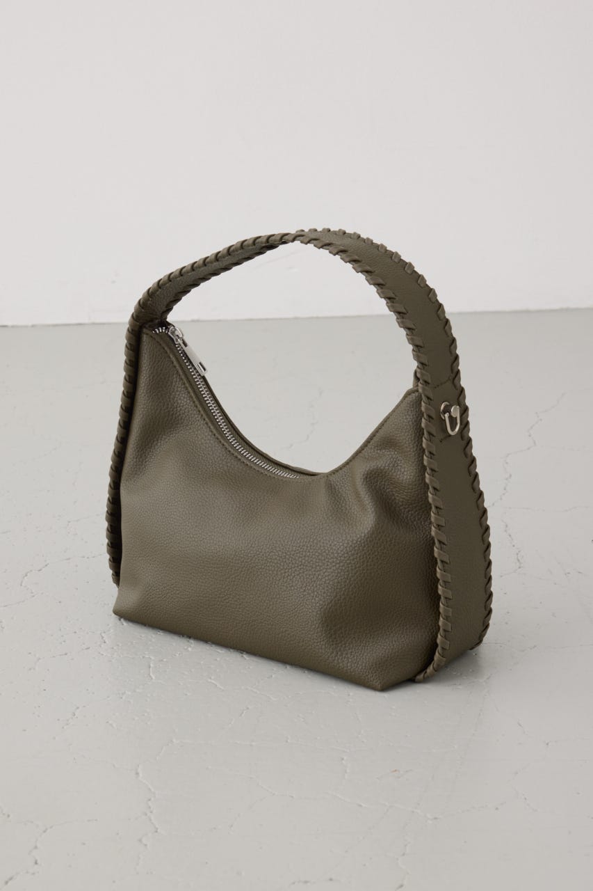持ち手からサイドにかけた縫込みデザインがアクセントの、ハンド・ショルダーの2WAYで使えるバッグ。