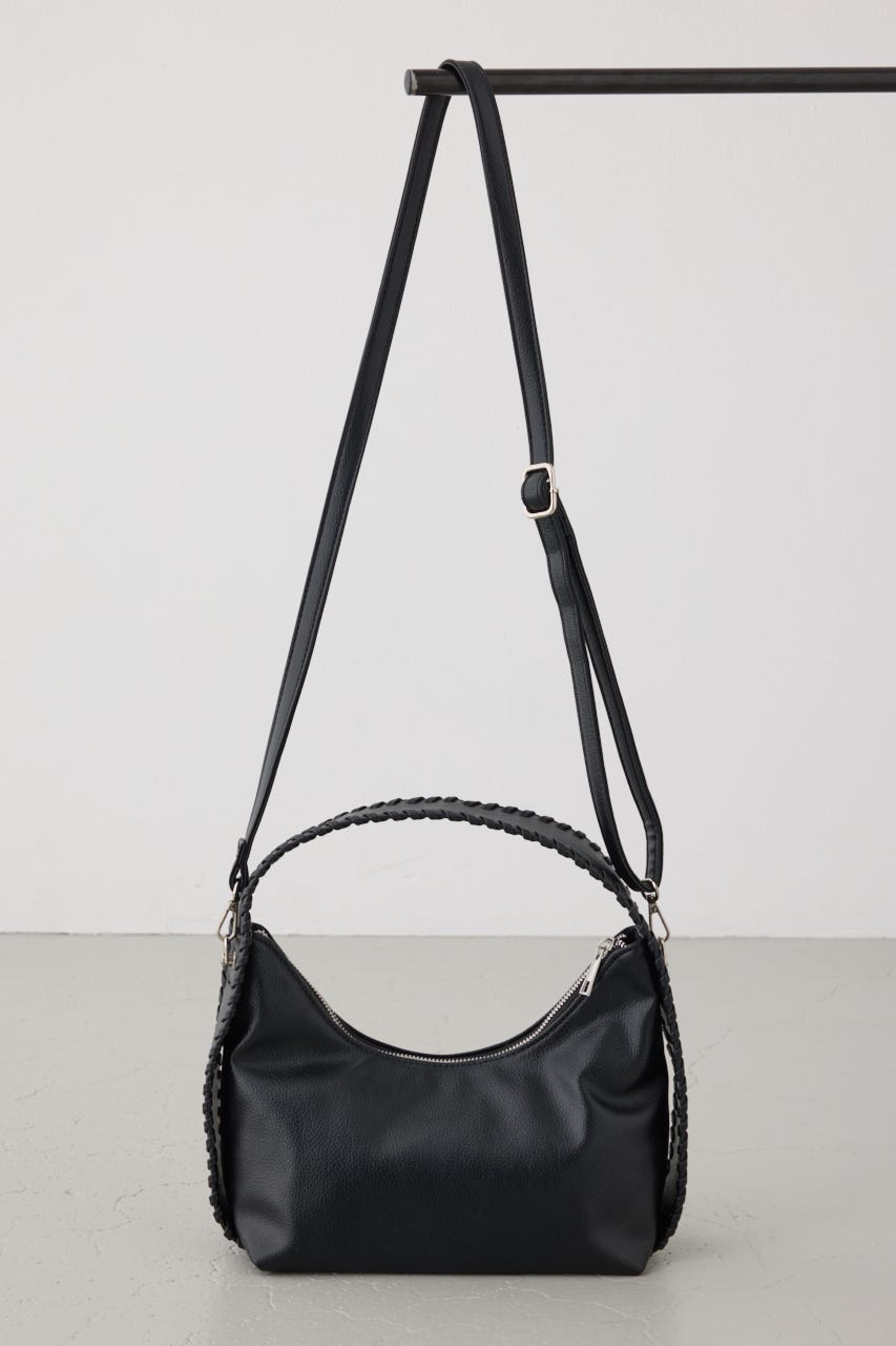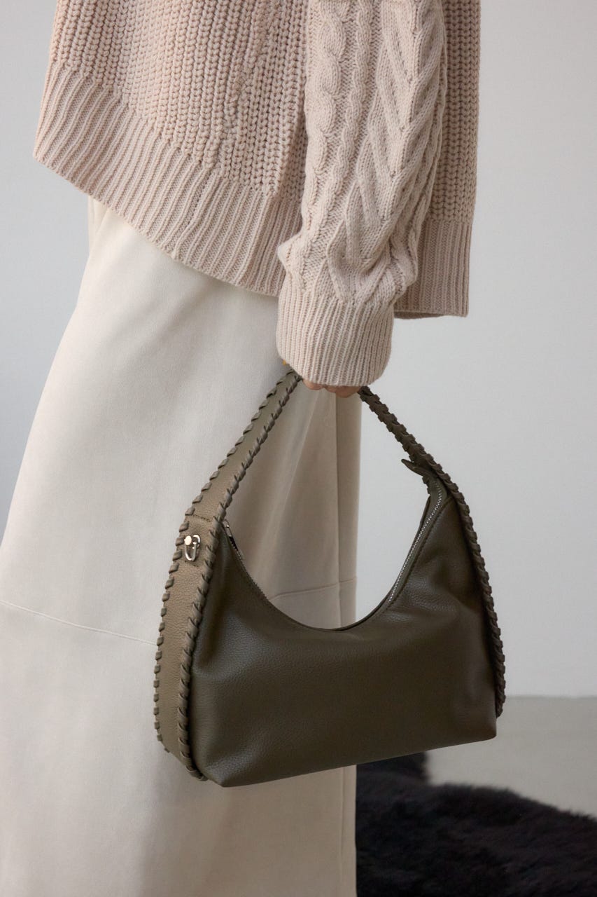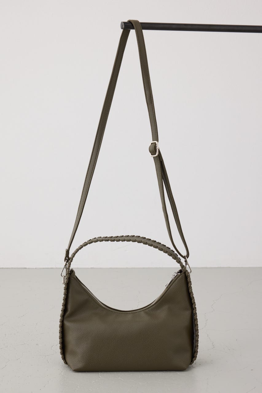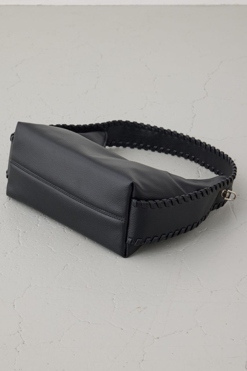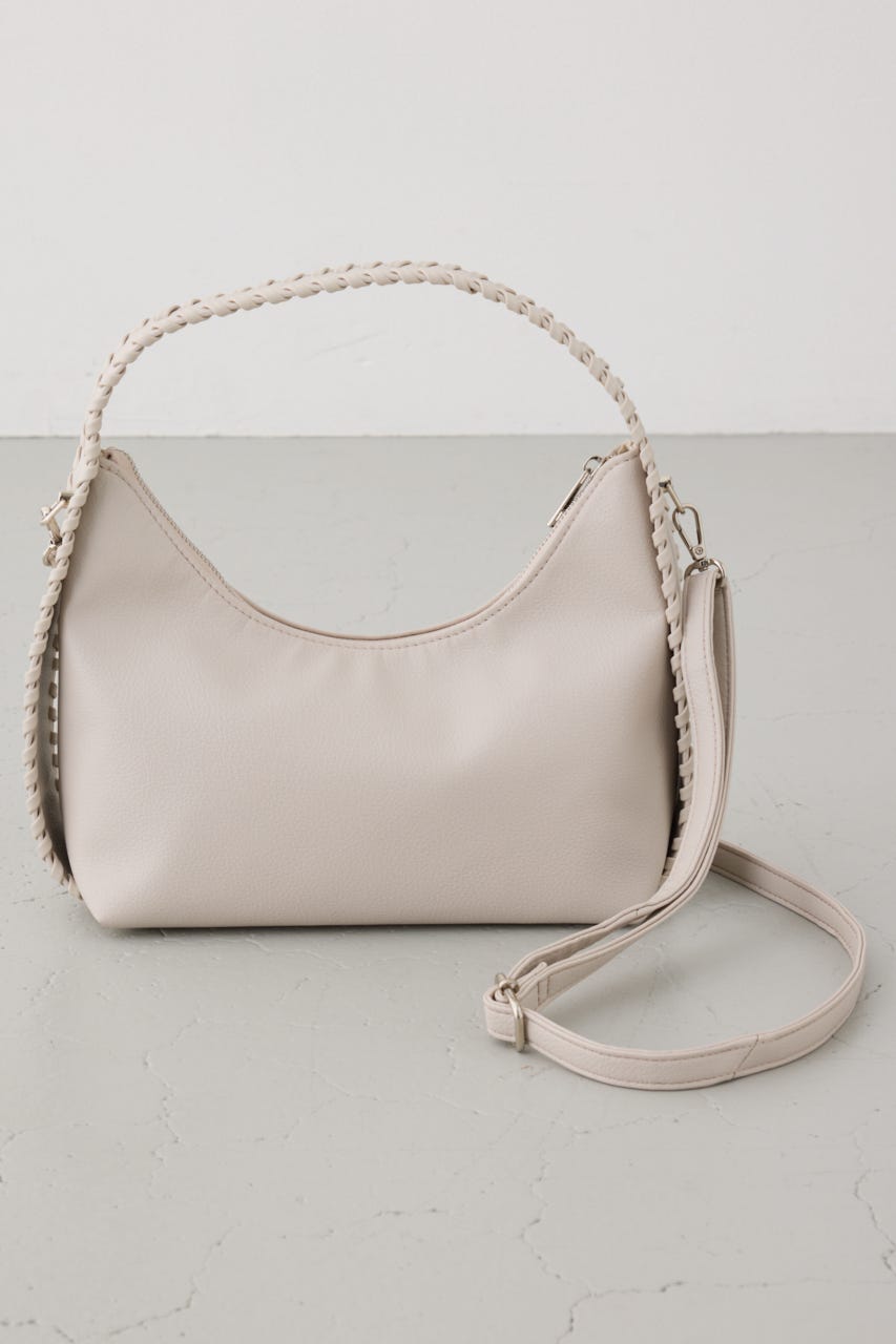 持ち手からサイドにかけた縫込みデザインがアクセントの、ハンド・ショルダーの2WAYで使えるバッグ。