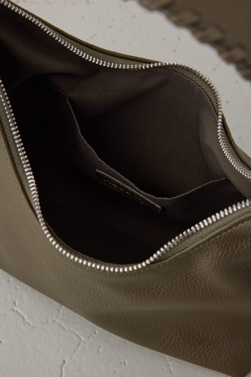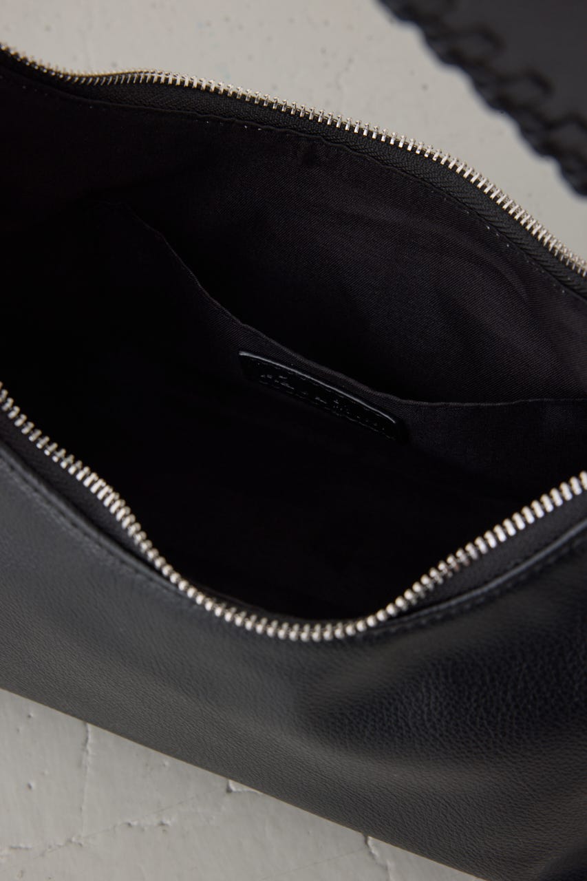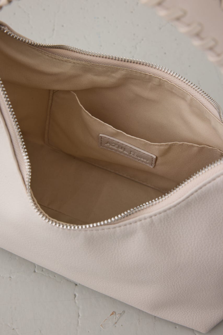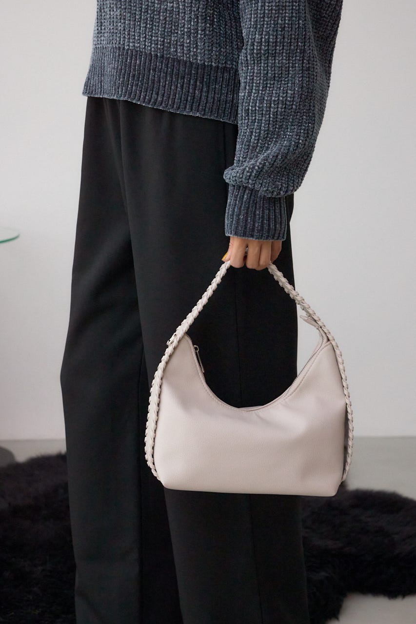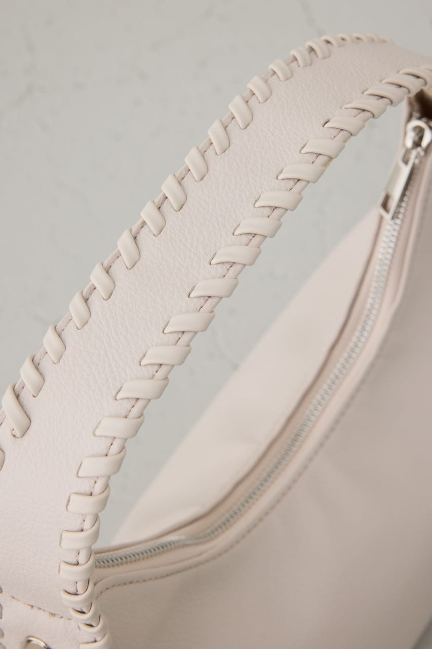 持ち手からサイドにかけた縫込みデザインがアクセントの、ハンド・ショルダーの2WAYで使えるバッグ。
