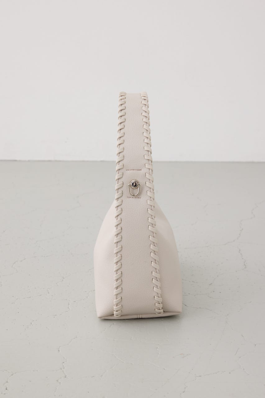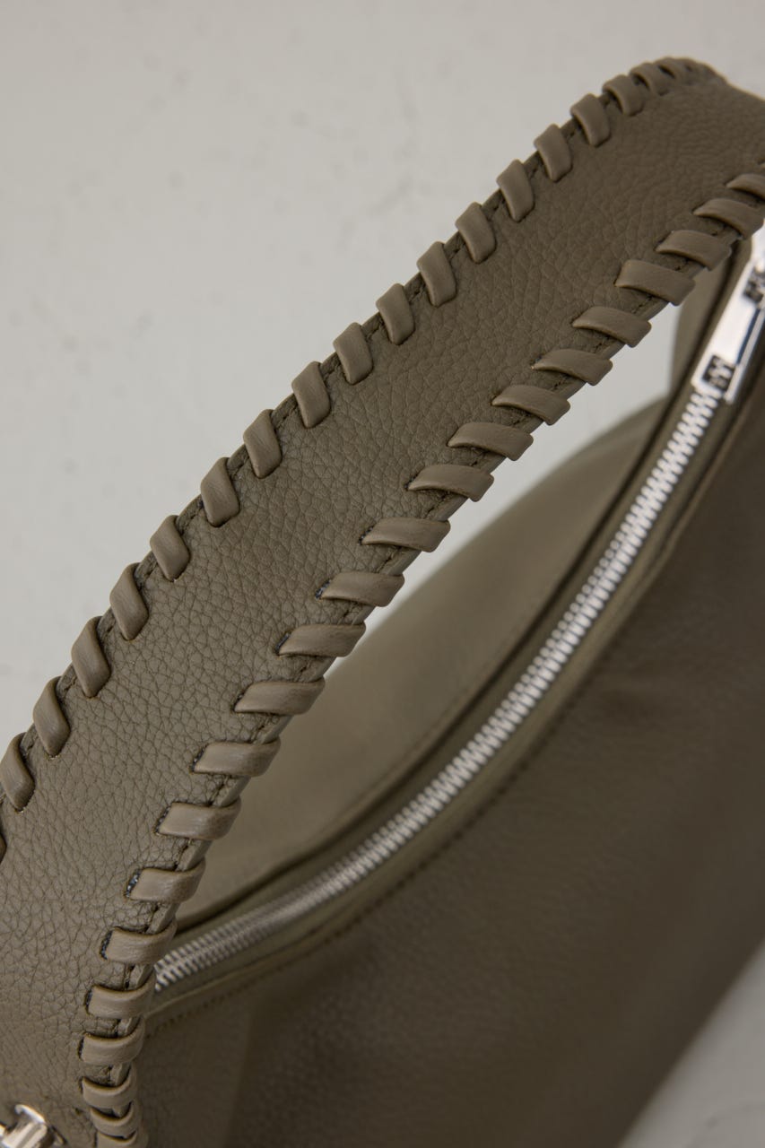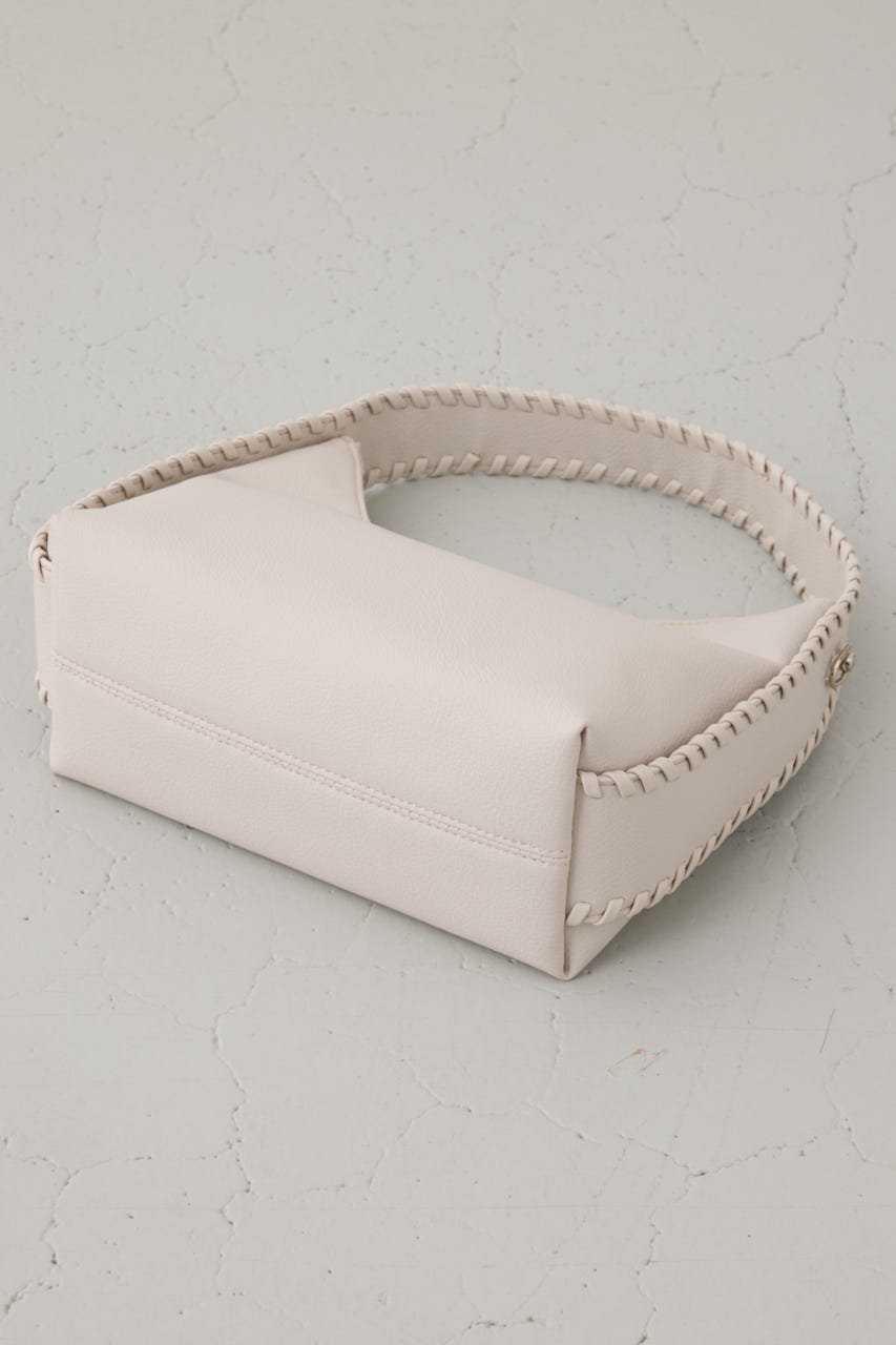 持ち手からサイドにかけたオーバーロックデザインが、さりげない個性をプラス。