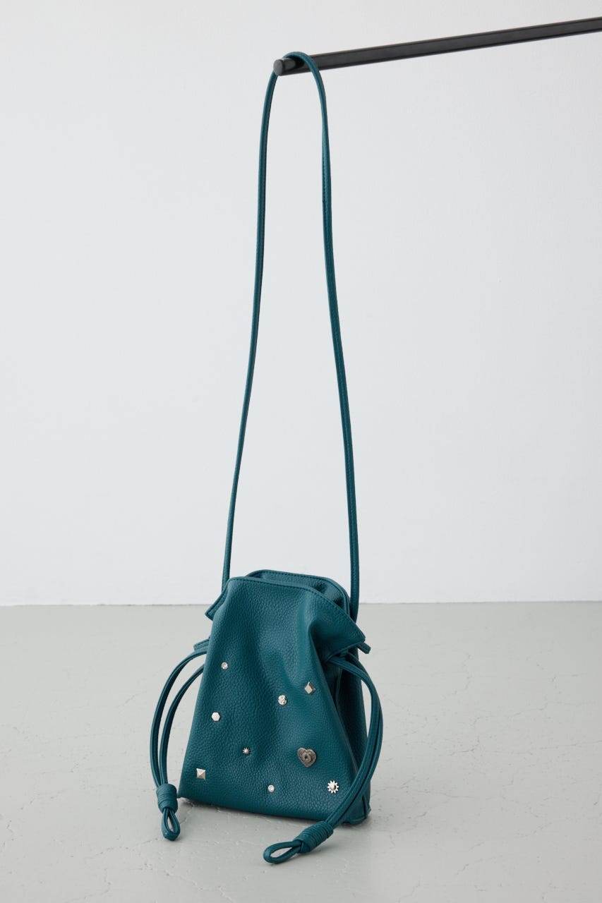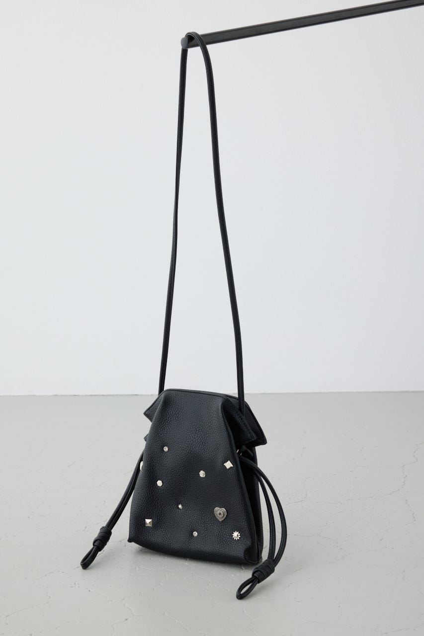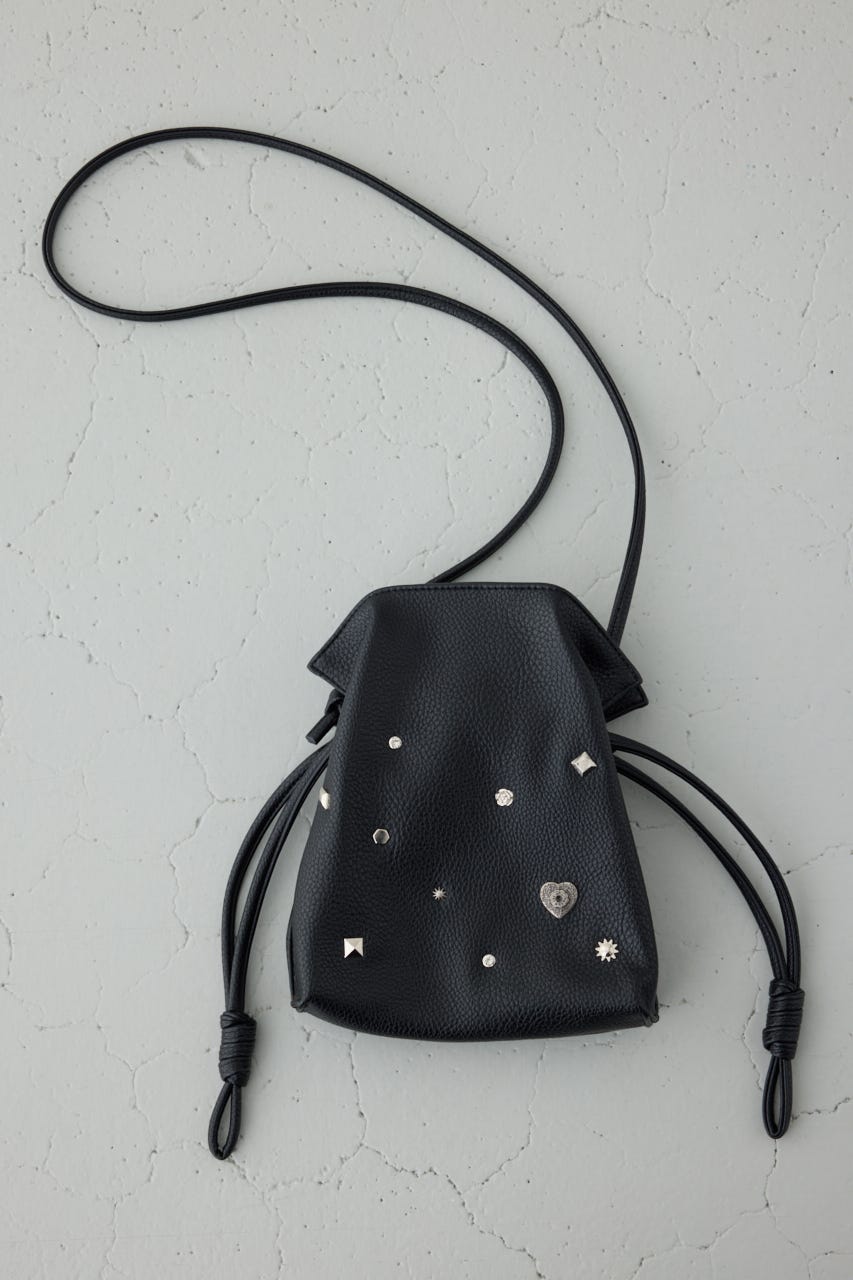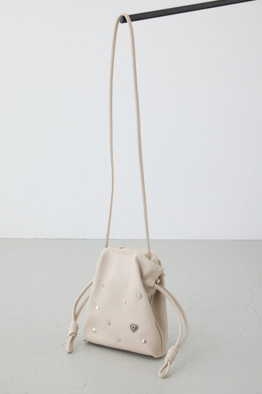小ぶりながらもスタッズが光る、コーディネートのアクセントになる巾着ショルダーバッグ。