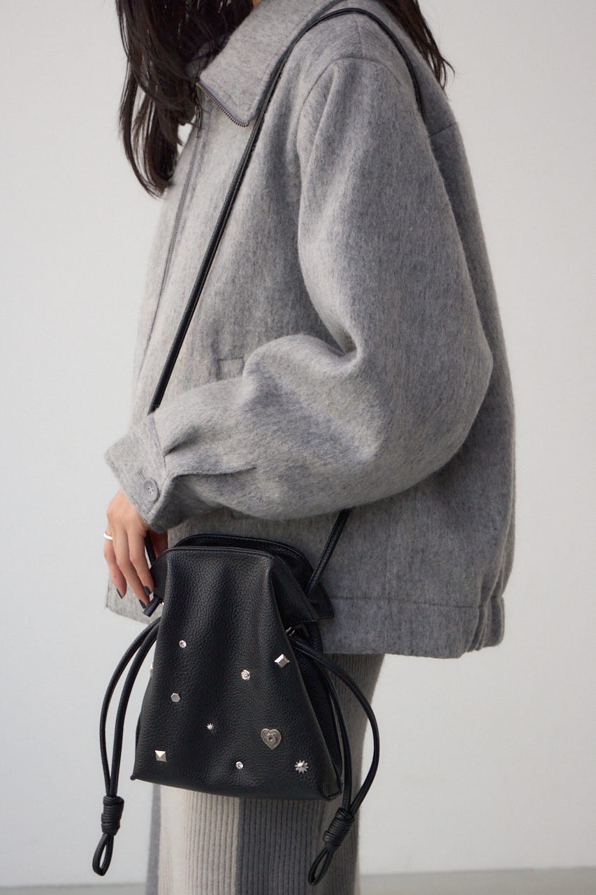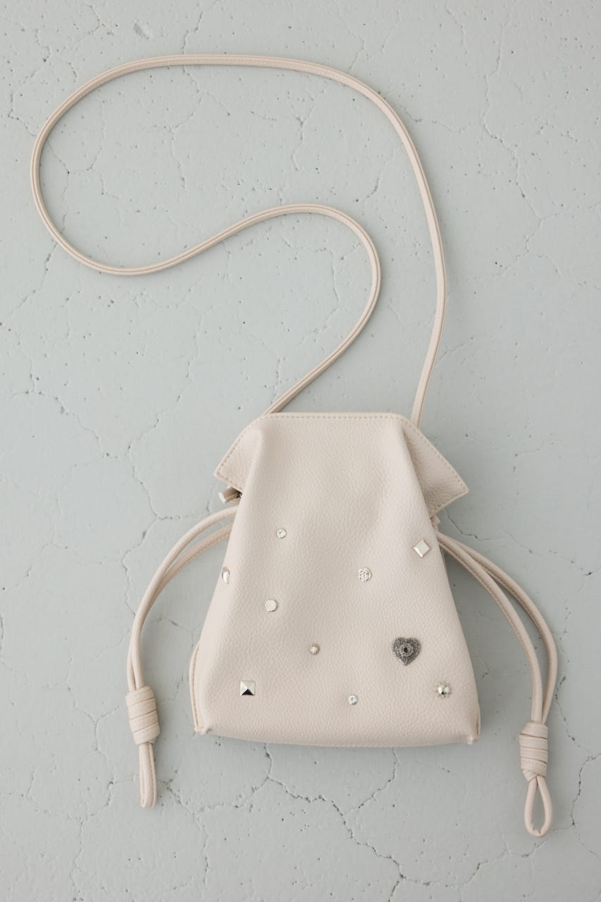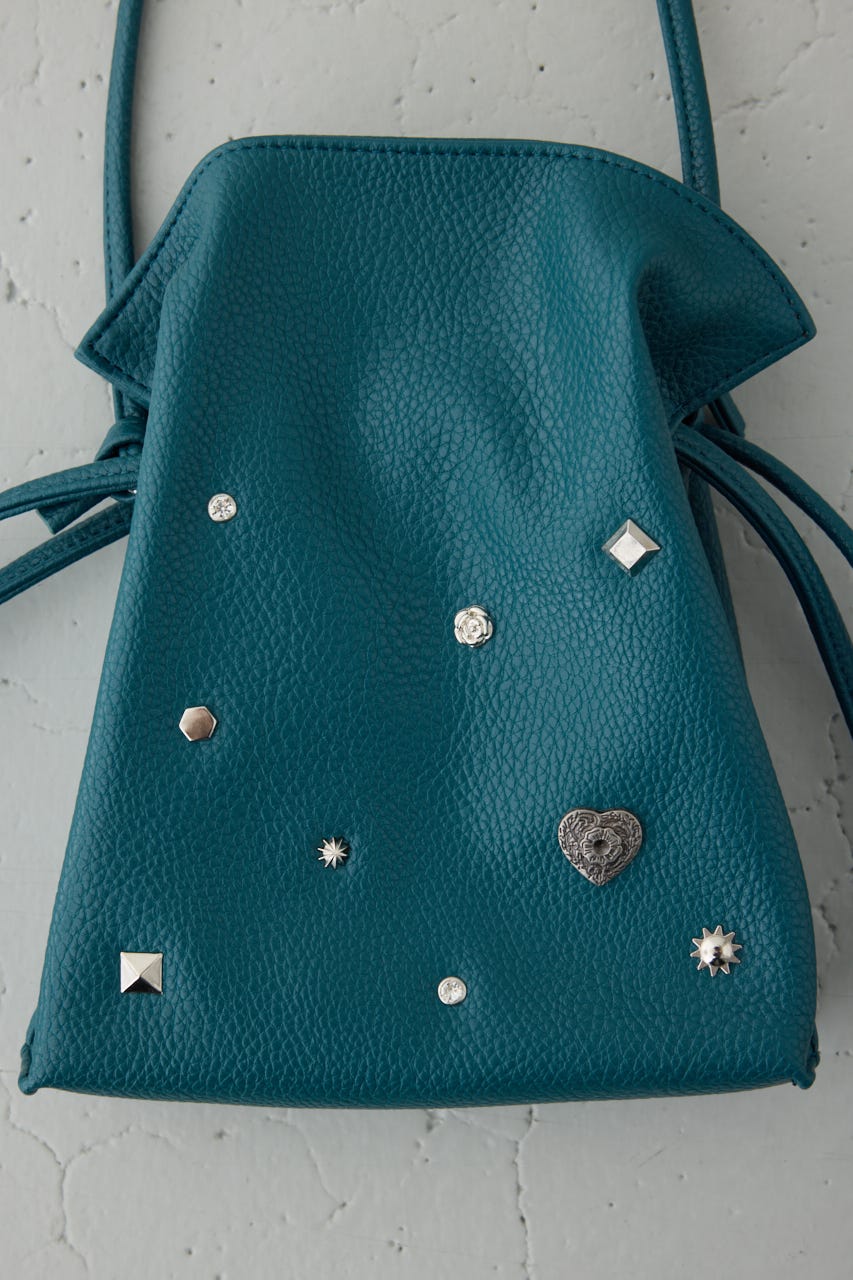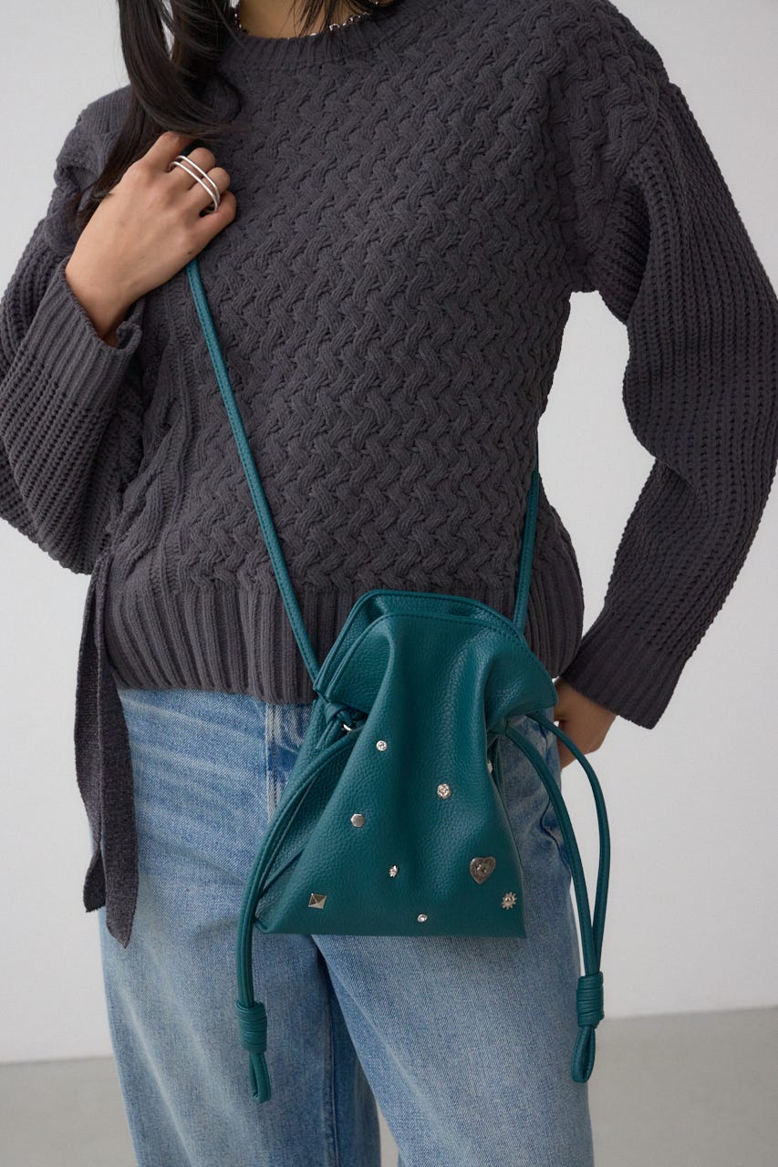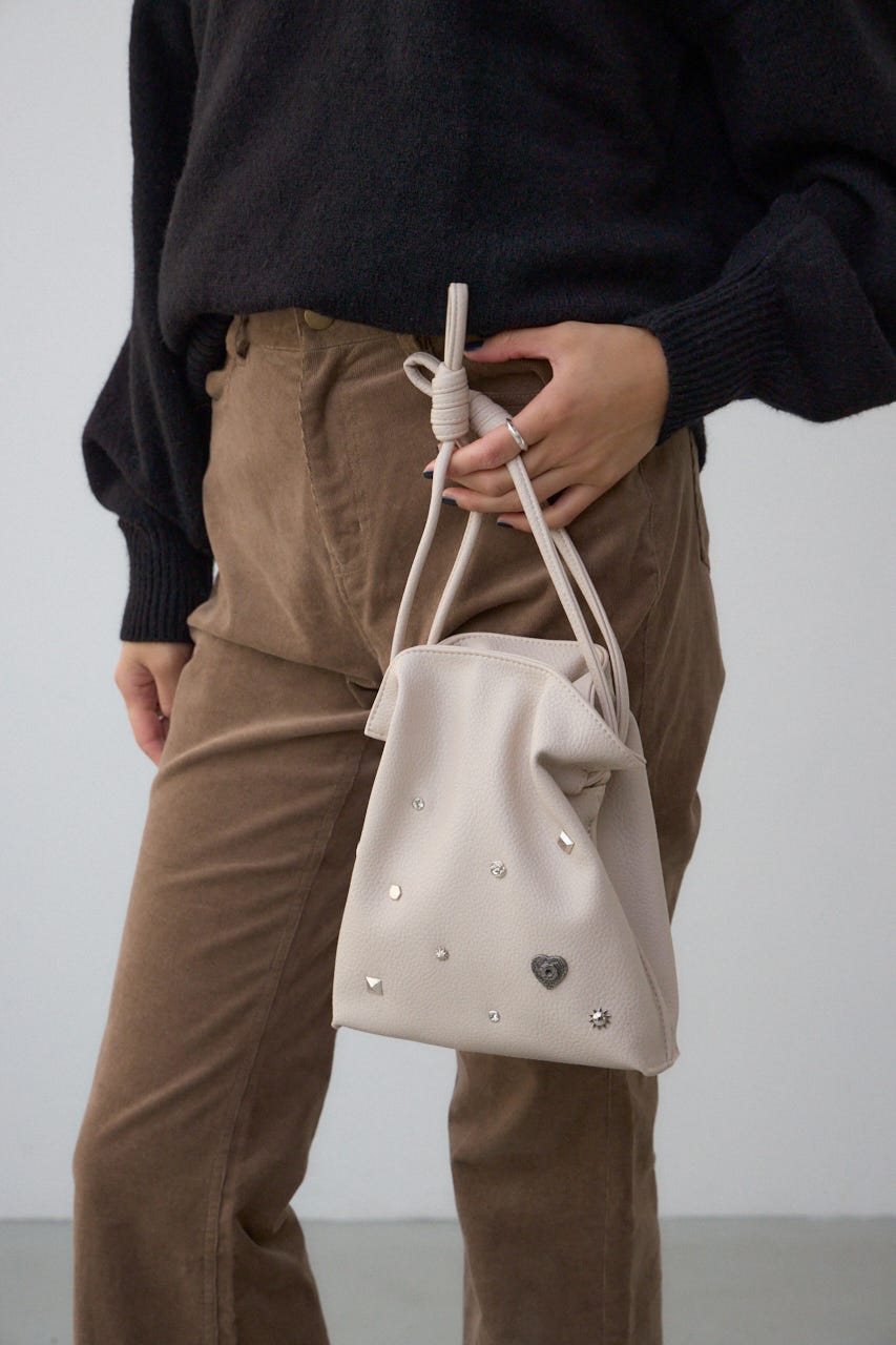 小ぶりながらもスタッズが光る、コーディネートのアクセントになる巾着ショルダーバッグ。