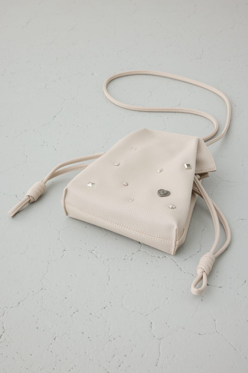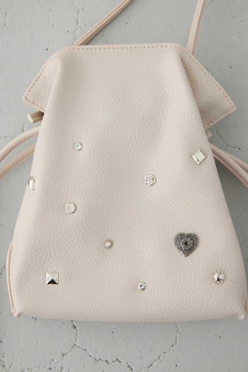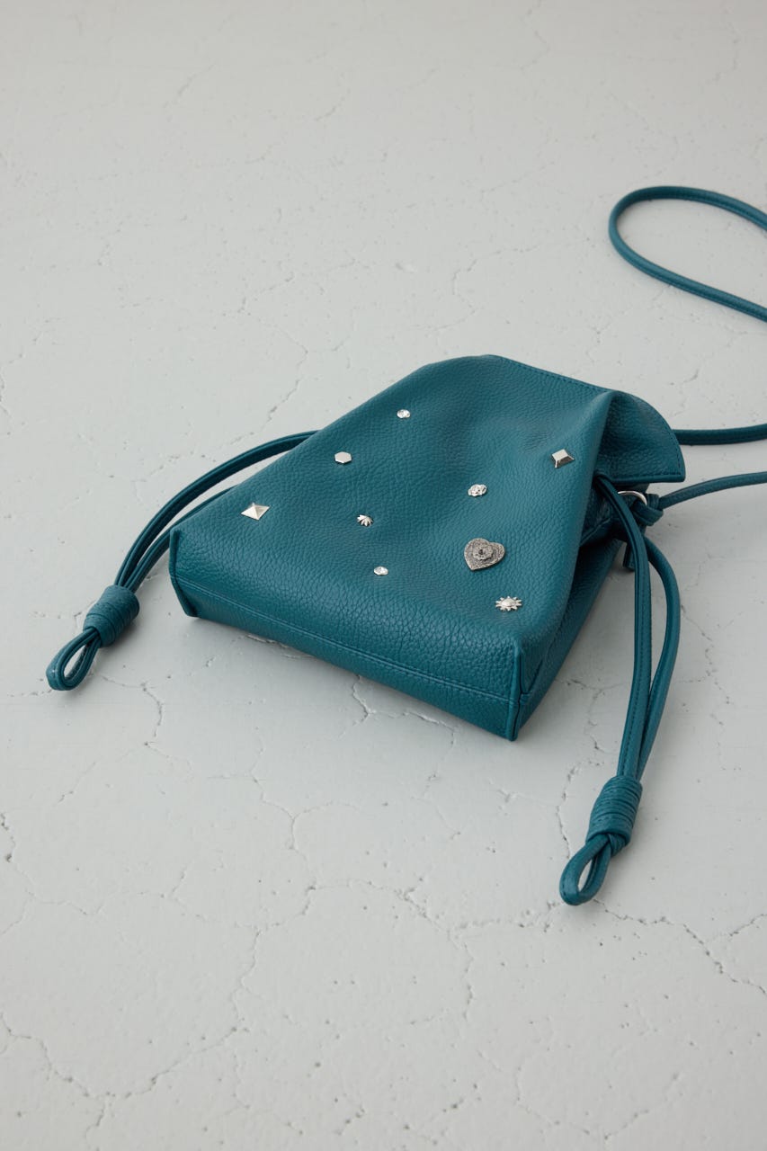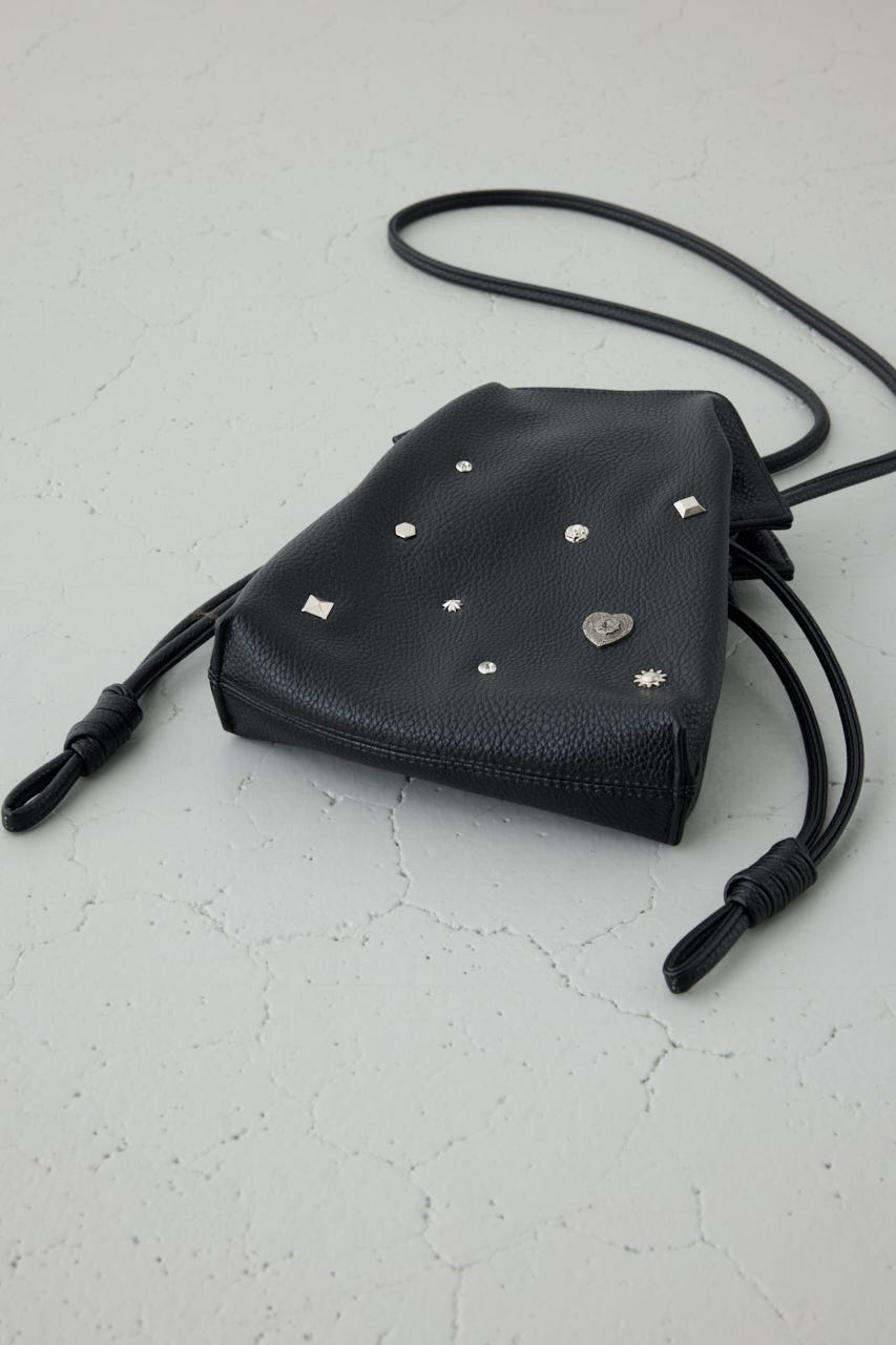 小ぶりながらもスタッズが光る、コーディネートのアクセントになる巾着ショルダーバッグ。
