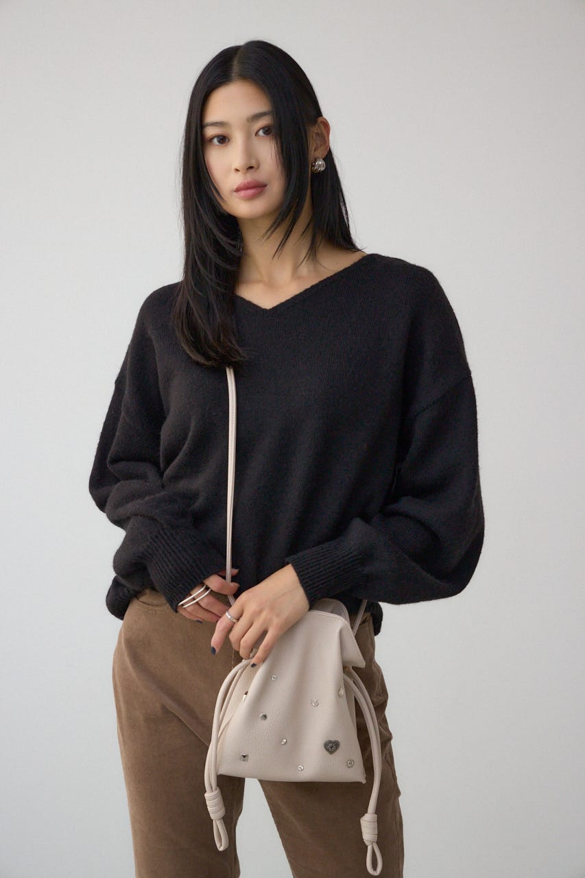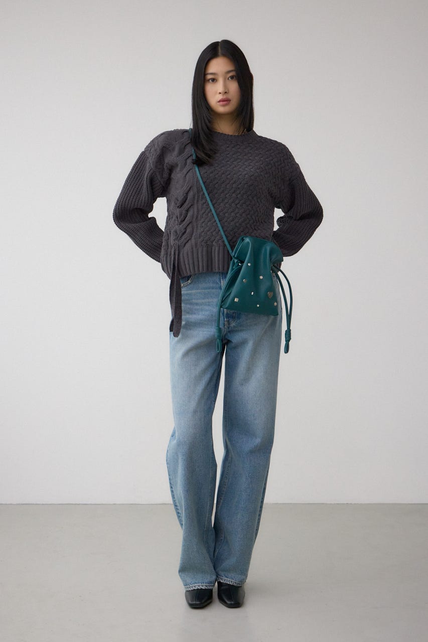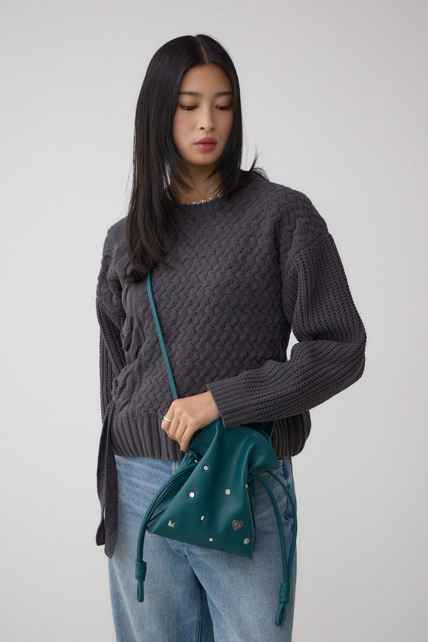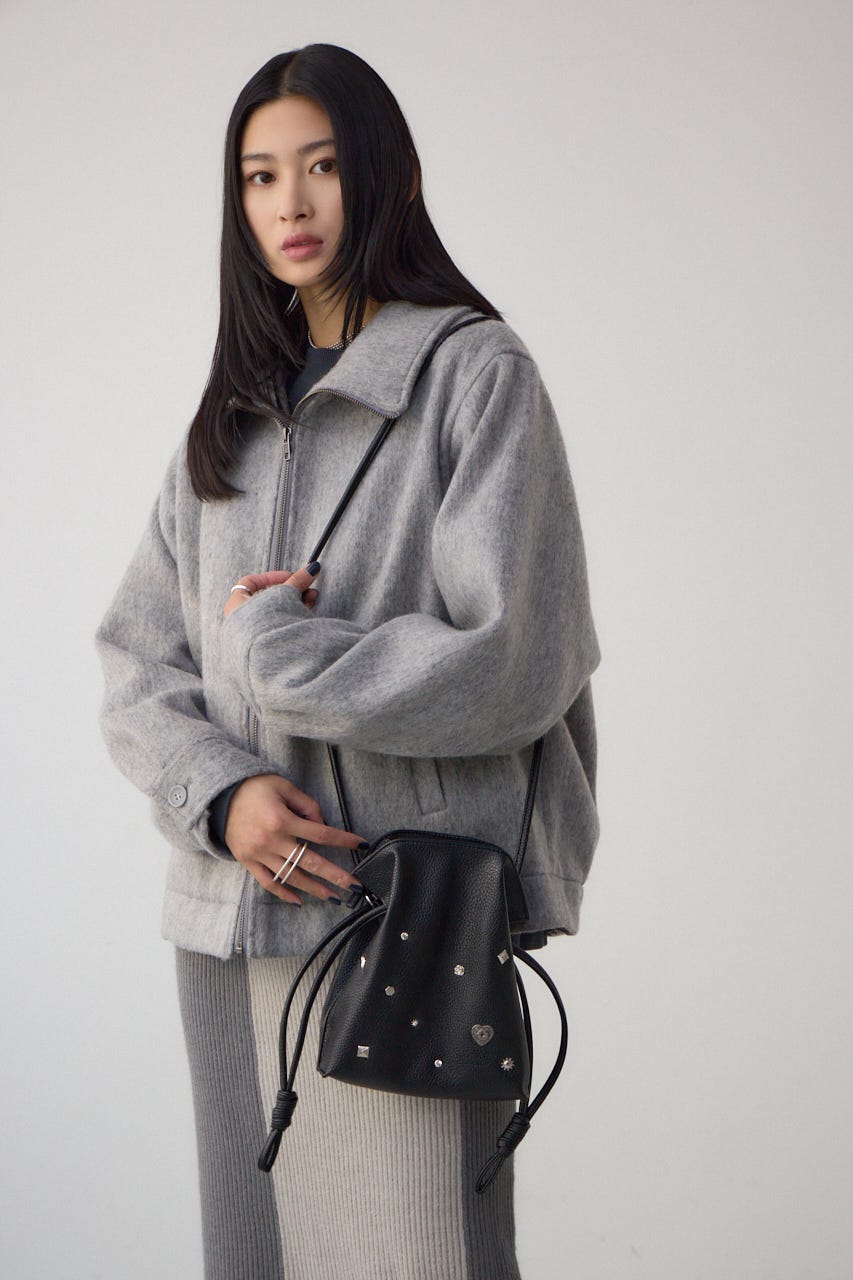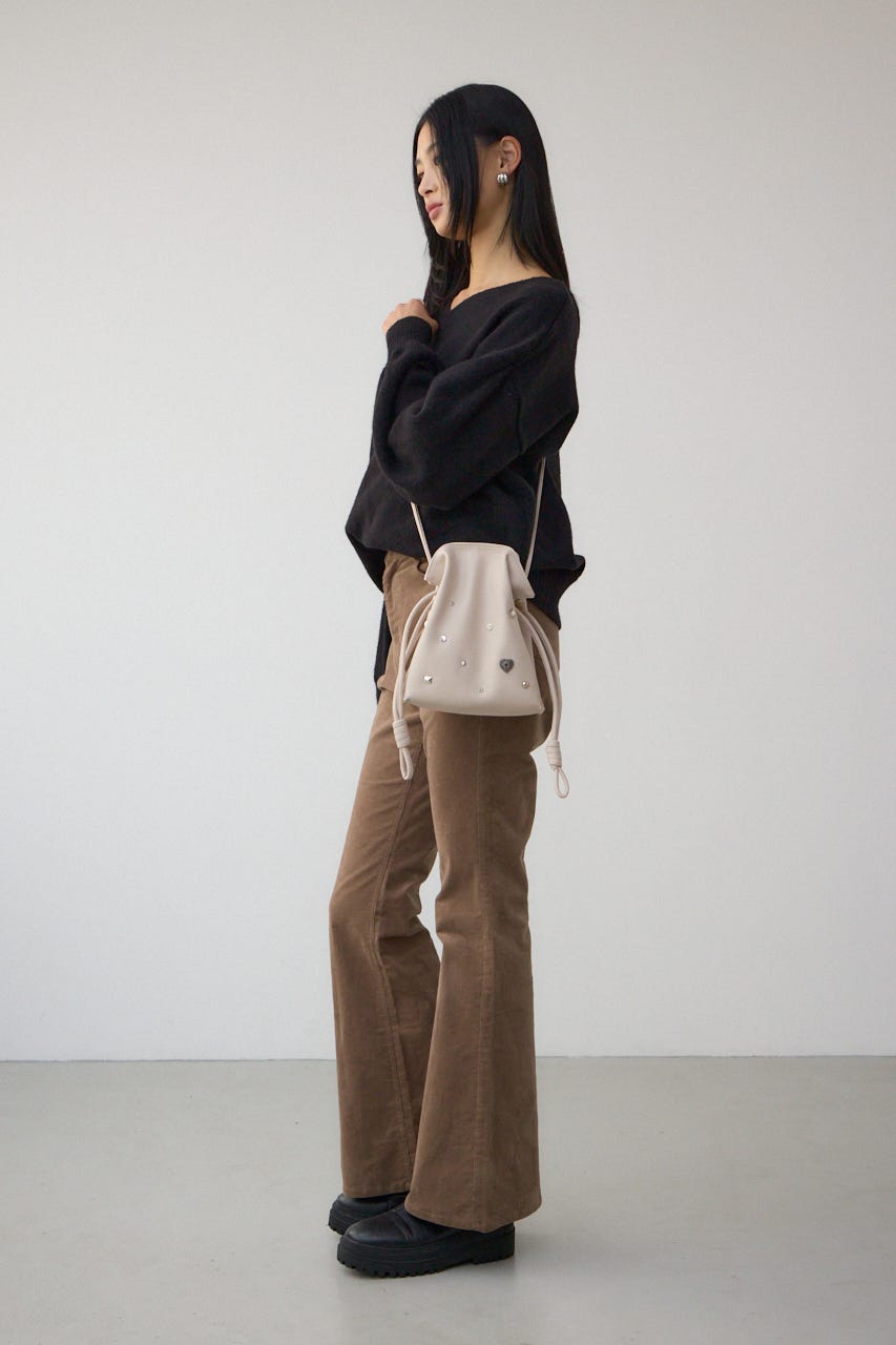 小ぶりながらもスタッズが光る、コーディネートのアクセントになる巾着ショルダーバッグ。