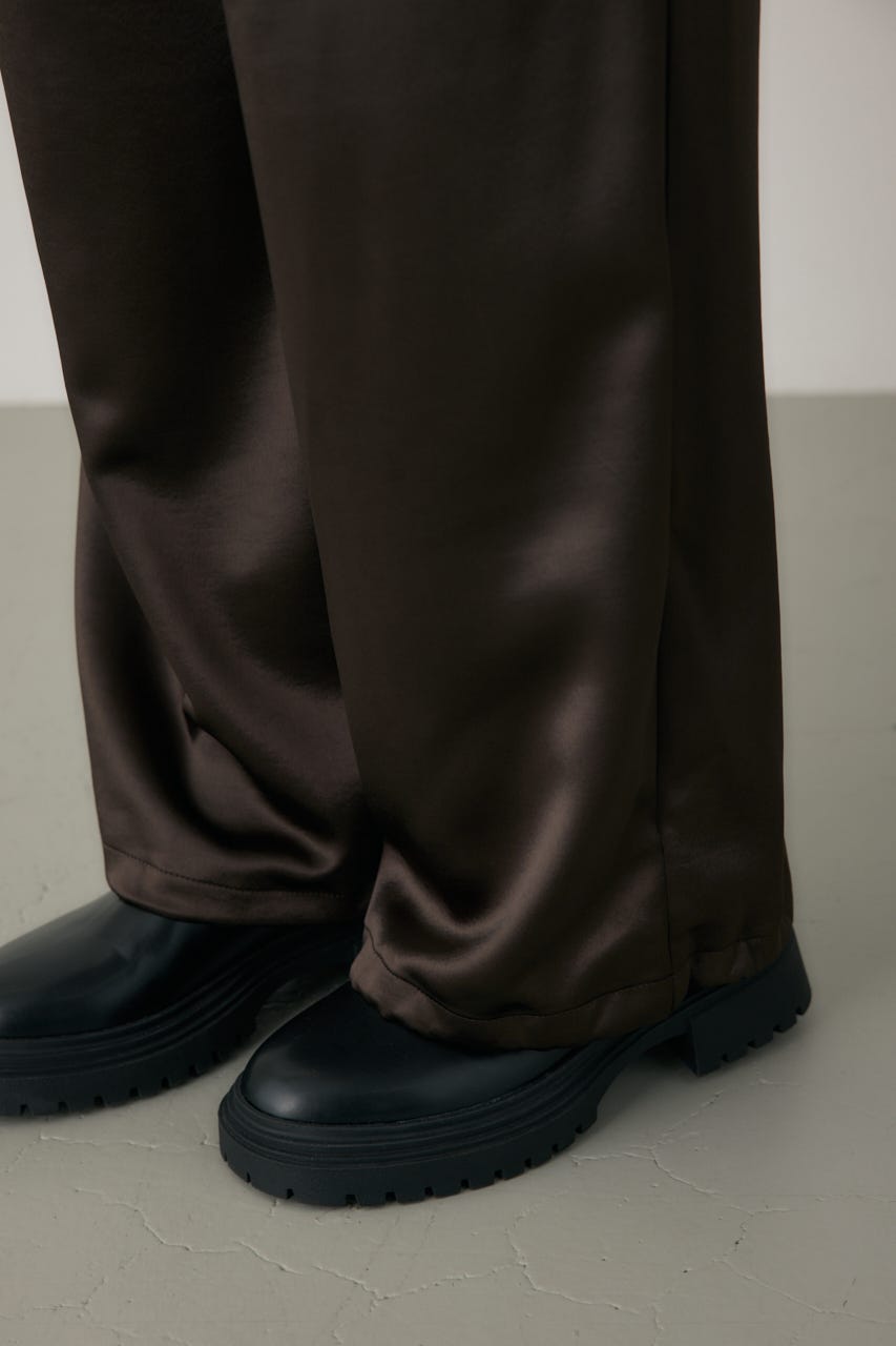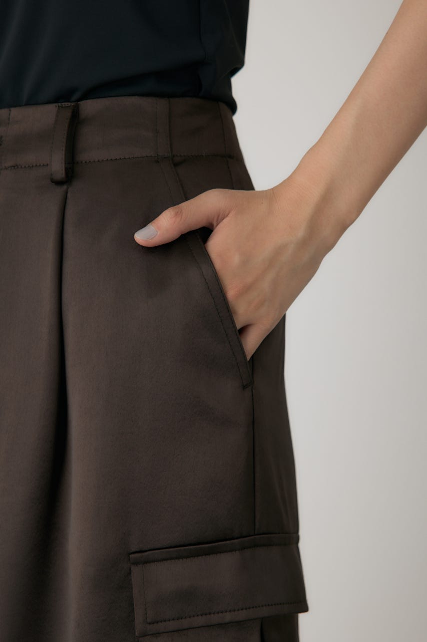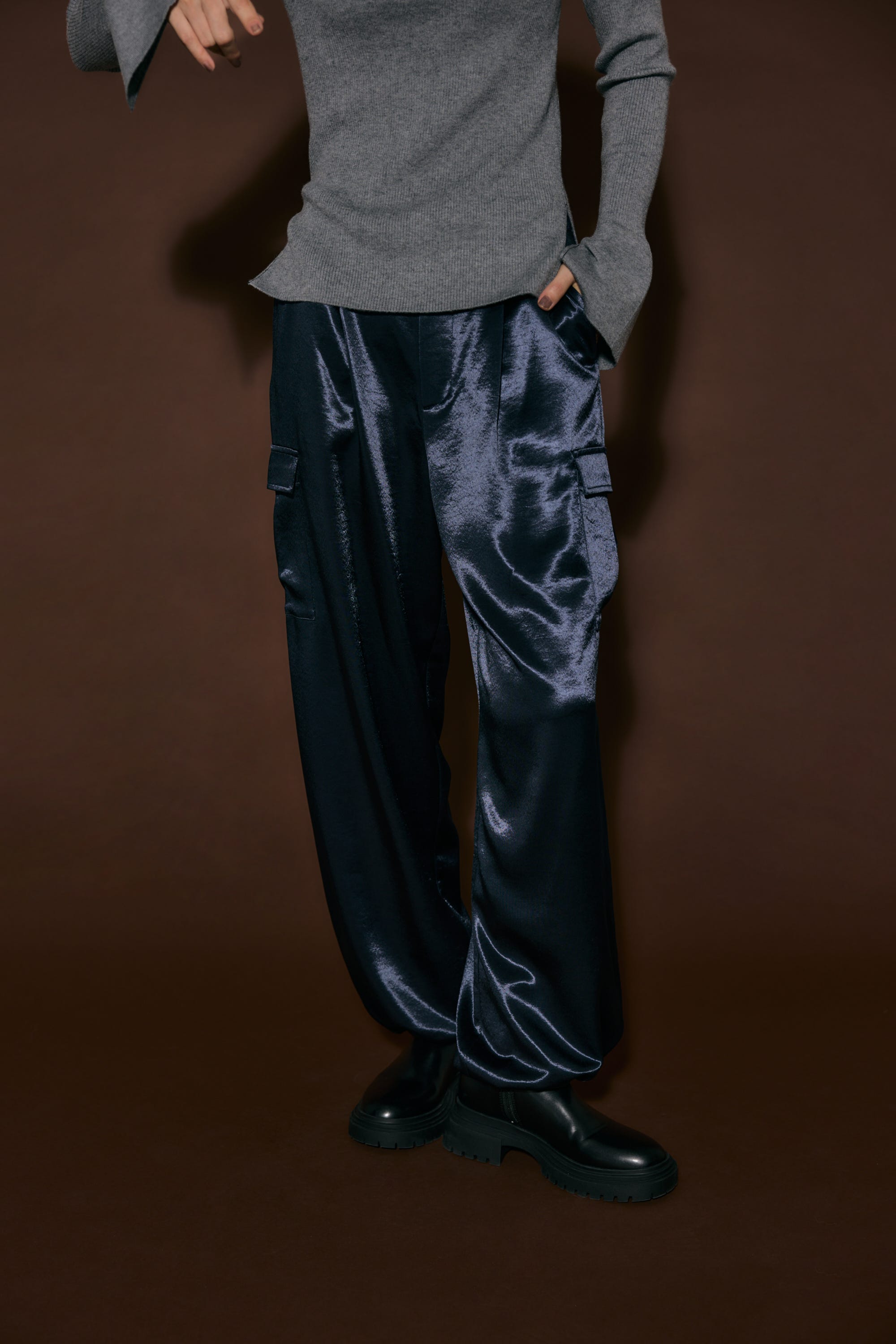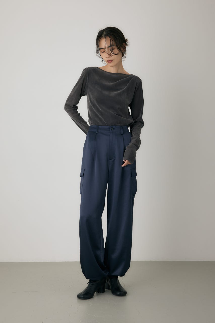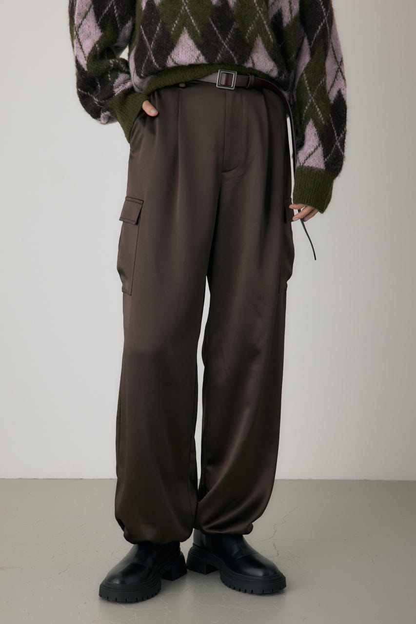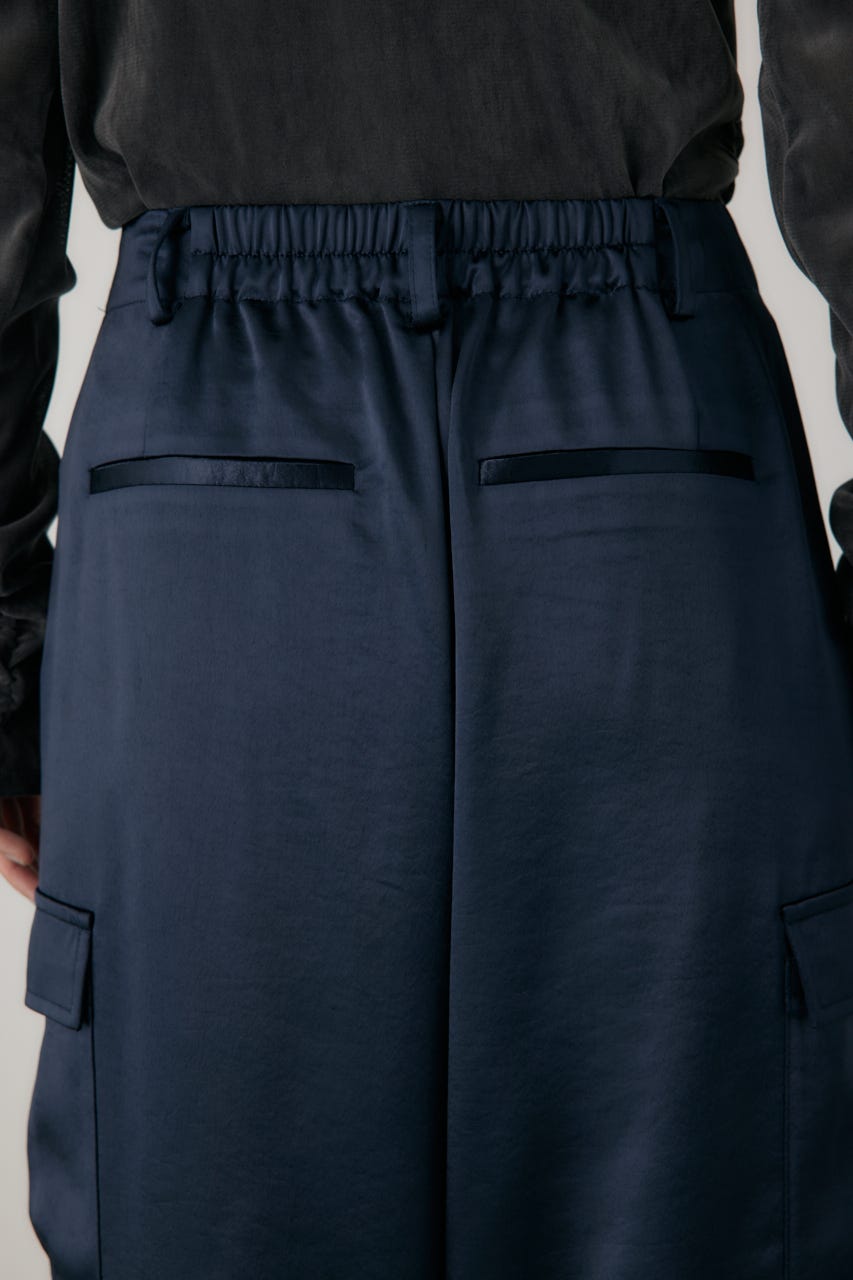 サテン地とのコントラストを楽しめるニットとのコーディネートがおすすめ。