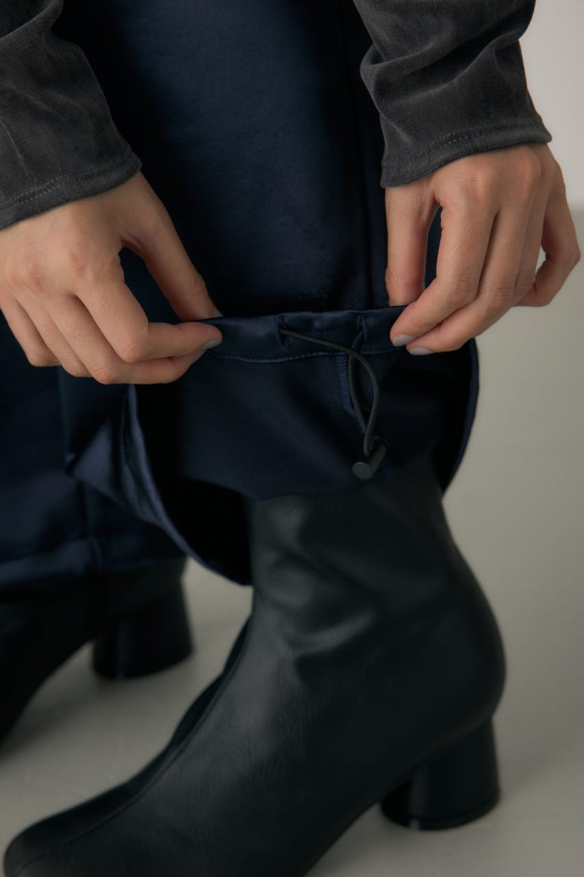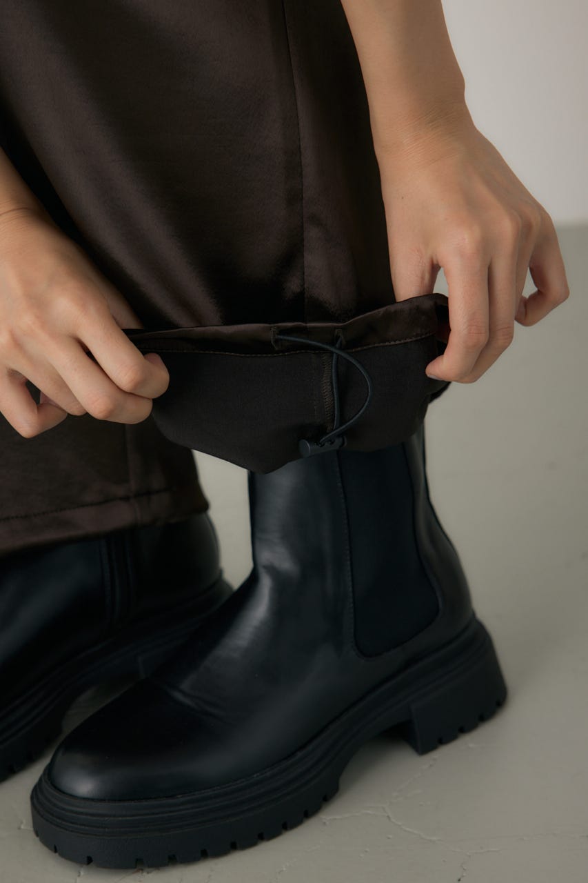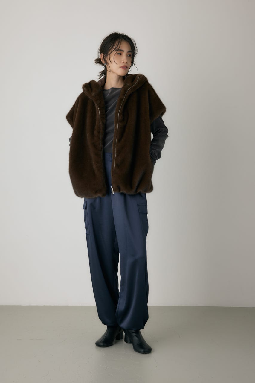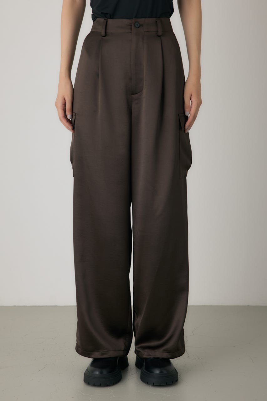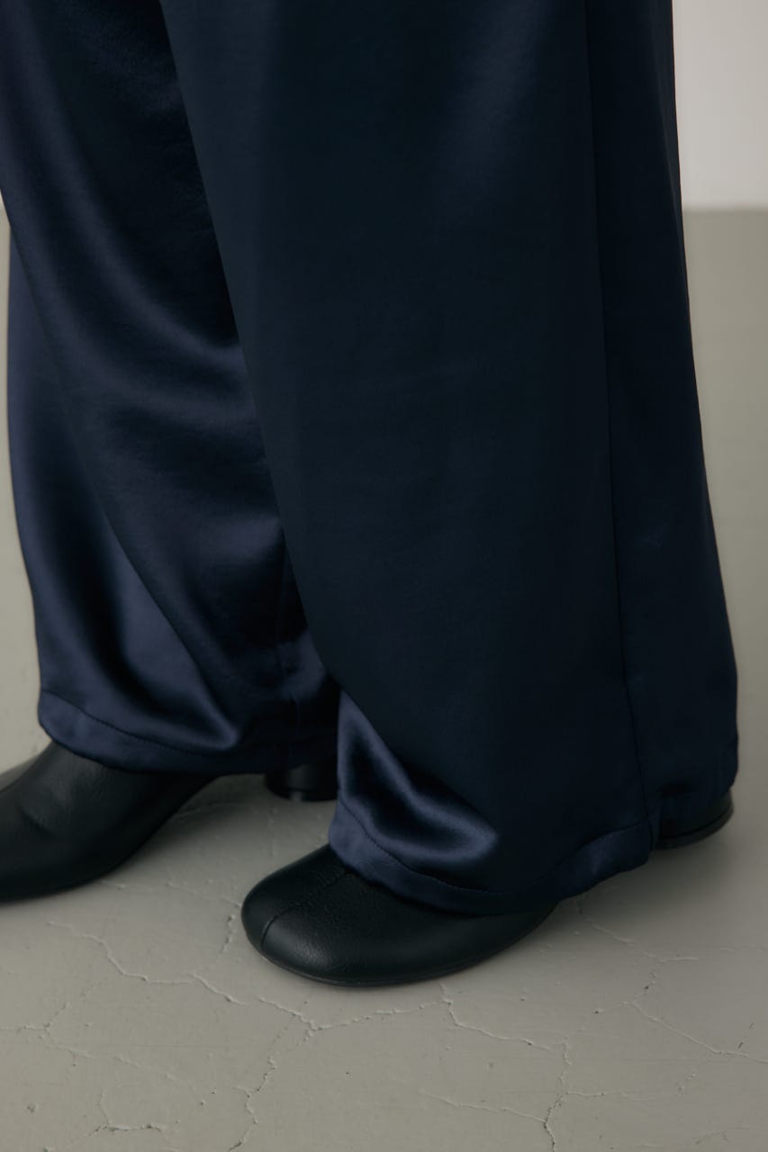 サテン地とのコントラストを楽しめるニットとのコーディネートがおすすめ。