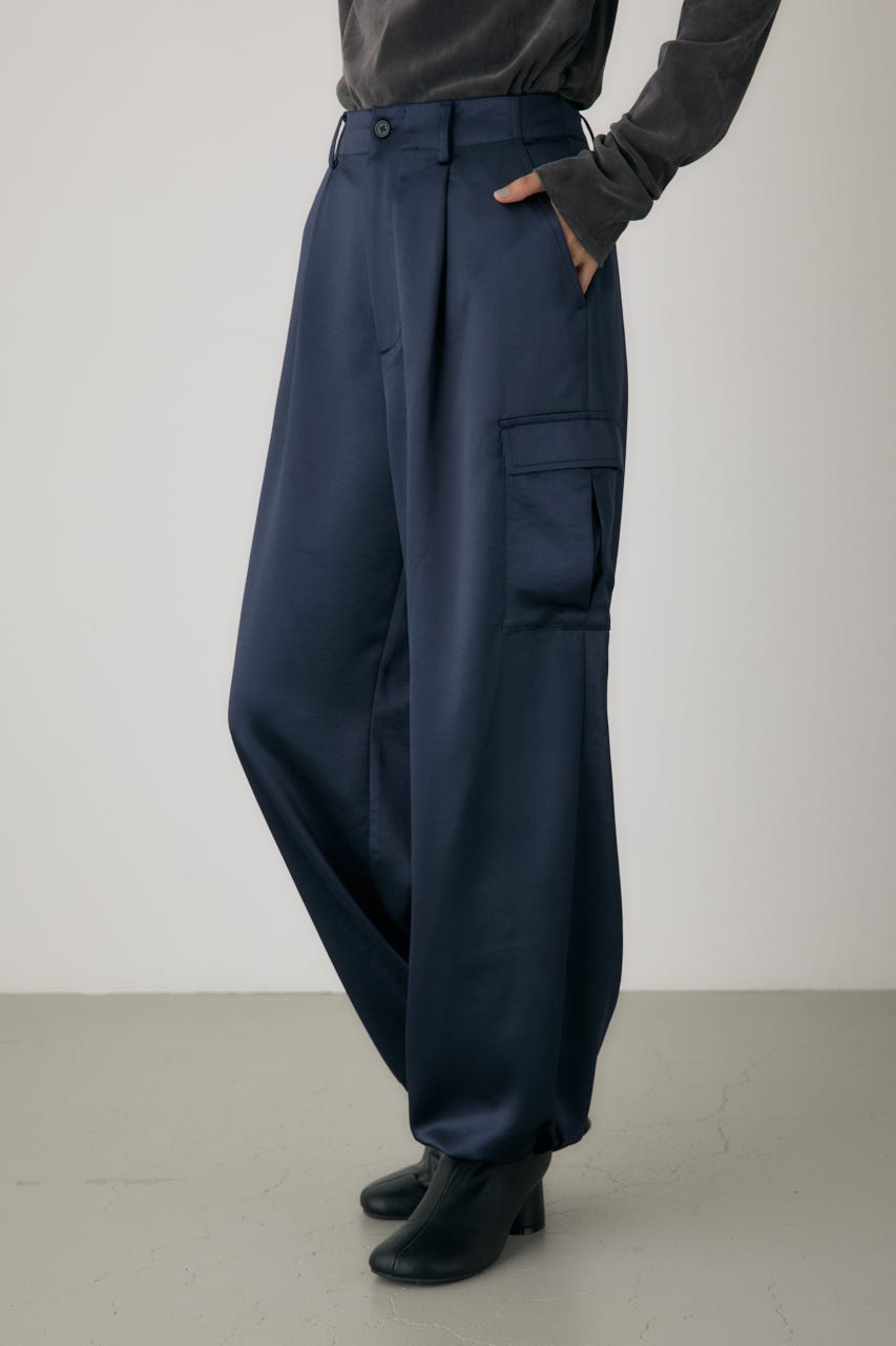 カジュアルなワークパンツもキレイな素材で作ることで、大人も着やすいアイテムになっています。