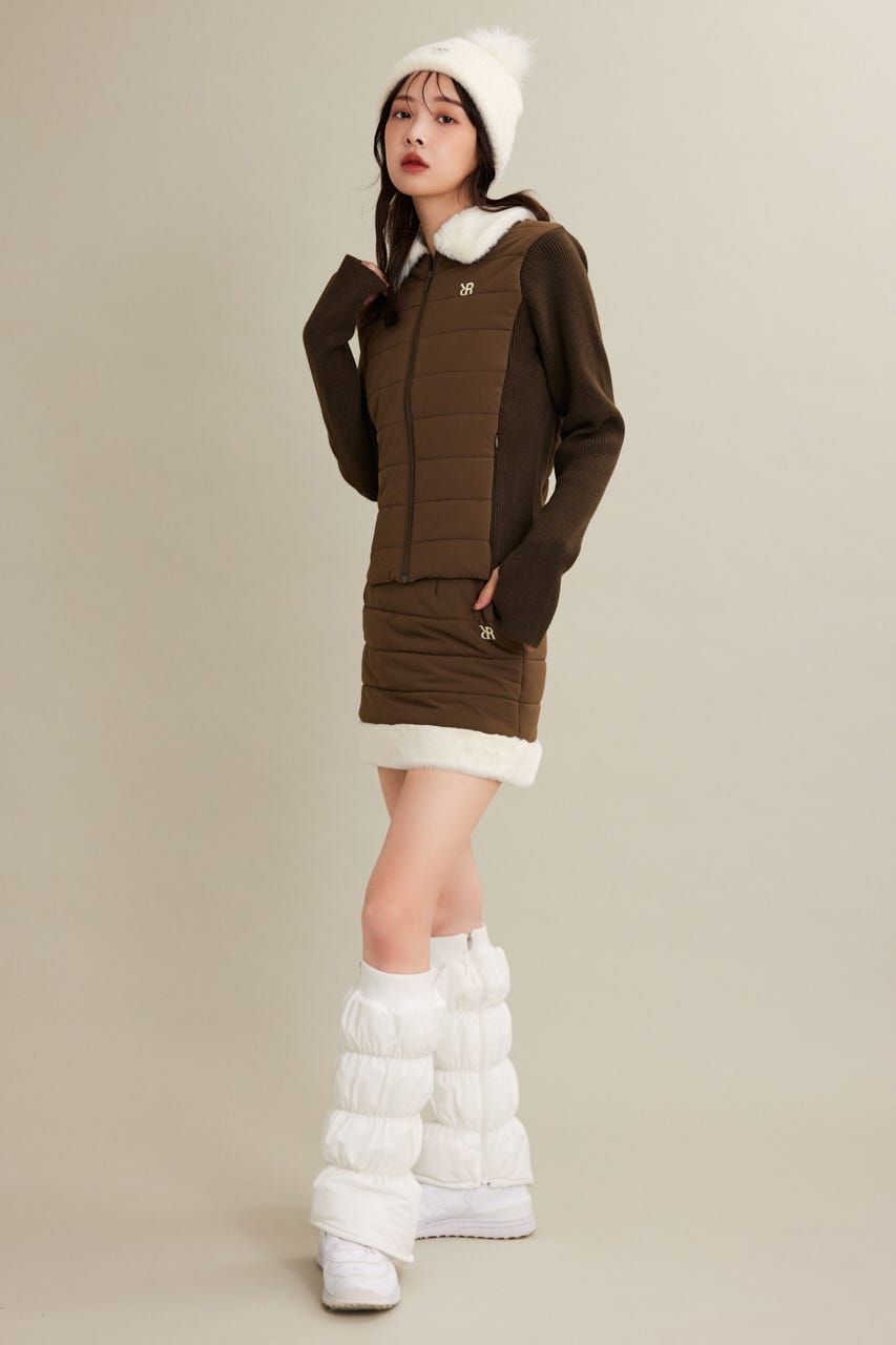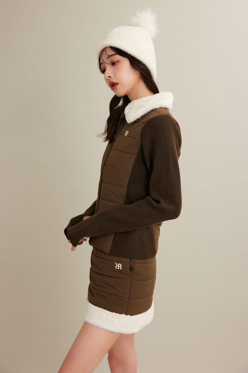 【キルティング部分】(表地)ナイロン:91ポリウレタン:9(中わた)ポリエステル:100(裏地)ポリエステル:100【ニット部分】アクリル:59ポリエステル:23ナイロン:18【フェイクファー部分】ポリエステル:100