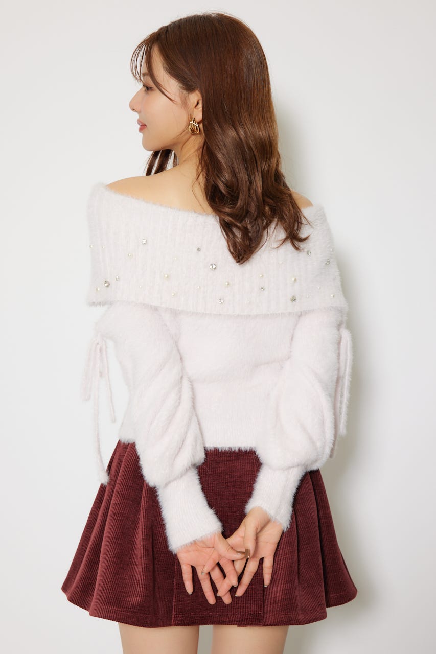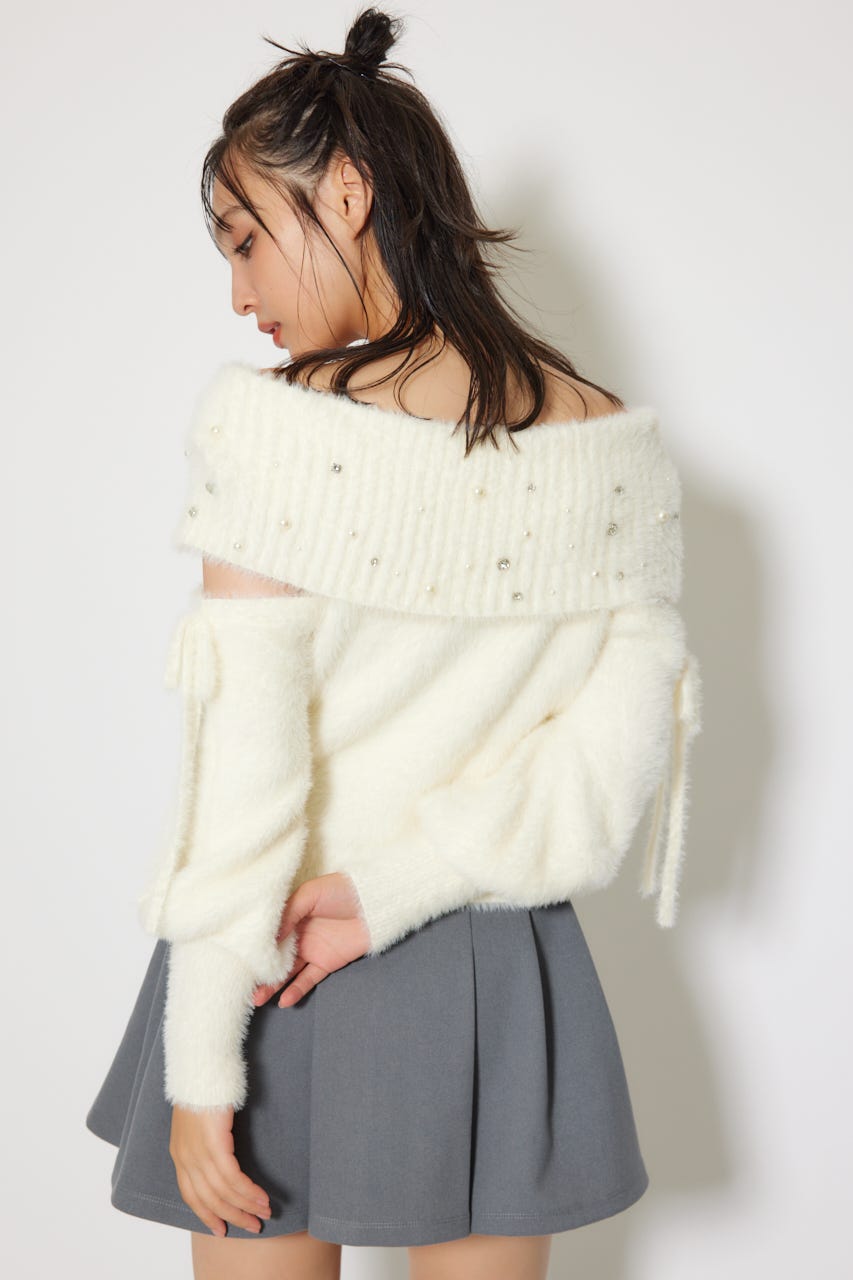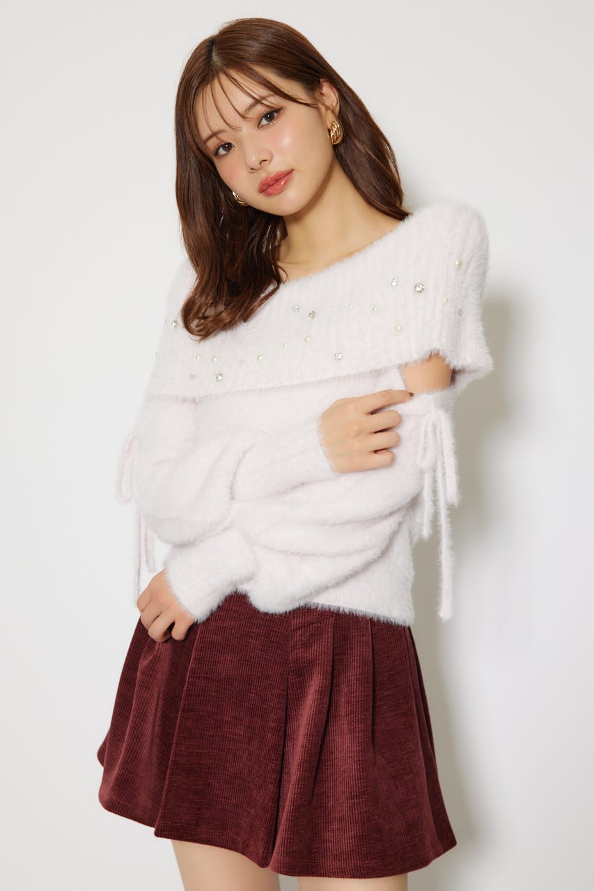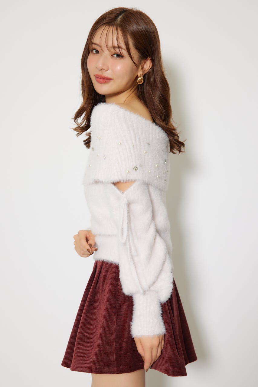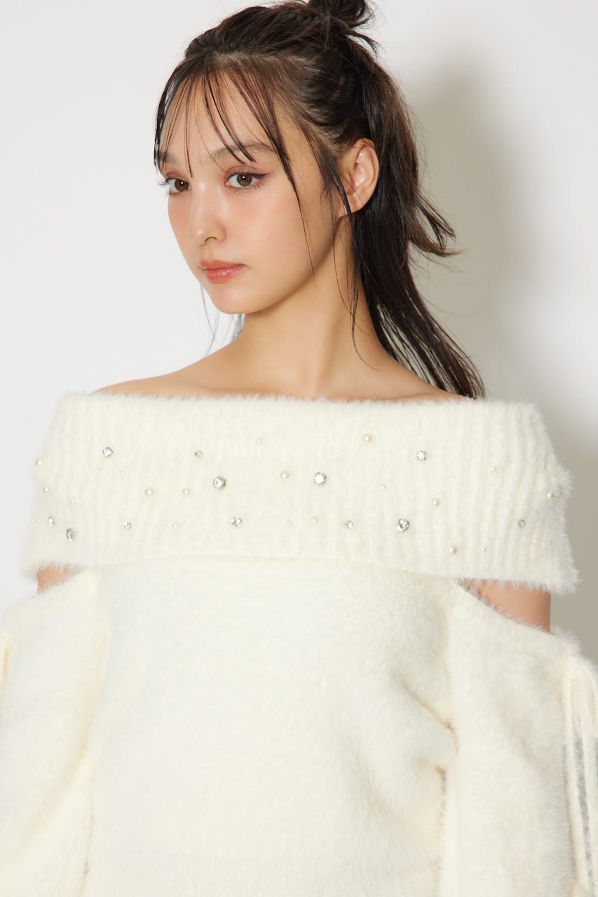 ※お届け時期:2025年12月上旬以降 【華やかなボリューミーで温かみのあるシャギーニットにパールとビジューを贅沢にちりばめました】