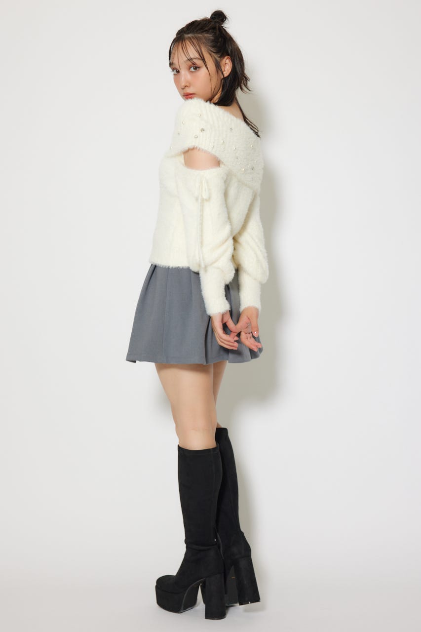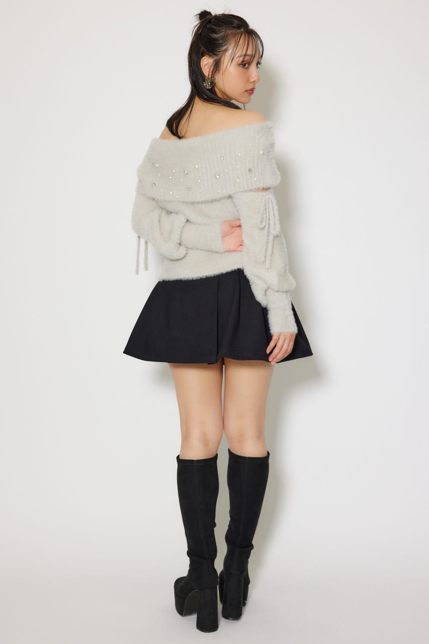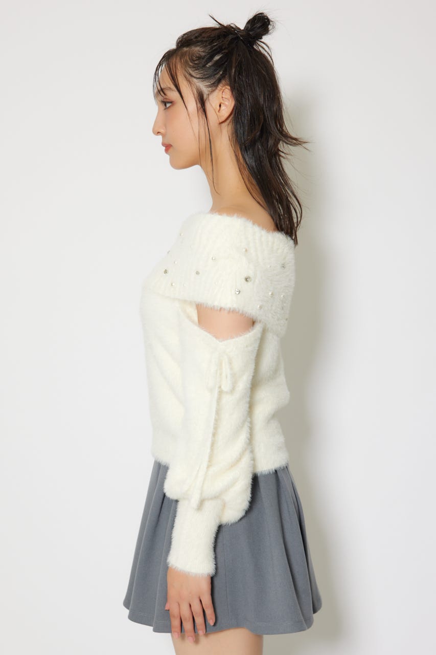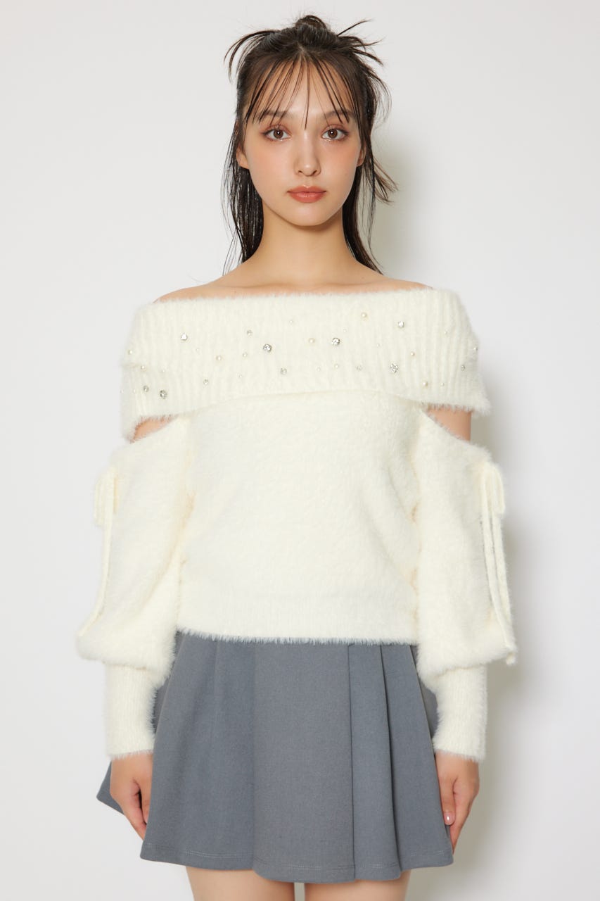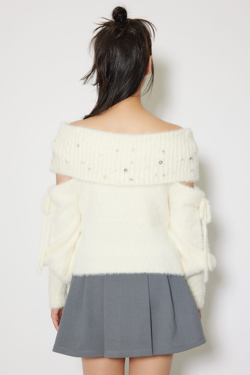 ※お届け時期:2025年12月上旬以降 【華やかなボリューミーで温かみのあるシャギーニットにパールとビジューを贅沢にちりばめました】