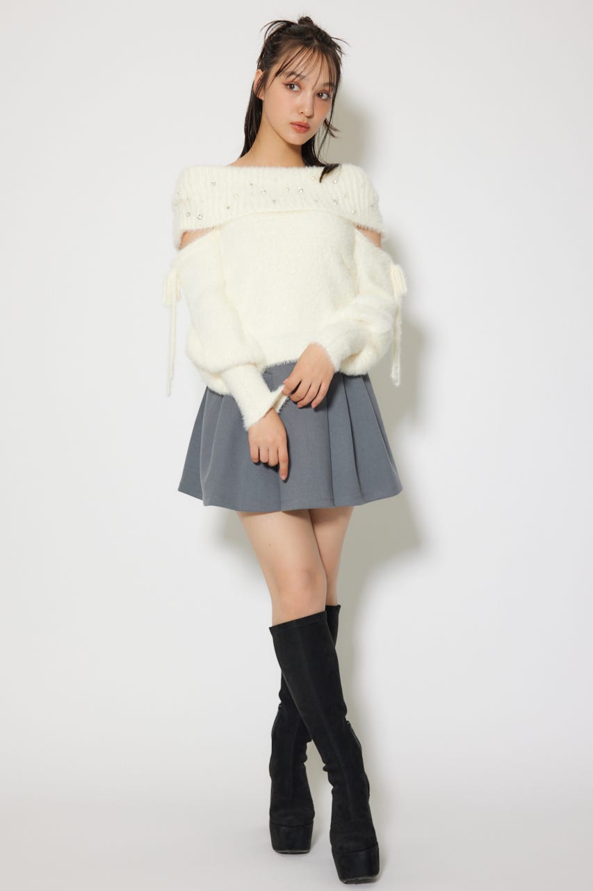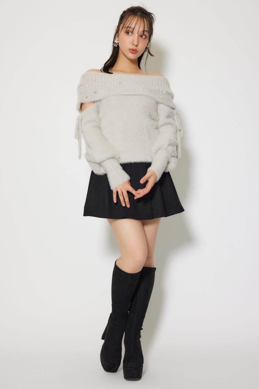 オフショルシャギーレディーニットトップス