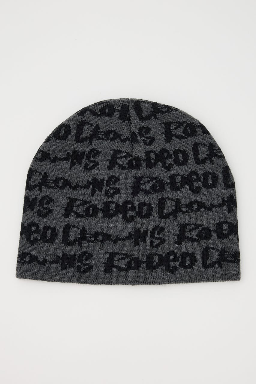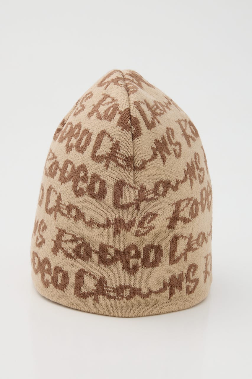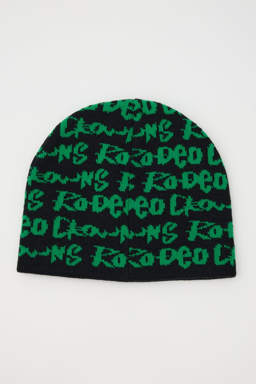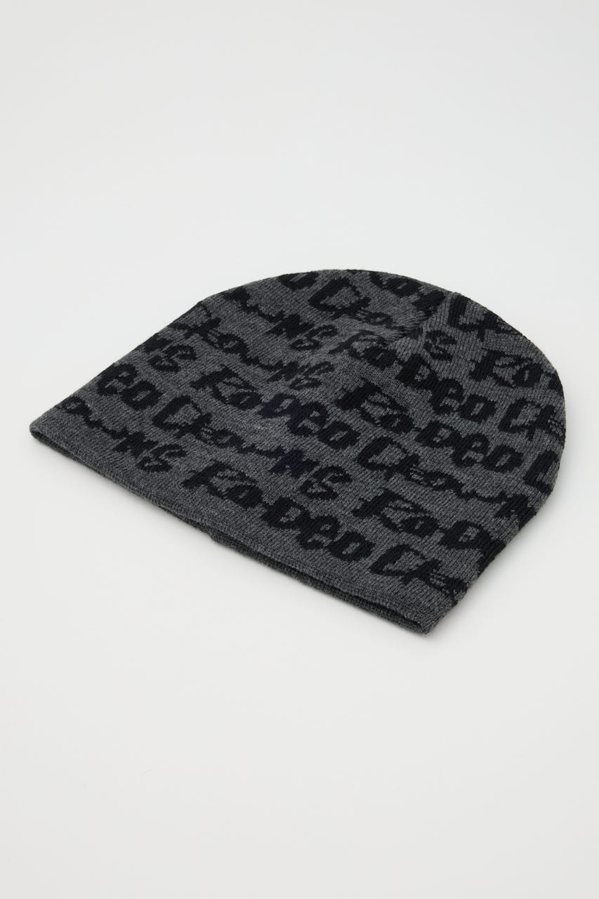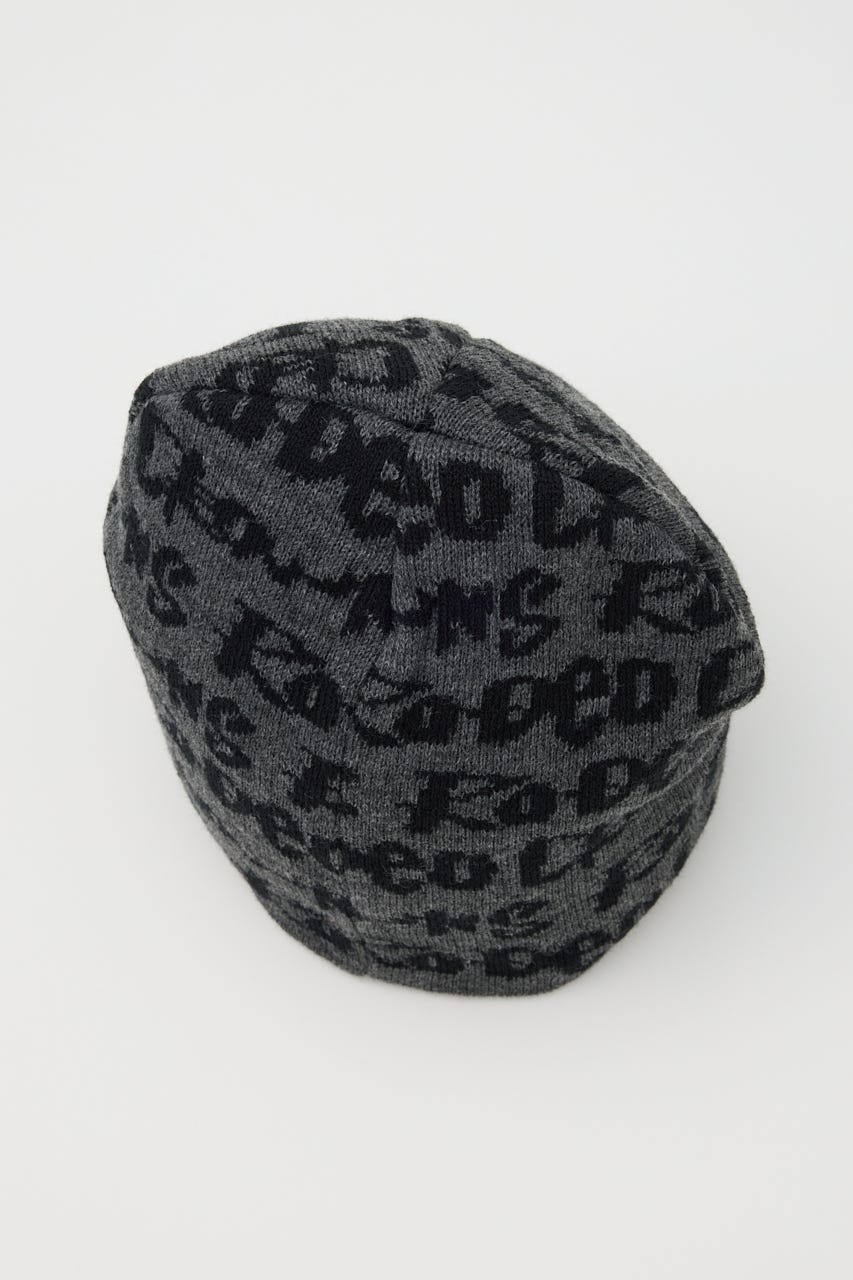 ペイントのような総柄ロゴデザインをジャガードしたニットビーニー。