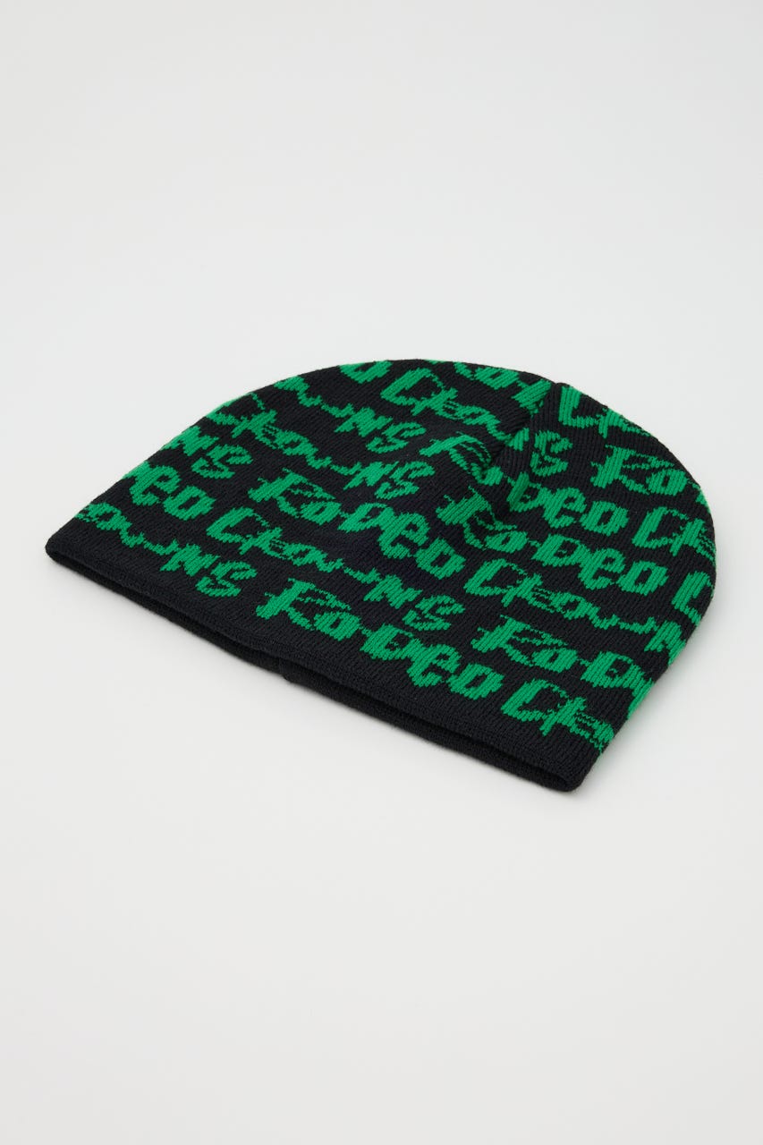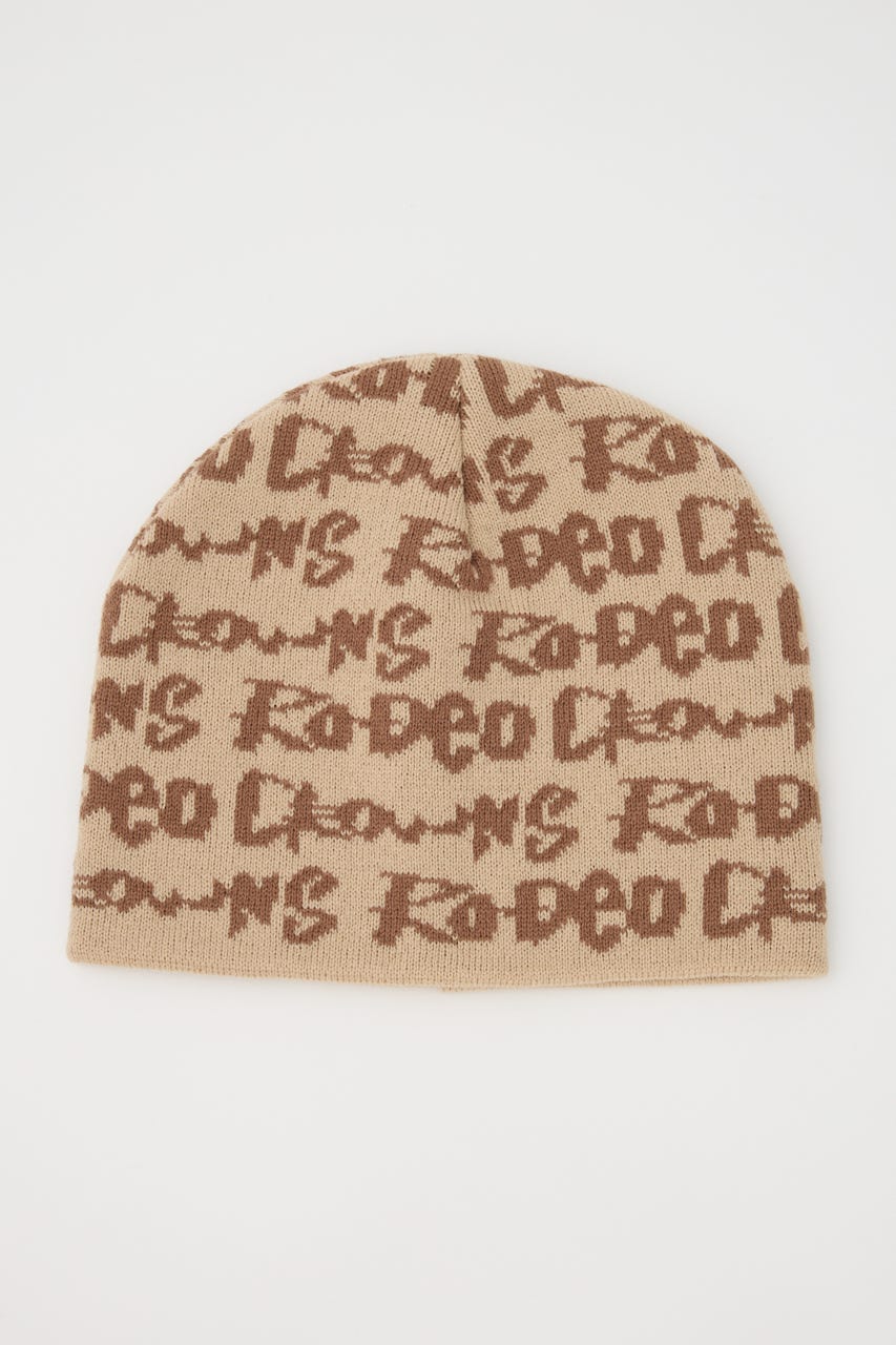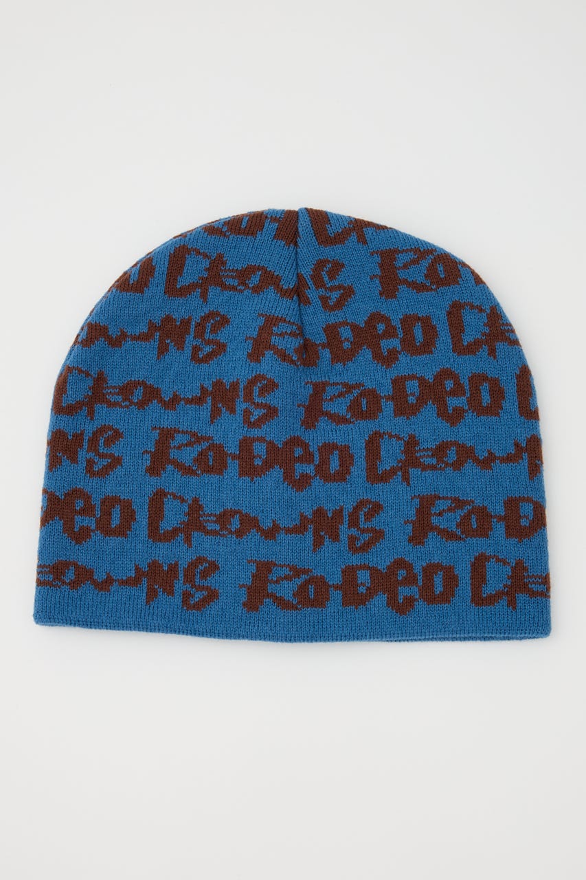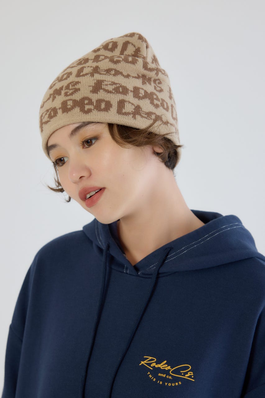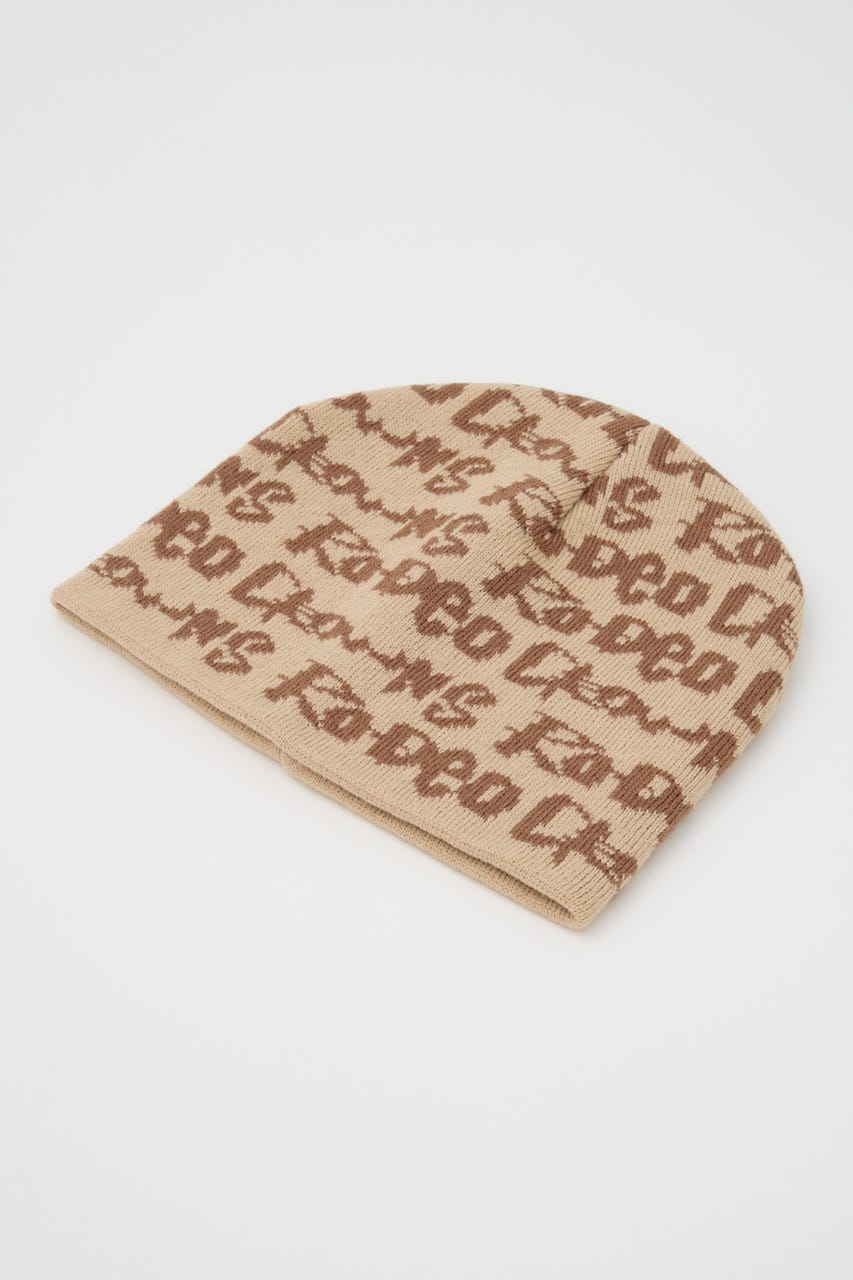 ペイントのような総柄ロゴデザインをジャガードしたニットビーニー。