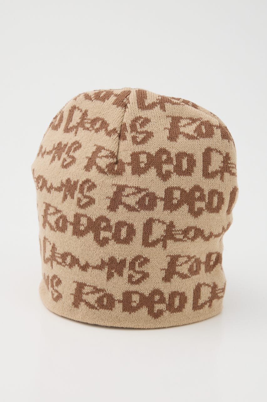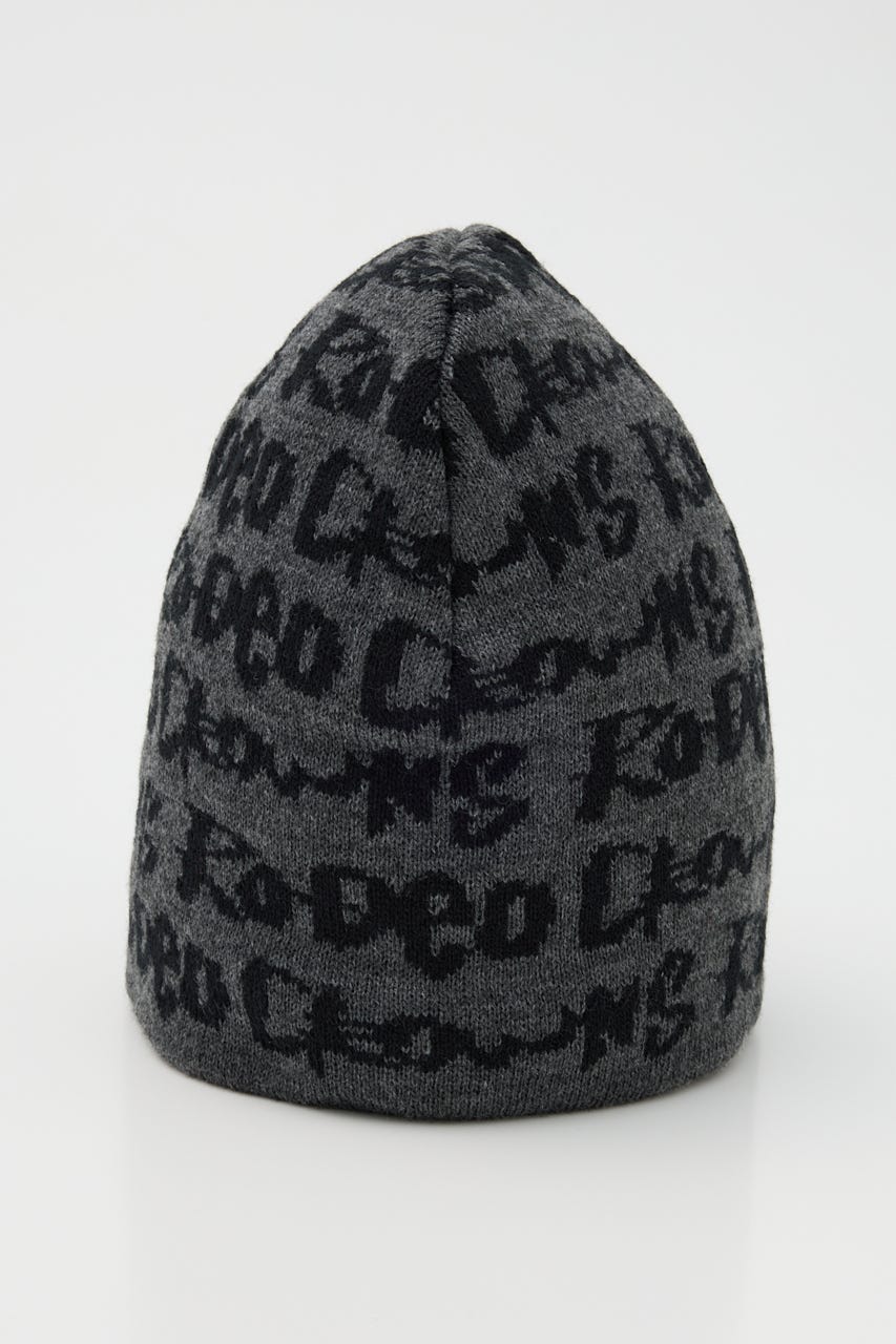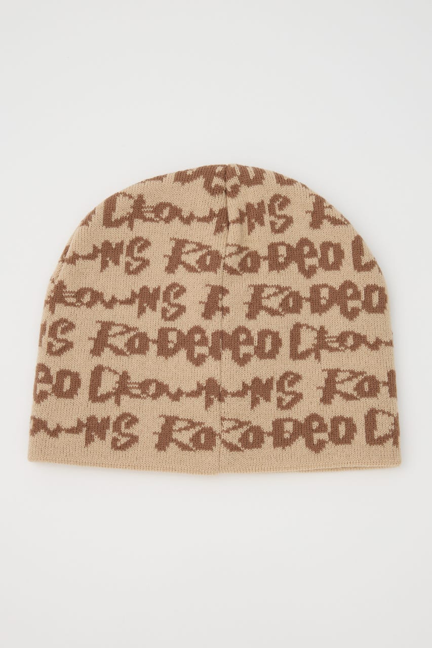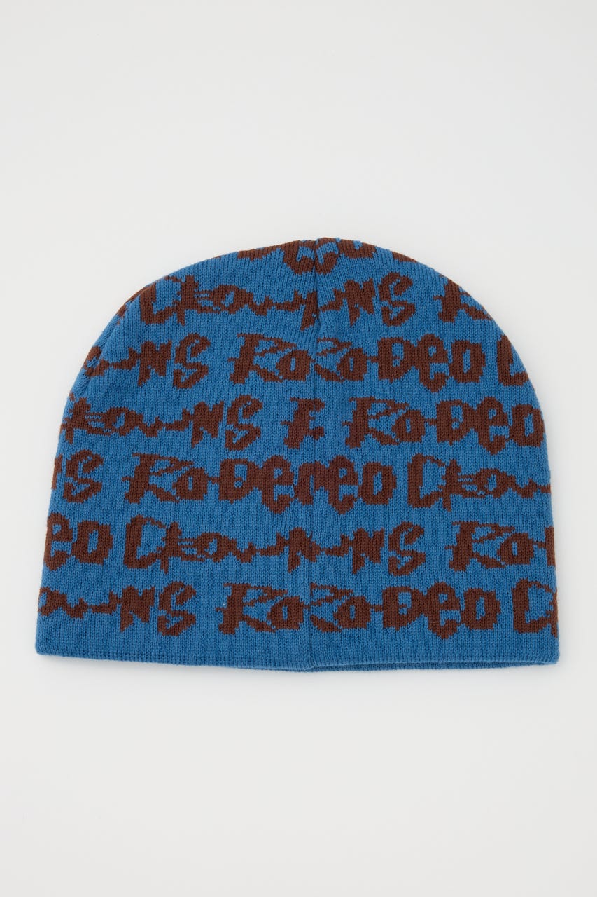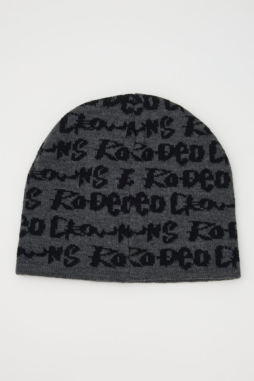 ペイントのような総柄ロゴデザインをジャガードしたニットビーニー。