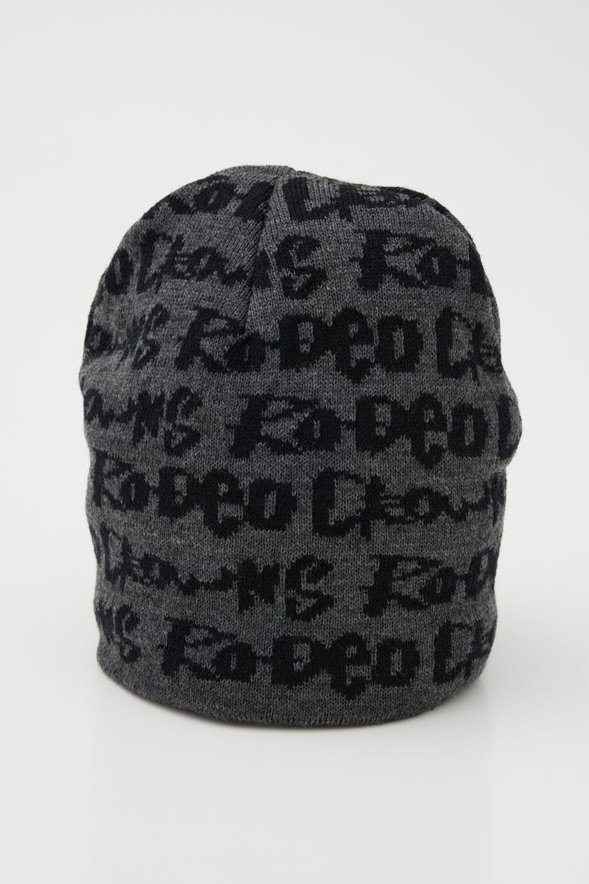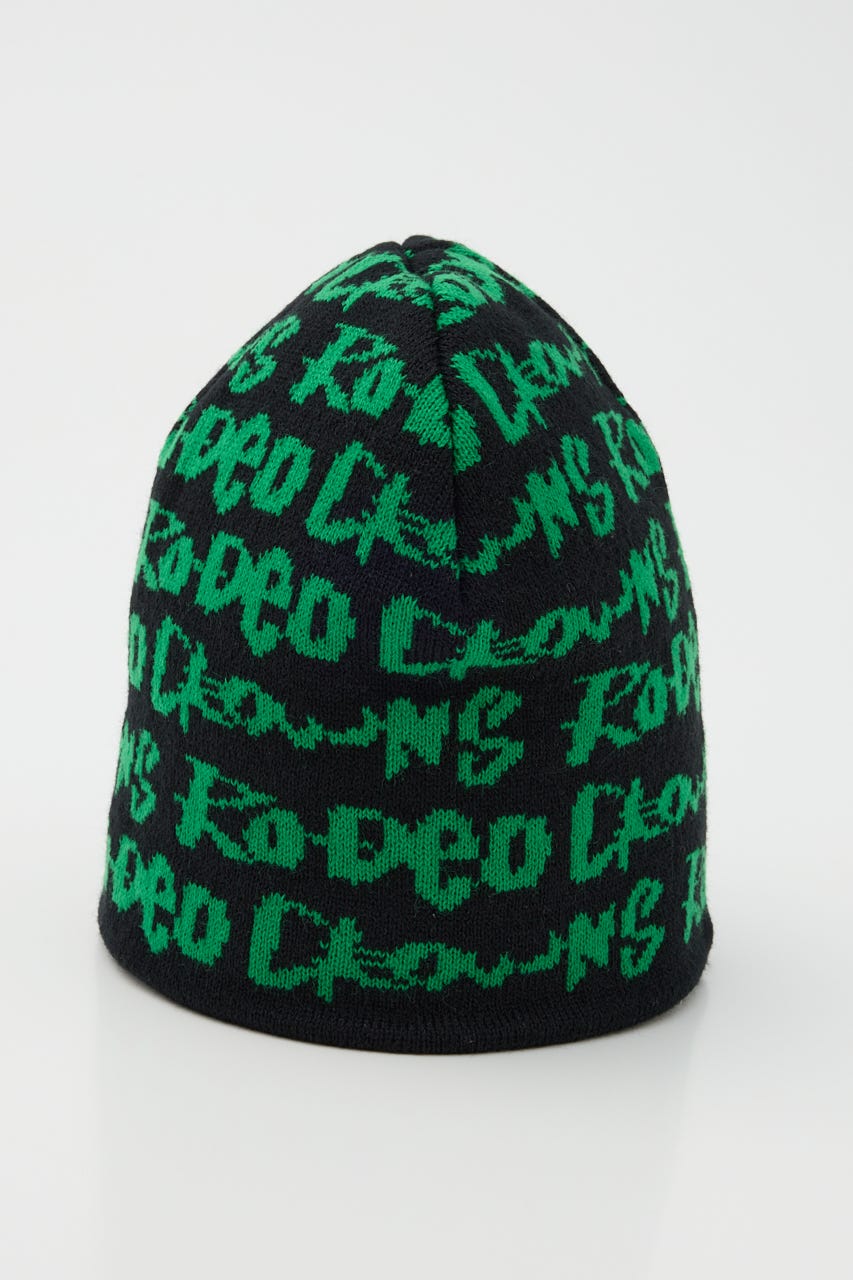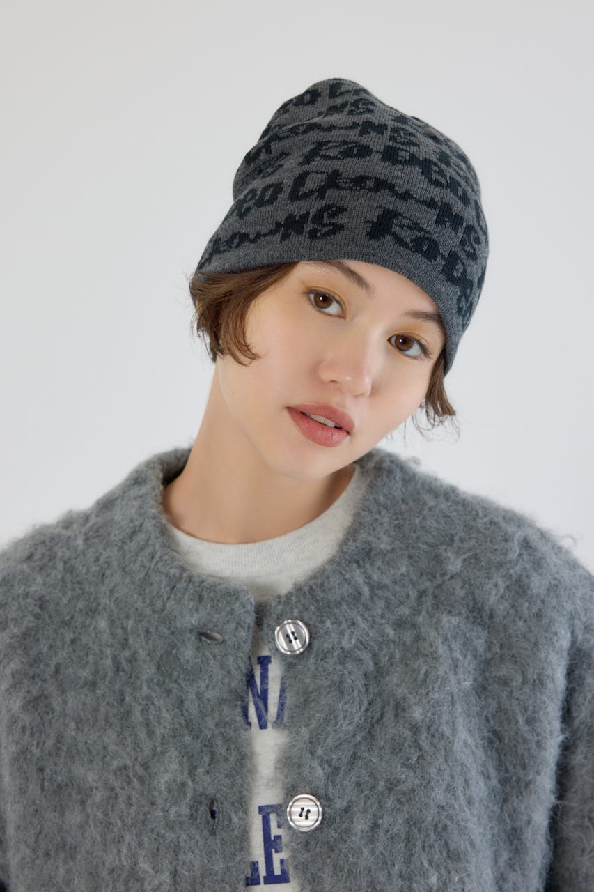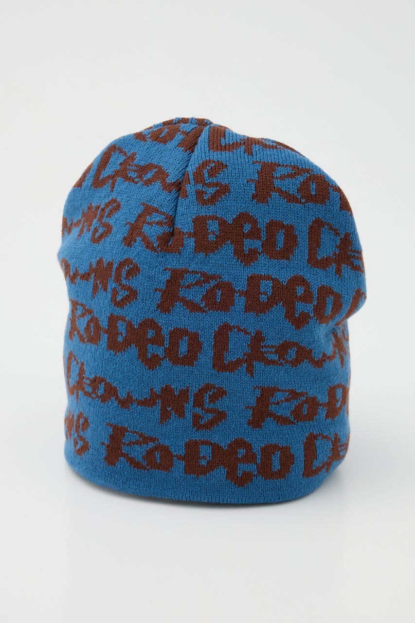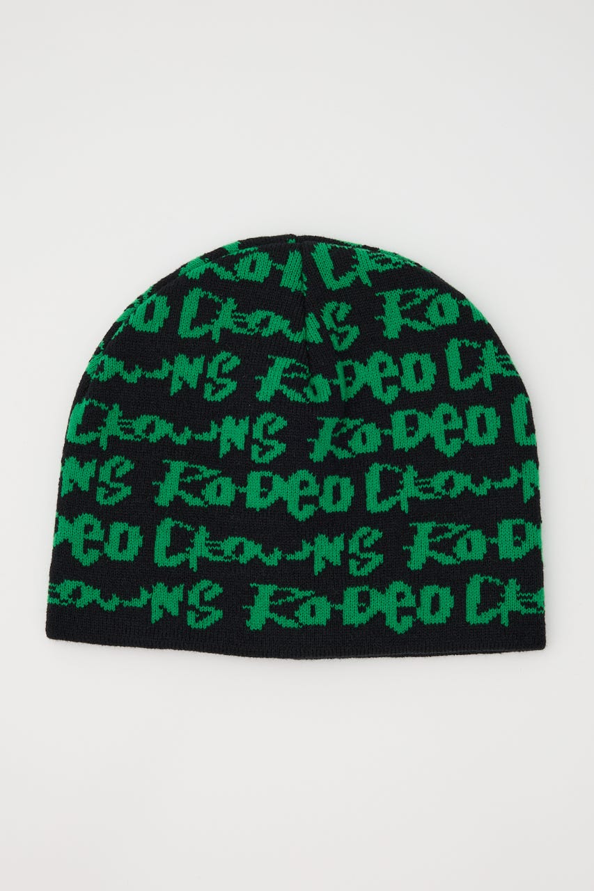 ペイントのような総柄ロゴデザインをジャガードしたニットビーニー。