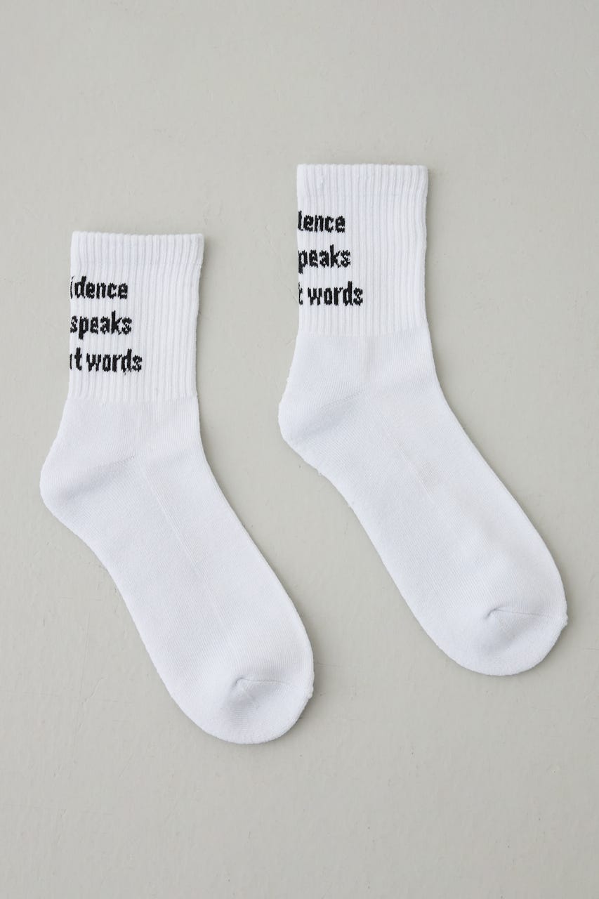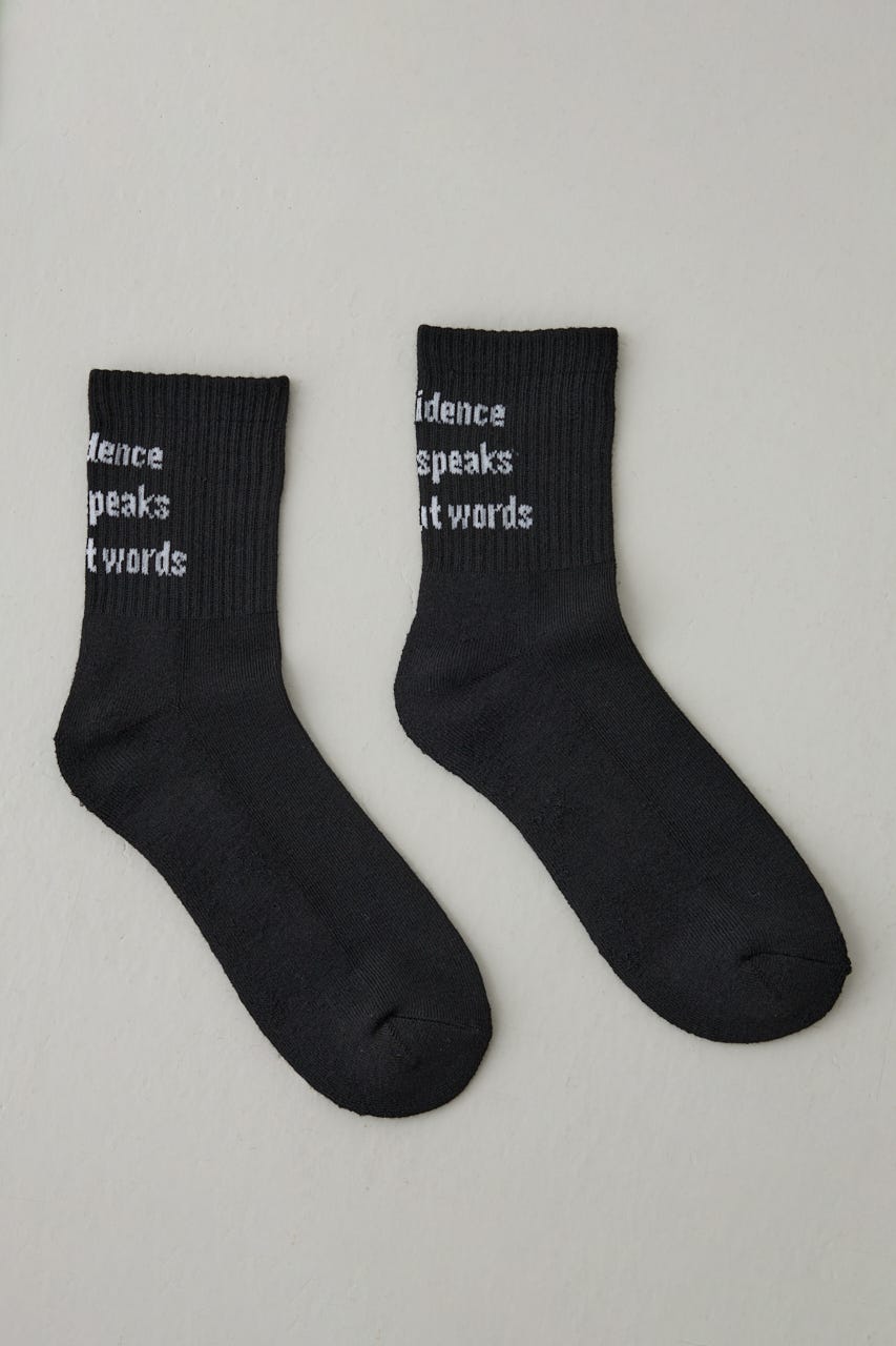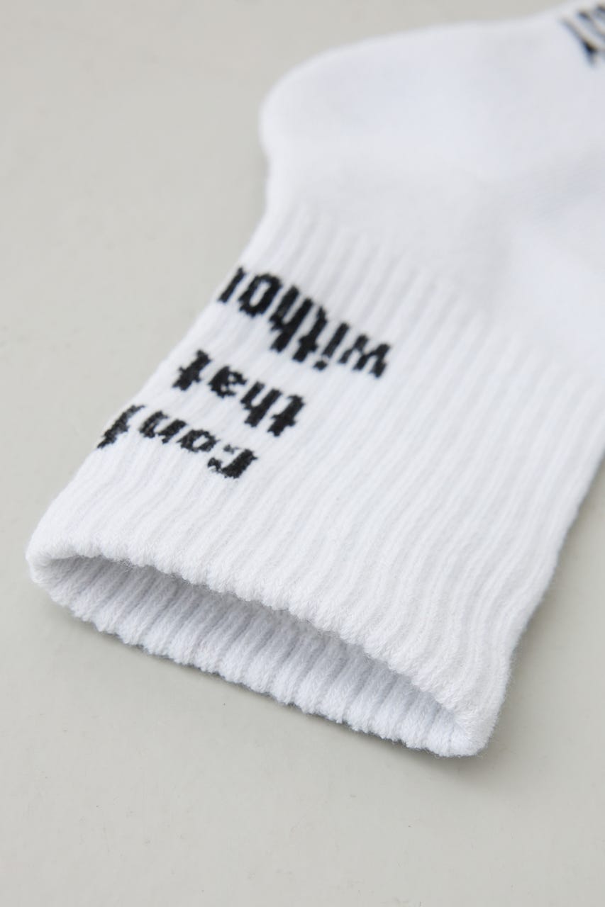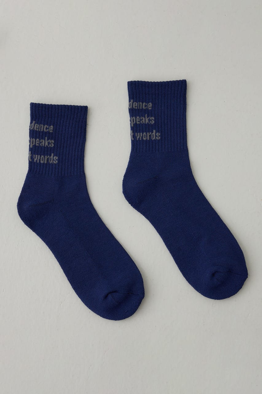 程よい厚みのメッセージロゴミドル丈ソックス。