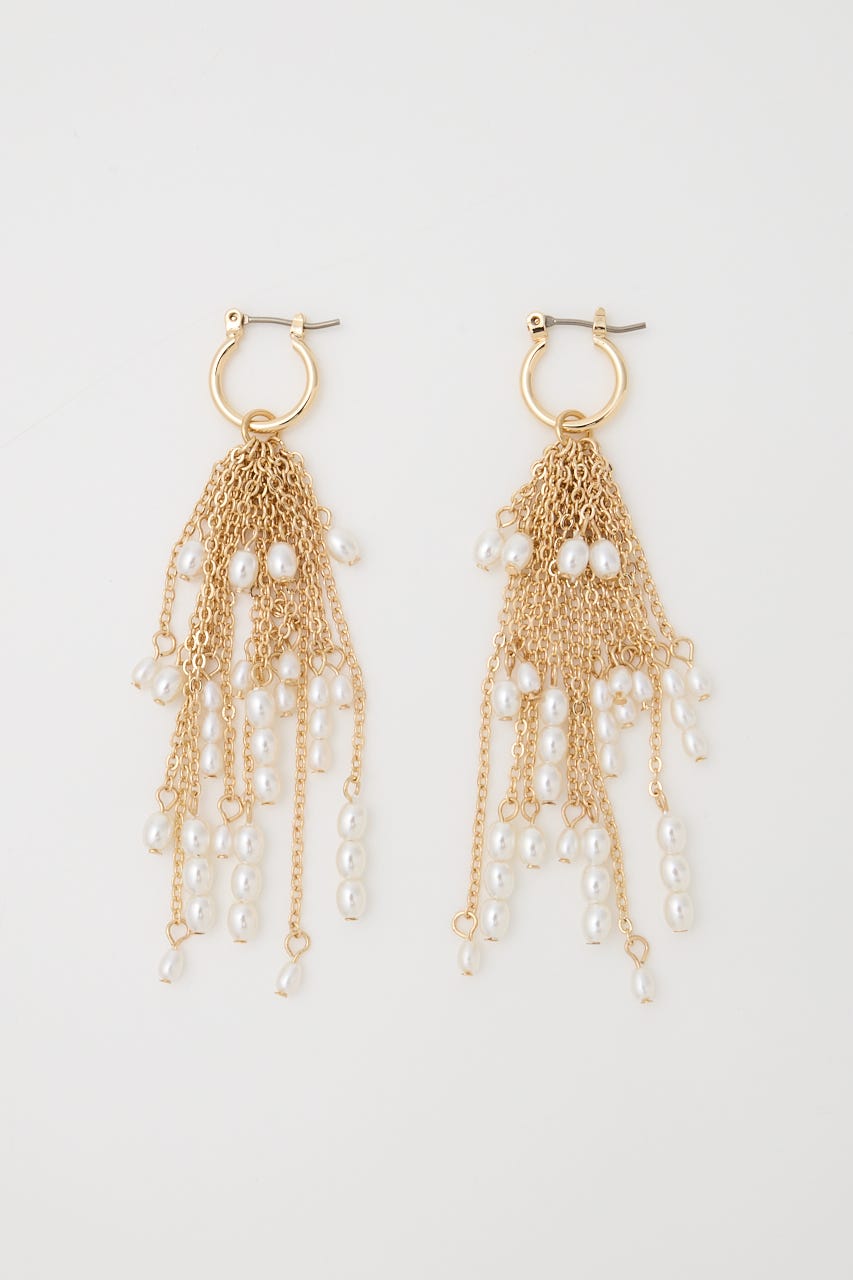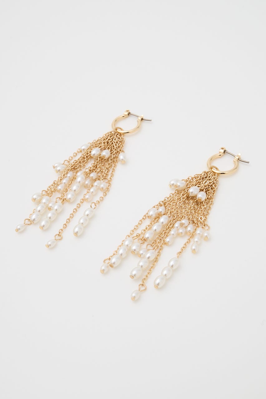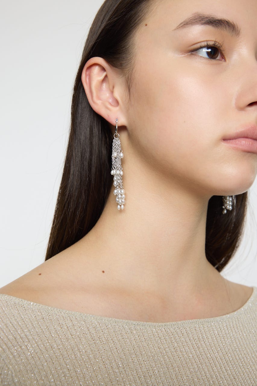 繊細なチェーンのフリンジに小粒のフェイクパールをあしらったピアス。