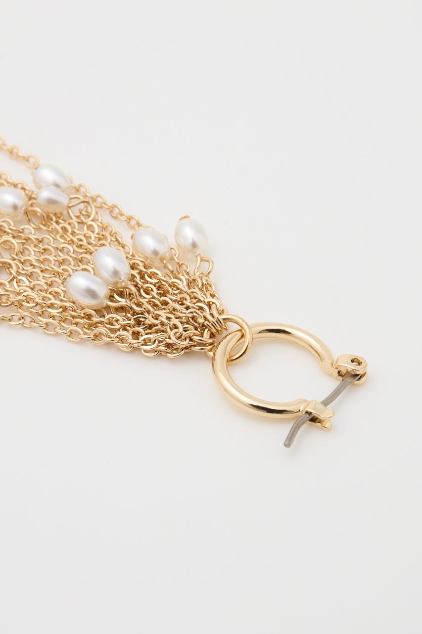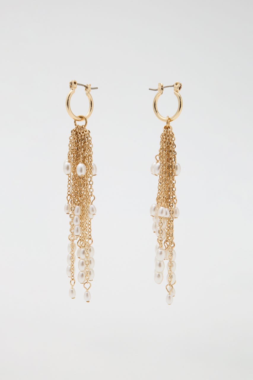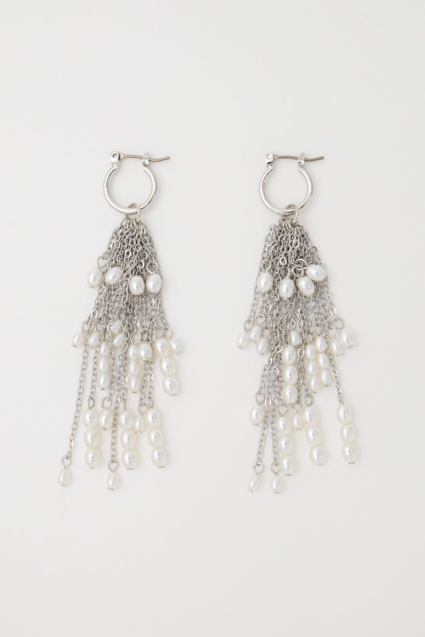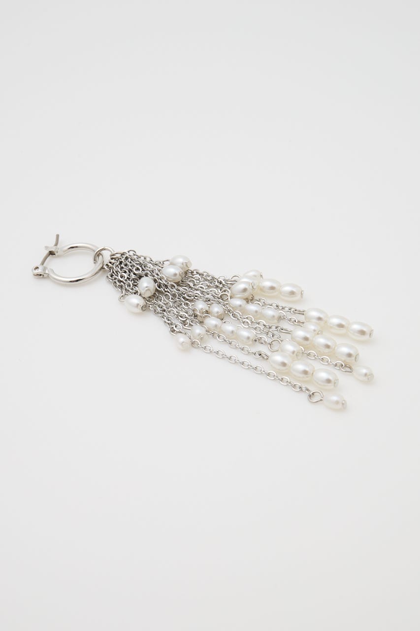 繊細なチェーンのフリンジに小粒のフェイクパールをあしらったピアス。