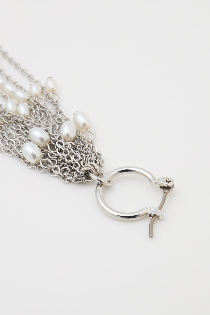 チェーンの先にフェイクパールをあしらい、上品さと華やぎを演出します。