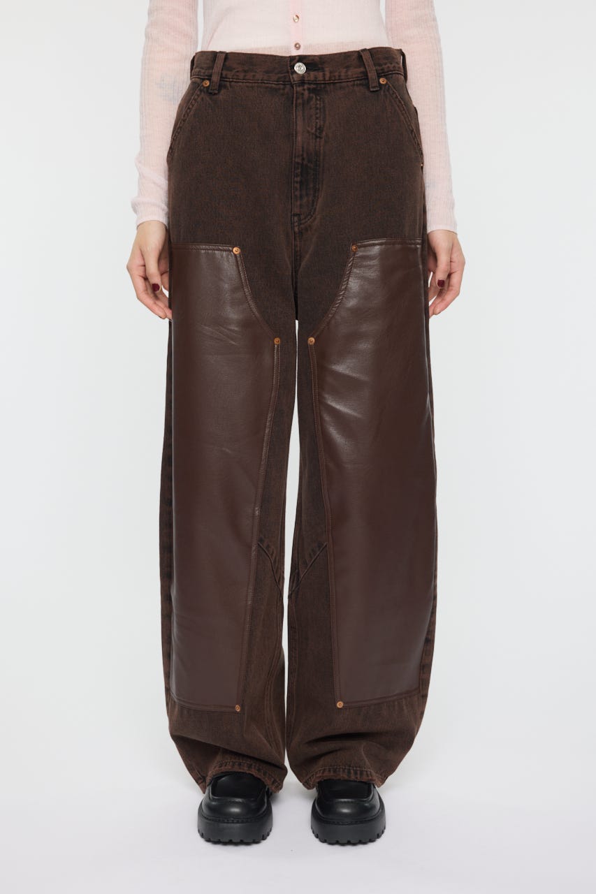 大人っぽいブラウンとブラックに合皮を合わせた存在感のあるボトム。