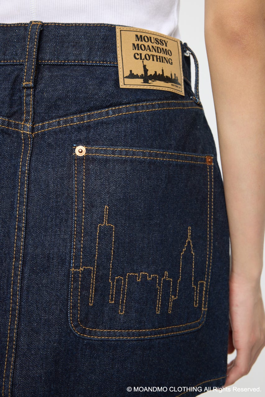 バックポケットの〈MOANDMO©〉を代表するスカイラインの刺繍がコラボならでは拘りのポイントでさりげないアクセントになってくれています。