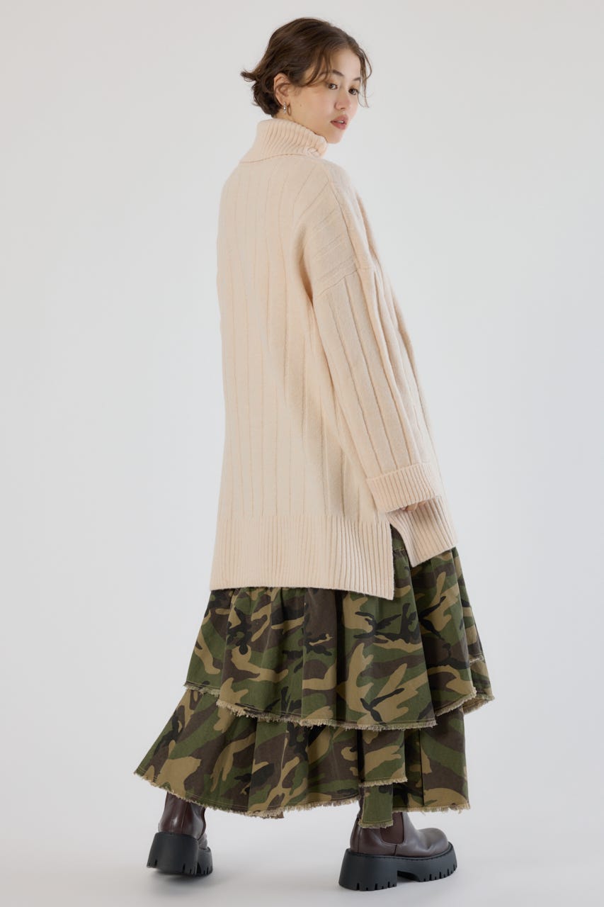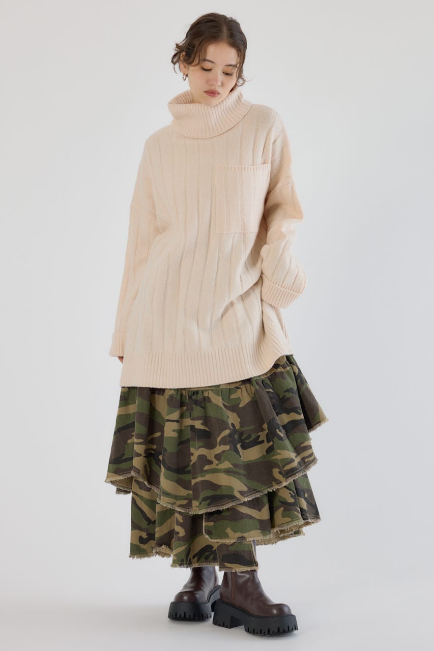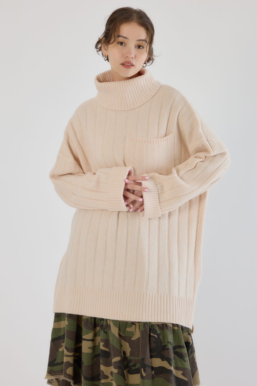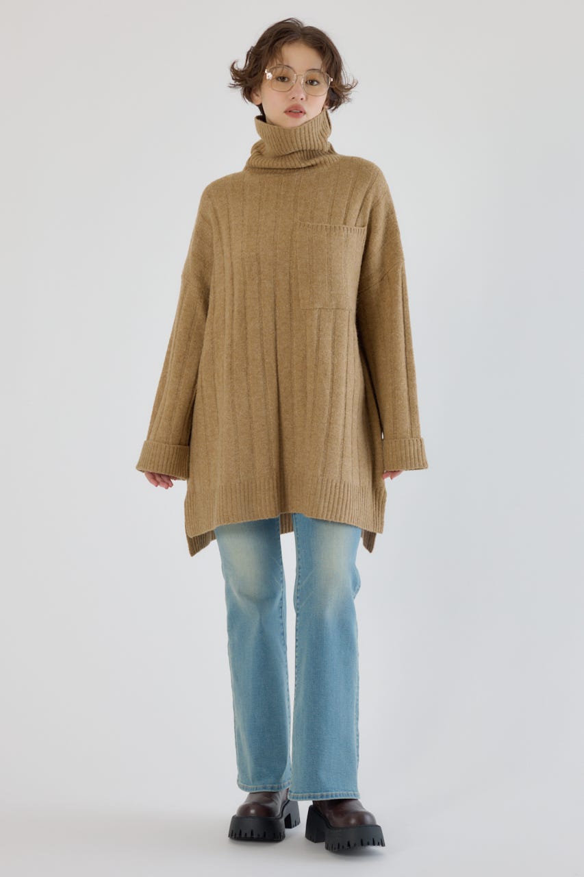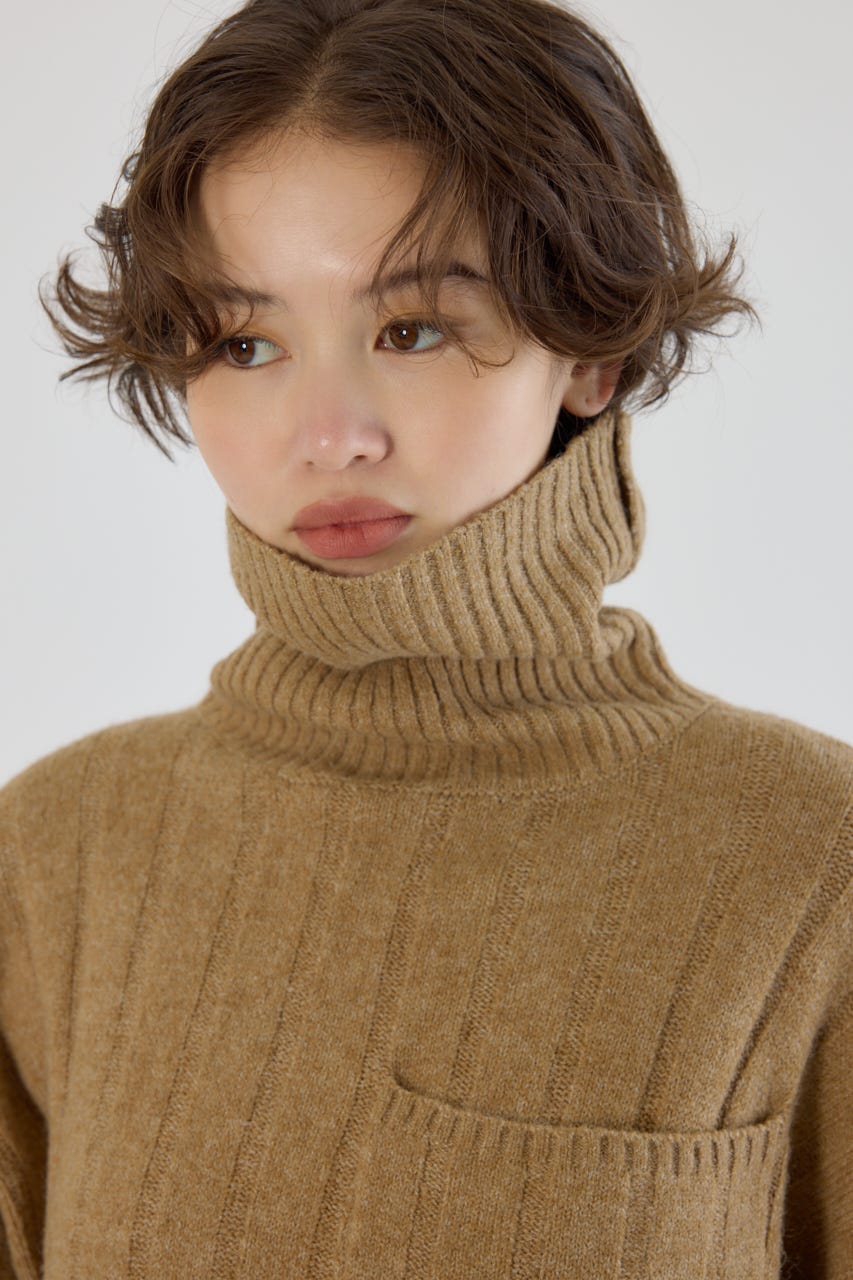 長めのタートルネックは顔周りをすっきりと見せ、小顔効果も◎